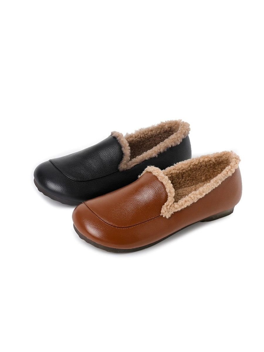 Women Winter Genuine Leather Fleece-lined Low Heel Shoes