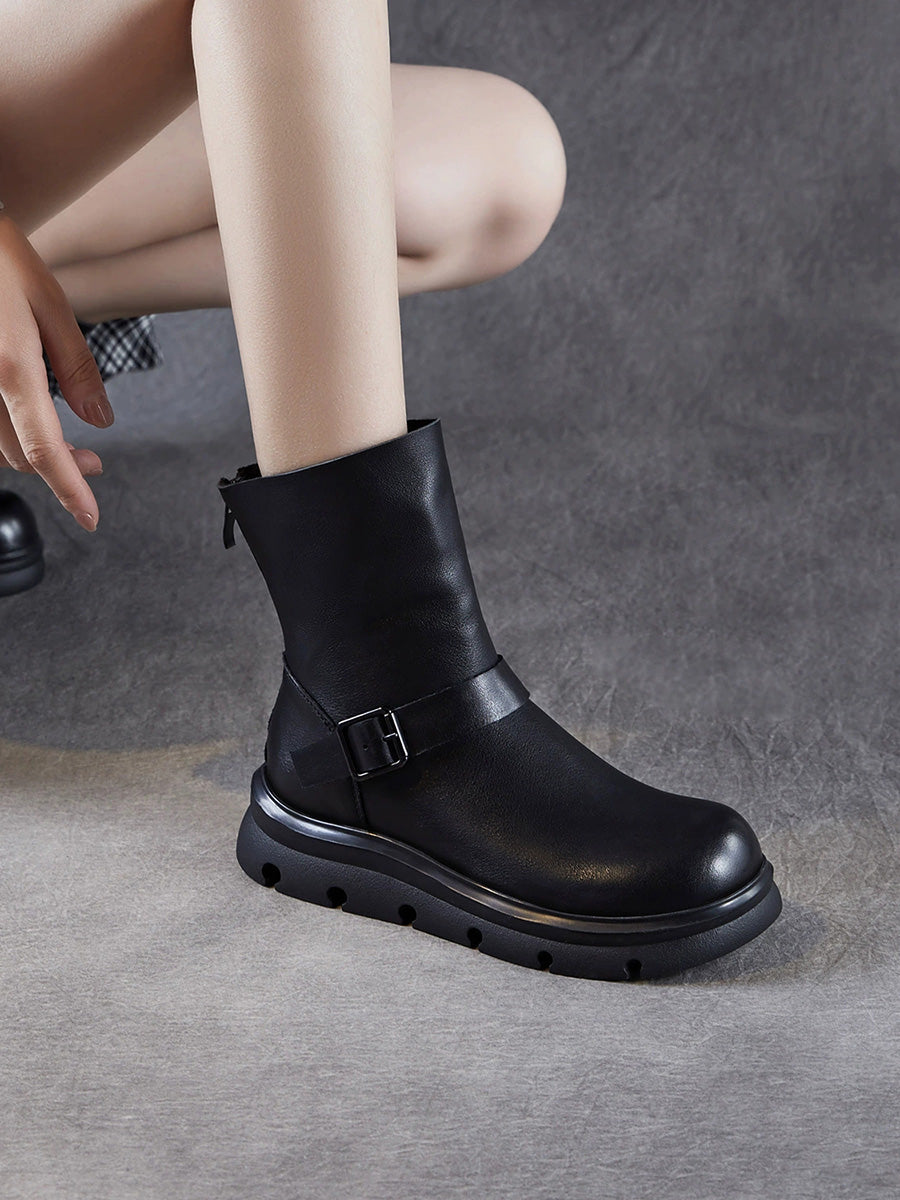 Women Winter Genuine Leather Mid-calf Martin Boots