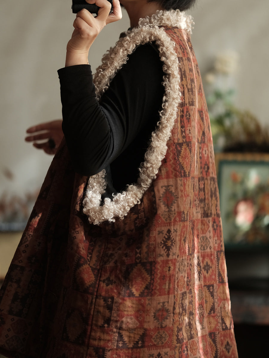 Women Winter Vintage Patchwork V-Neck Fleece Vest