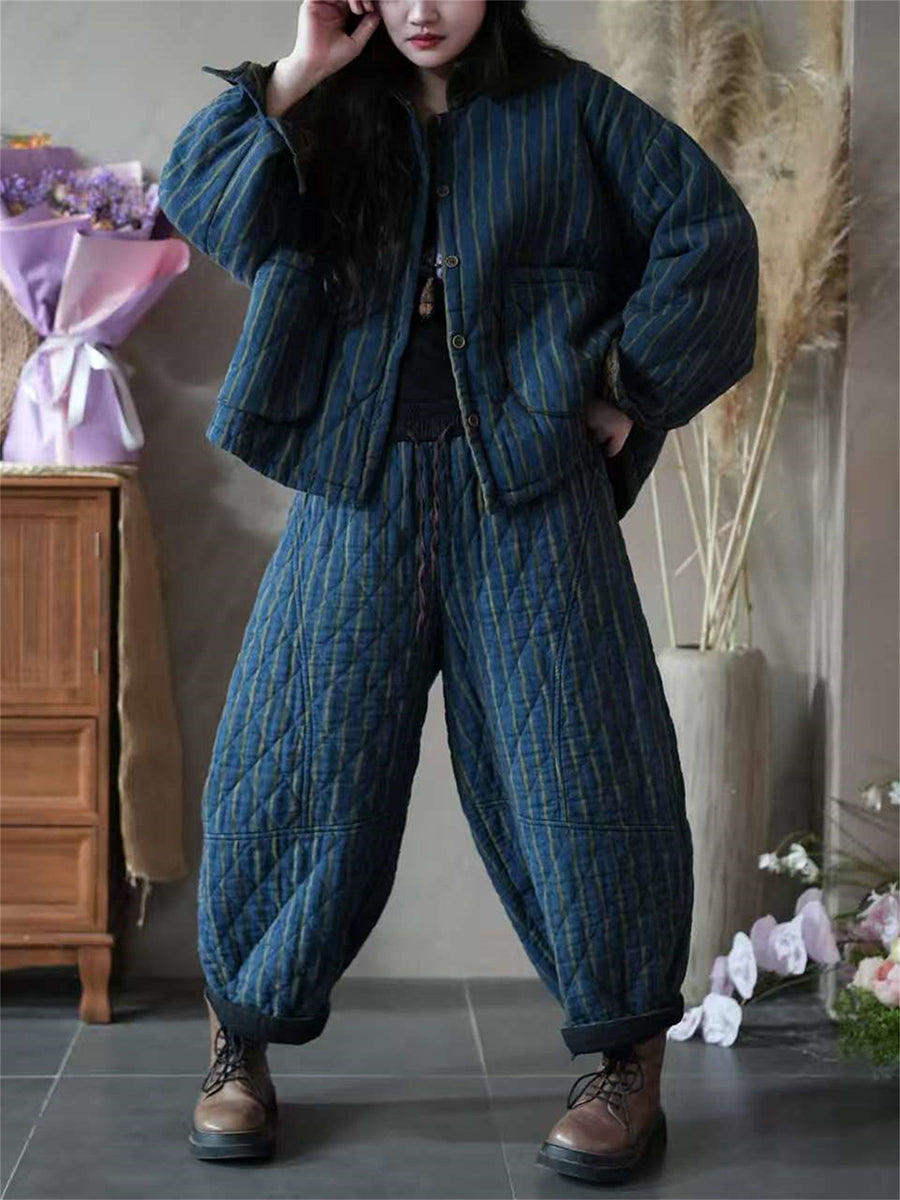 Women Winter Vintage Stripe Padded Suits