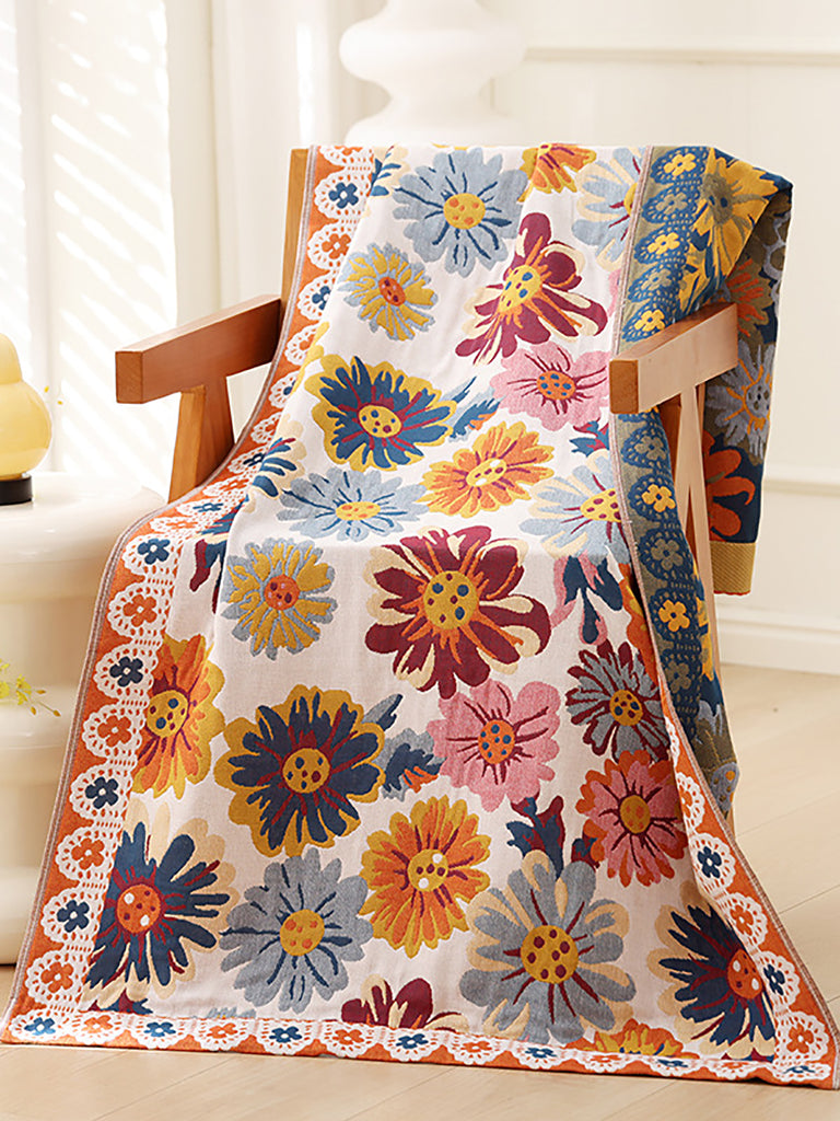 Toalla de baño para adultos 100 % algodón con estampado floral de jacquard