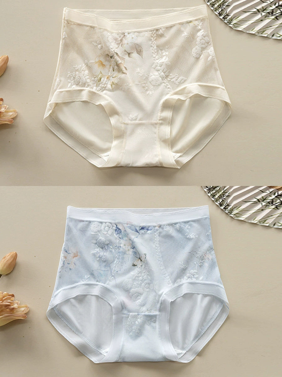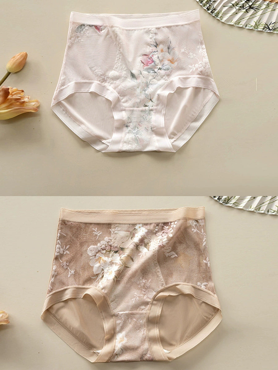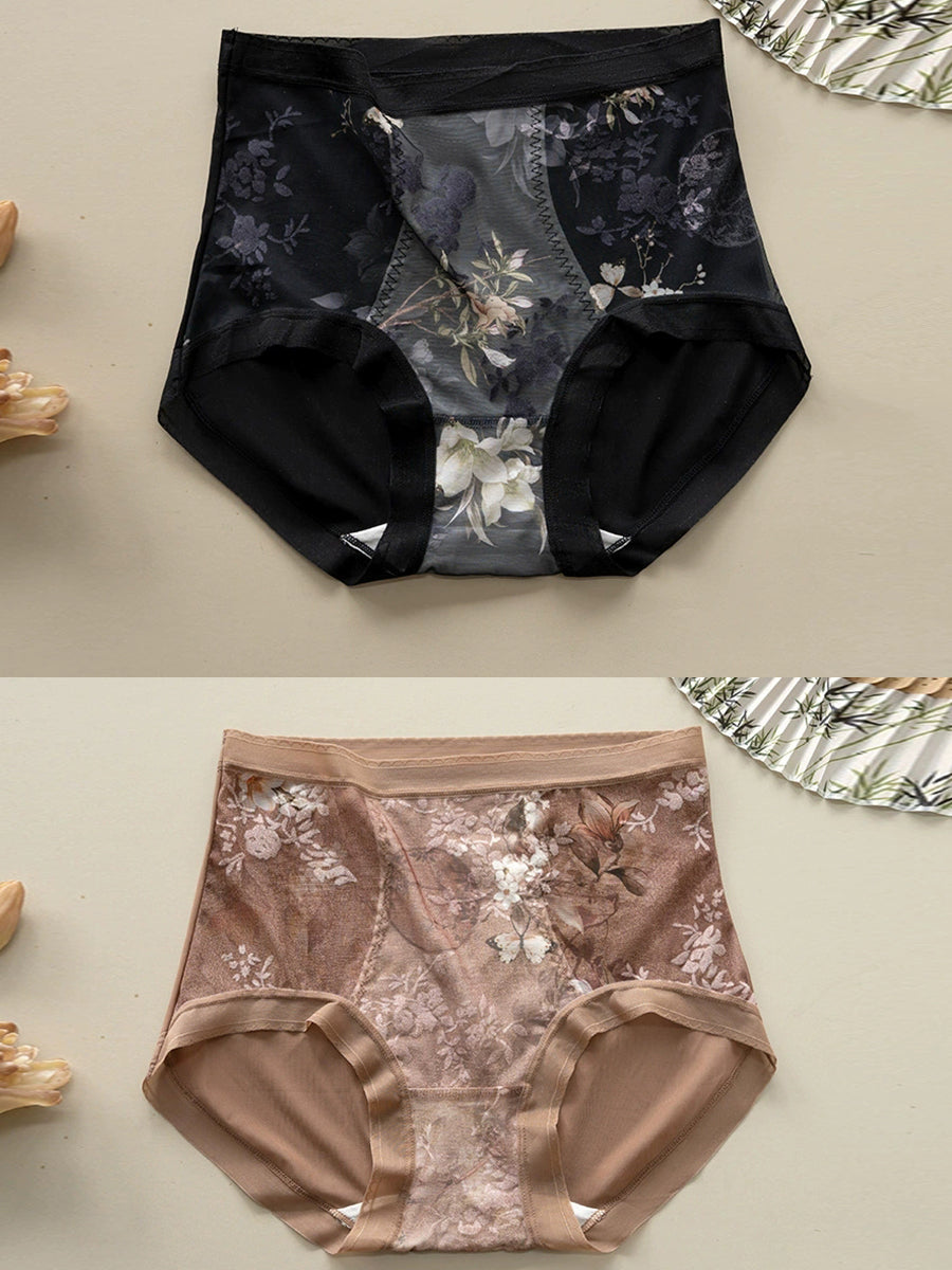2 piezas de ropa interior de cintura alta con flores artísticas para mujer