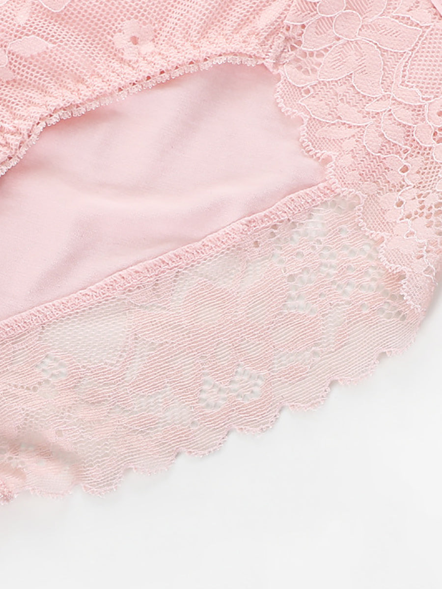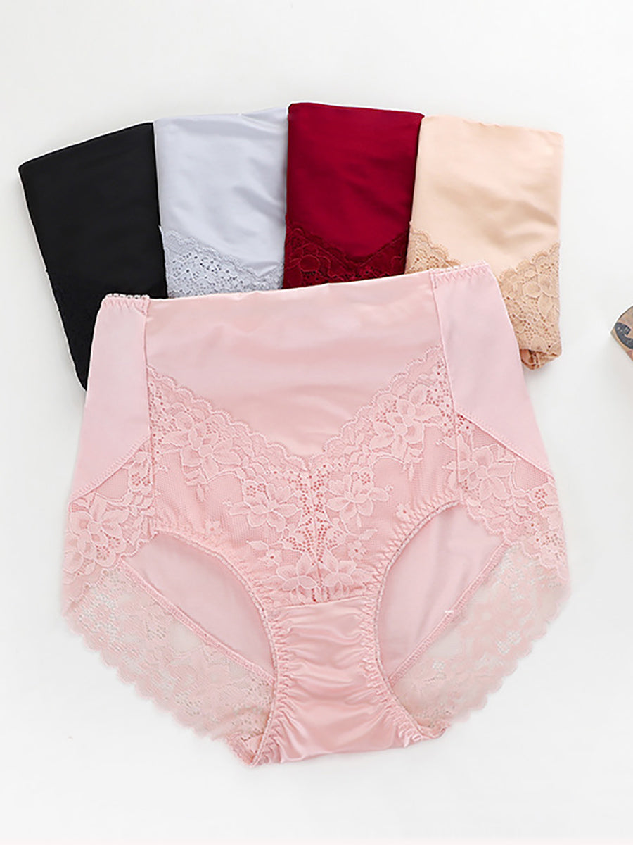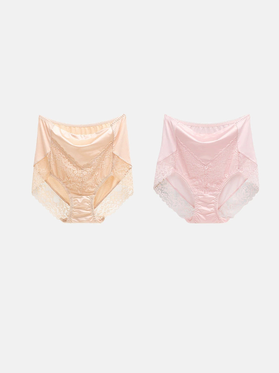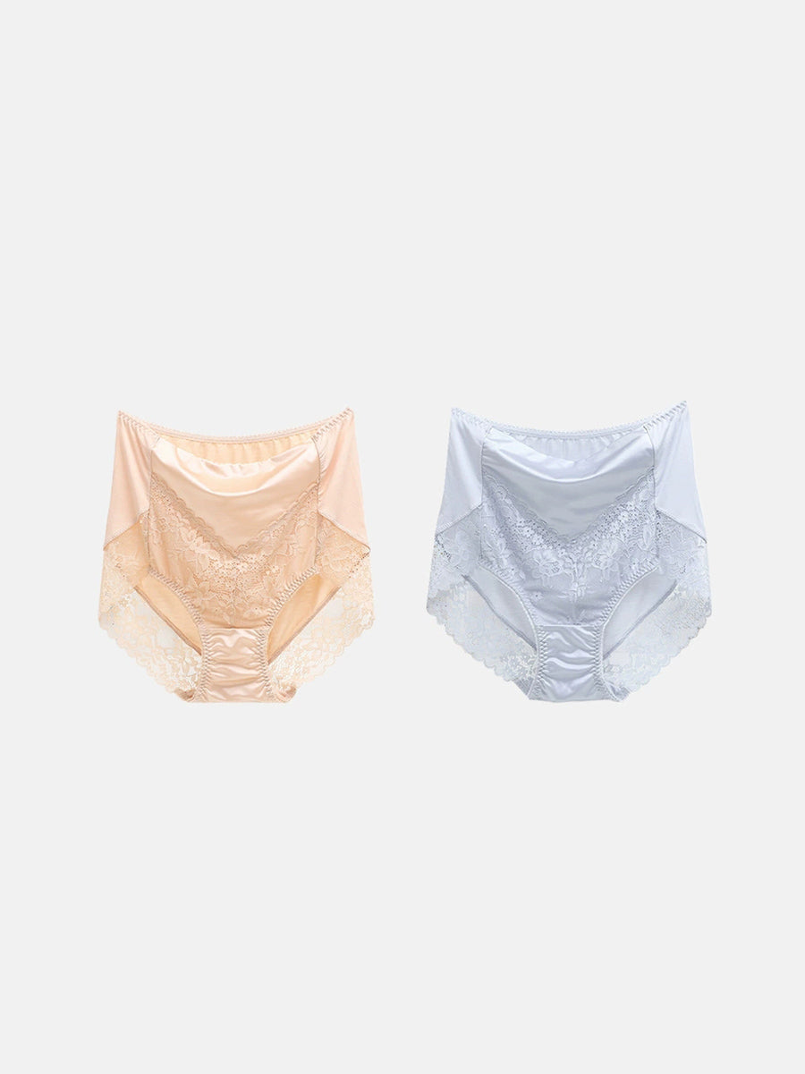 2 piezas de ropa interior de cintura alta con encaje artístico para mujer