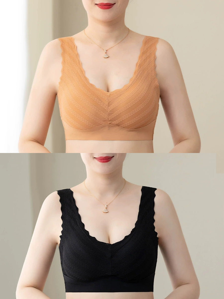 Sujetador de una pieza sin aros Artsy Pure Color para mujer, 2 piezas