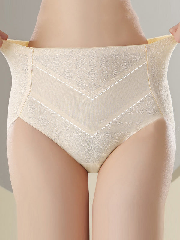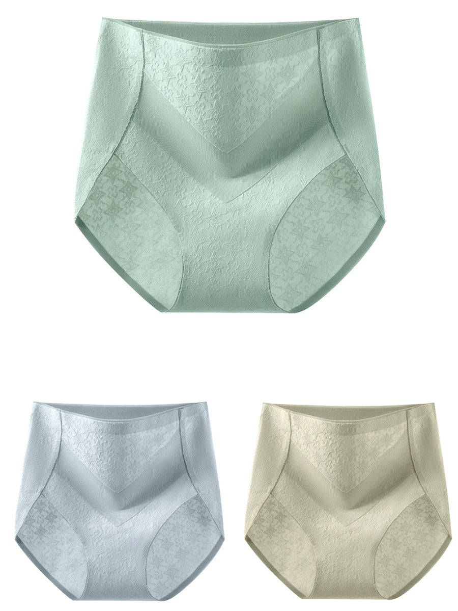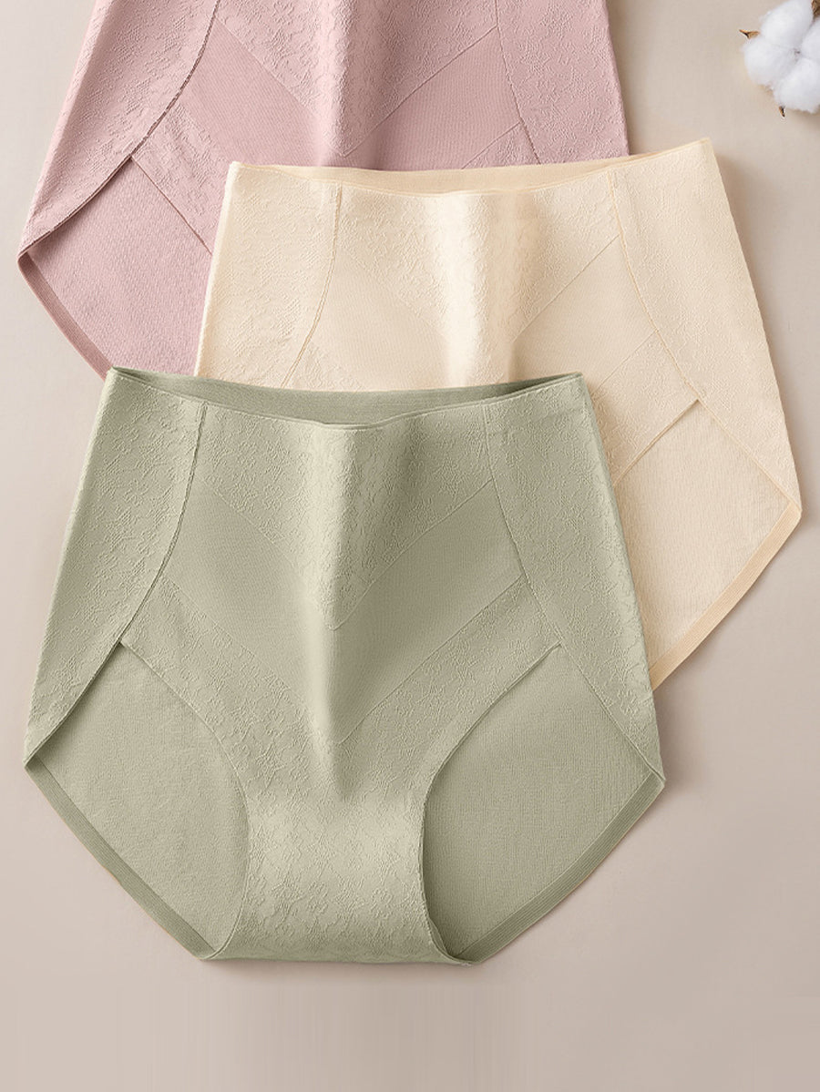 3 piezas de ropa interior de cintura alta de jacquard artístico para mujer