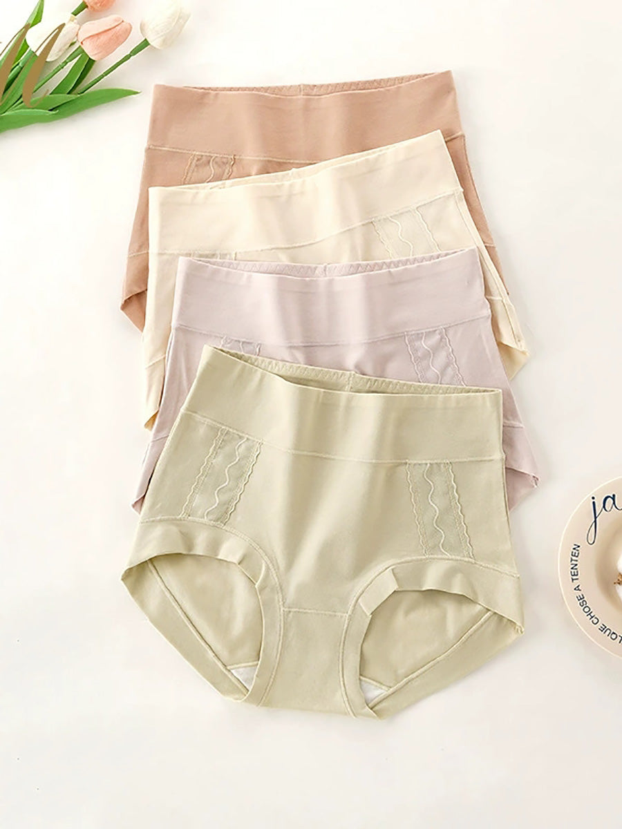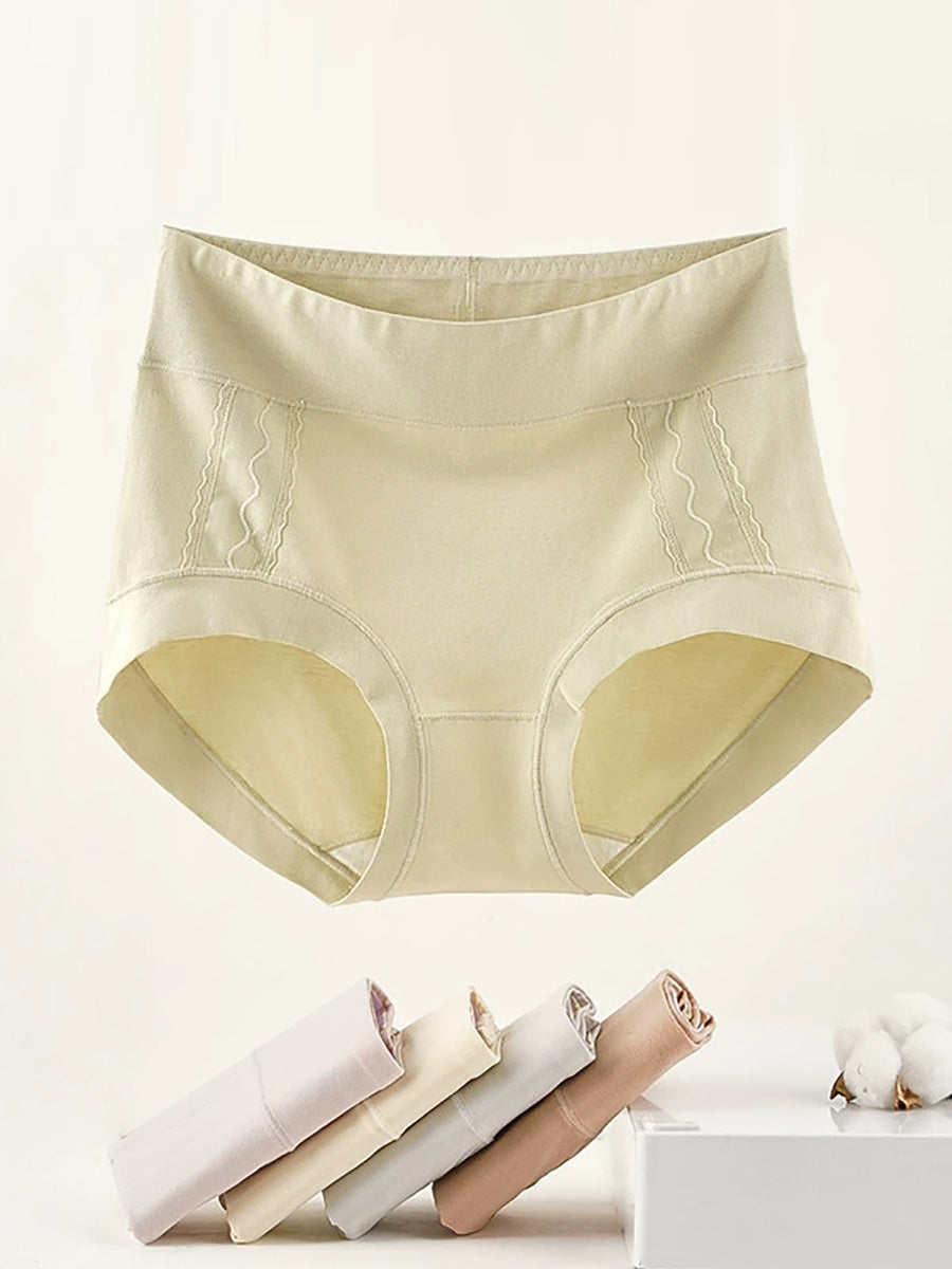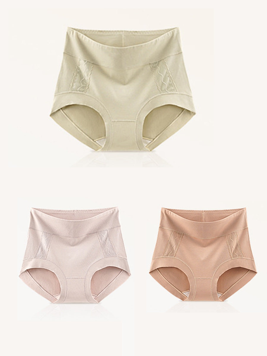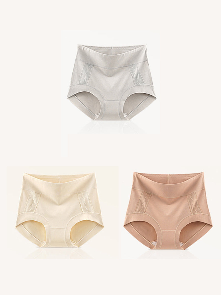 3 piezas de ropa interior de cintura alta de color puro y artístico para mujer