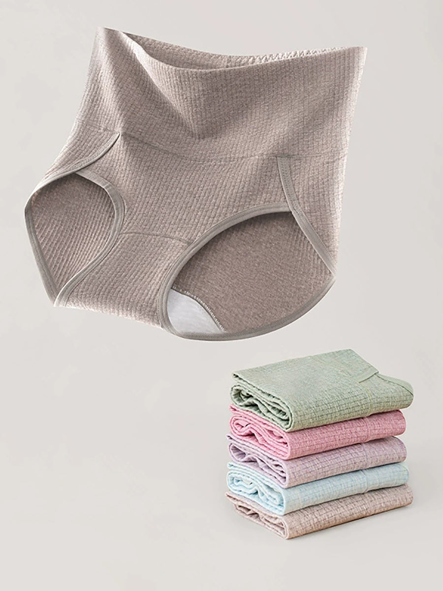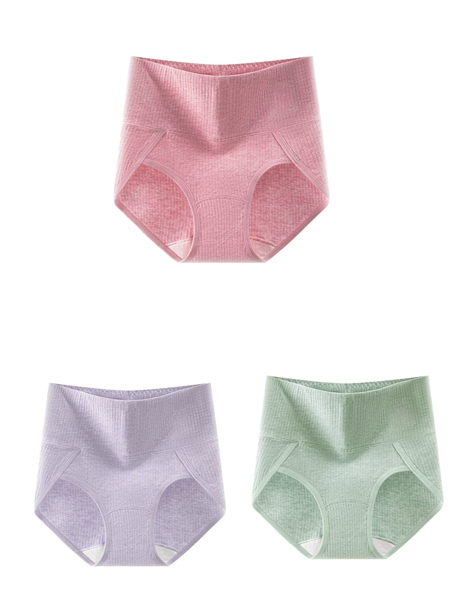 3 piezas de ropa interior de cintura alta de color puro y artístico para mujer