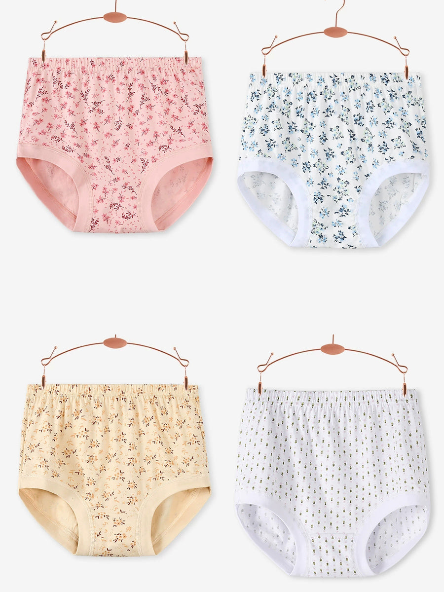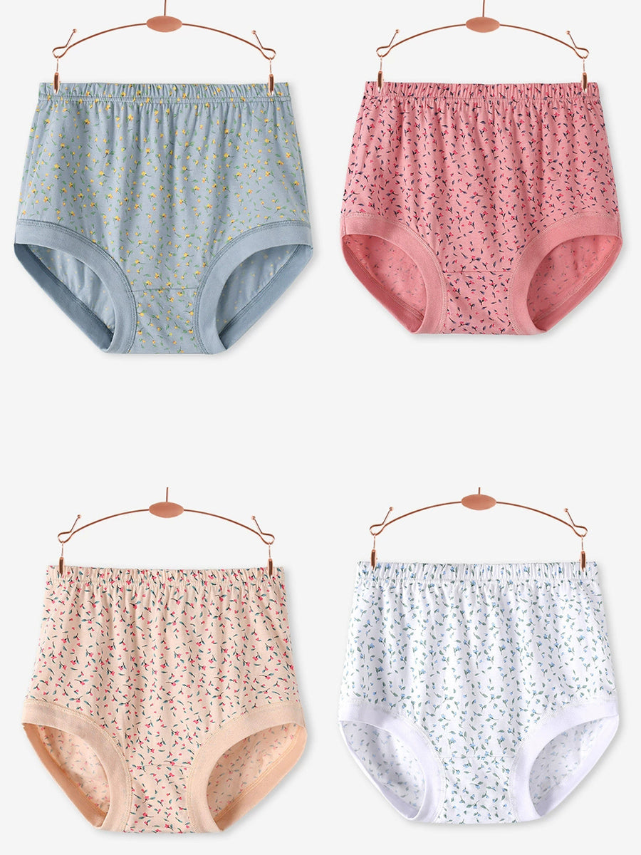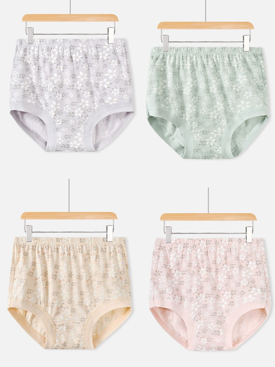 4 piezas de ropa interior de cintura alta con estampado floral artístico para mujer