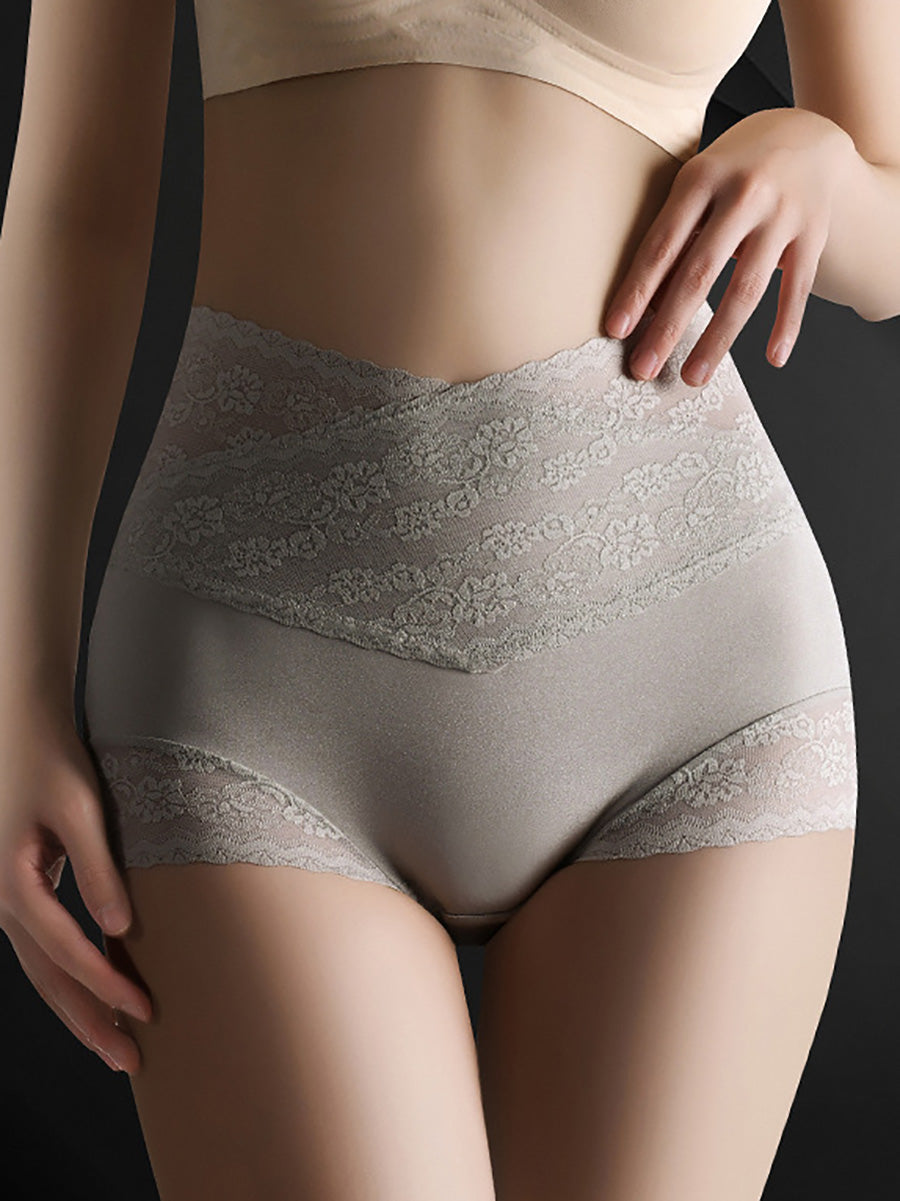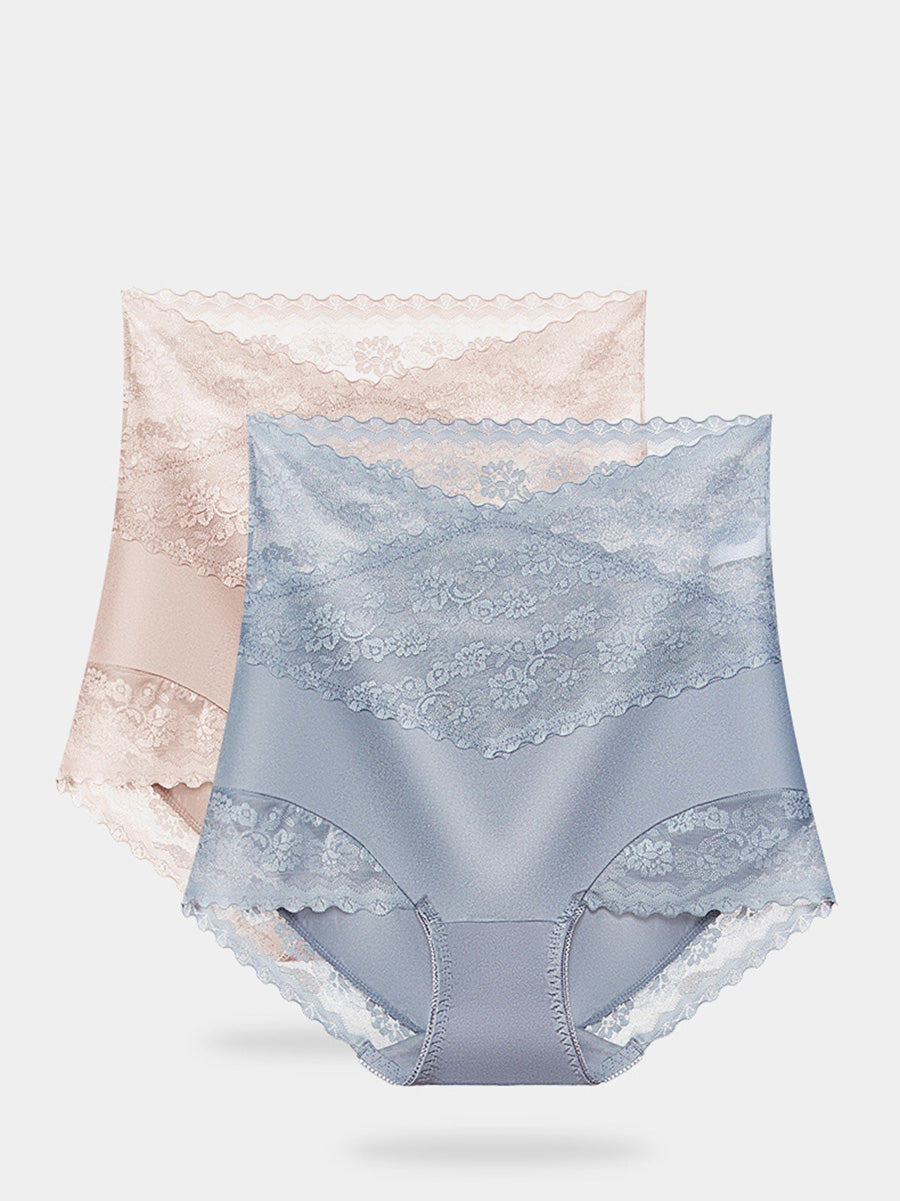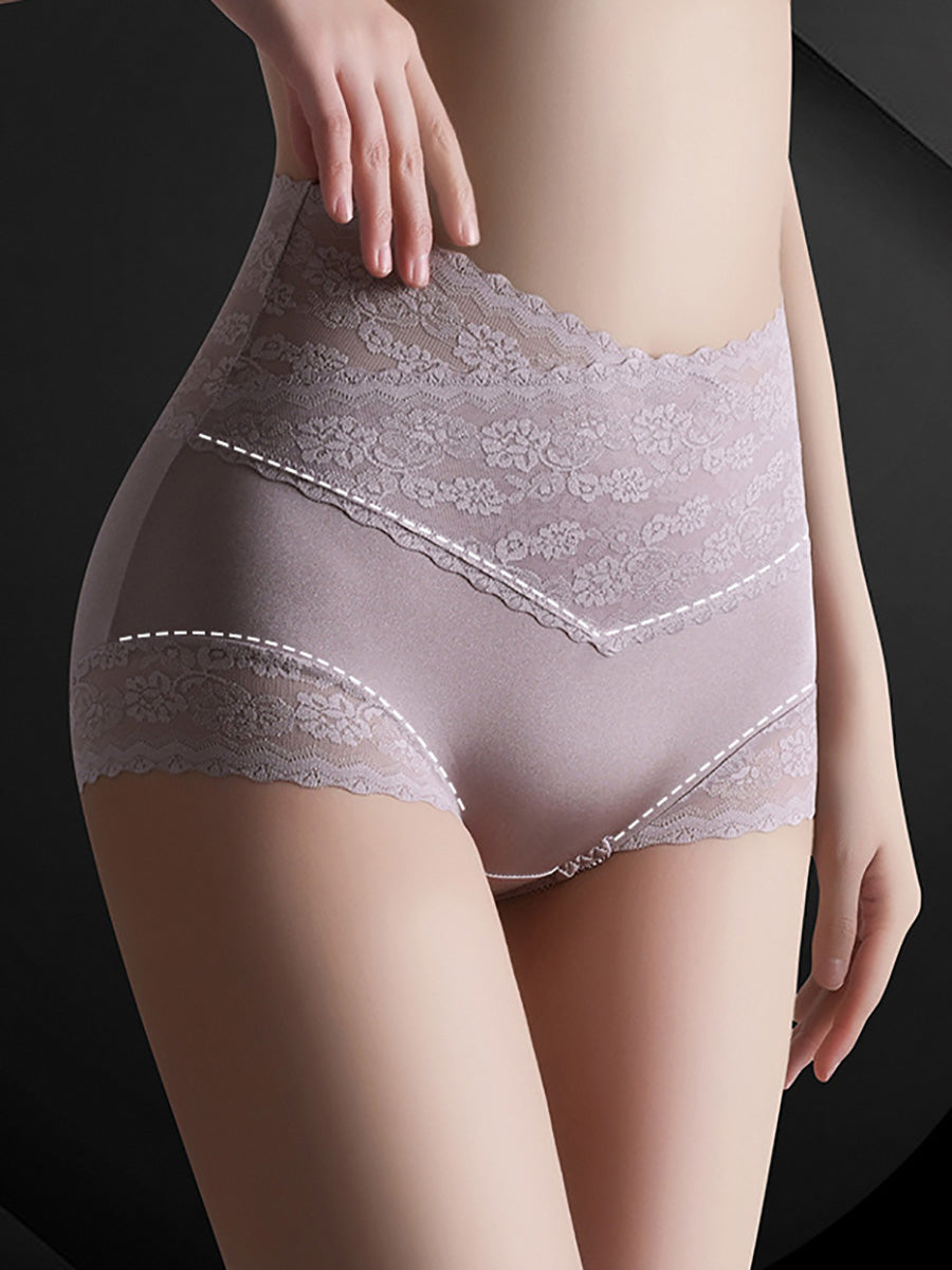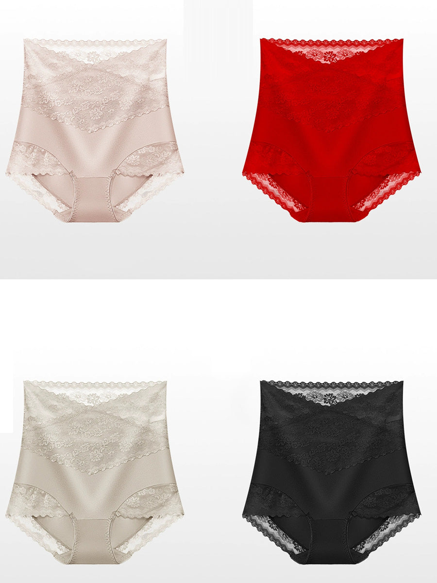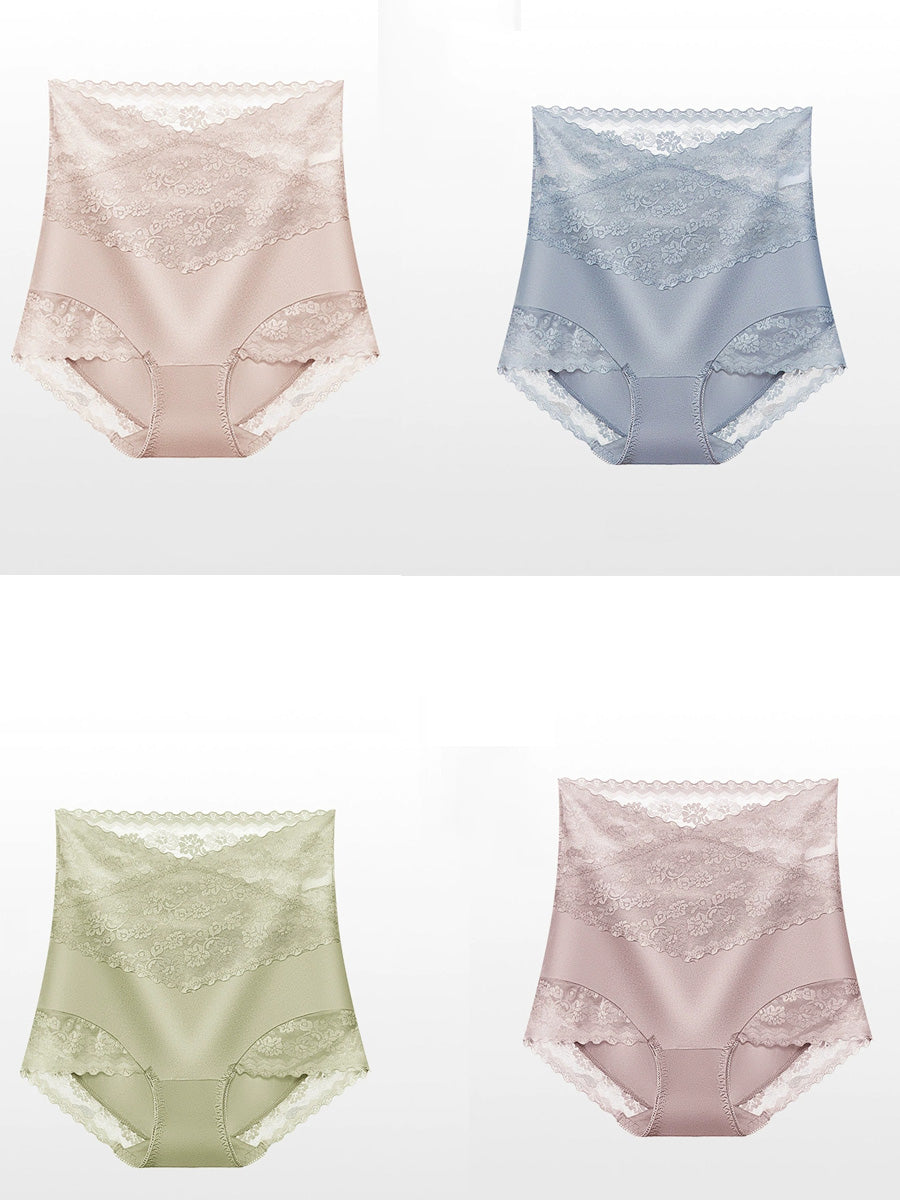 4 piezas de ropa interior de cintura alta con encaje artístico para mujer