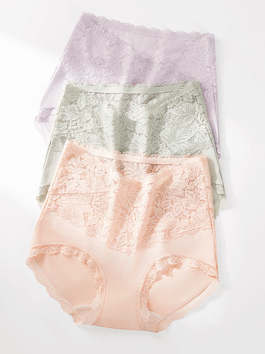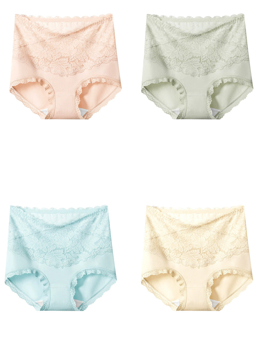 4 piezas de ropa interior de cintura alta con encaje artístico para mujer