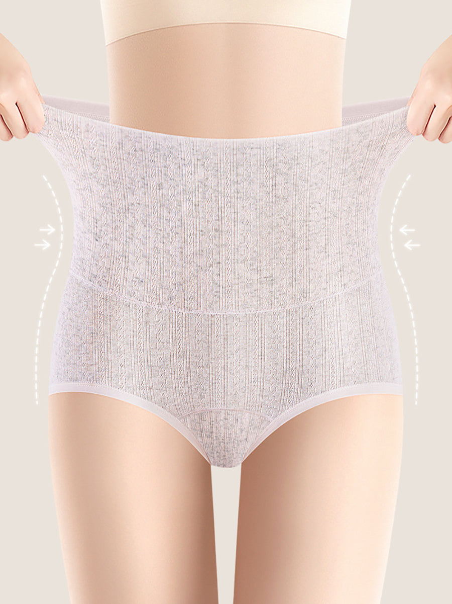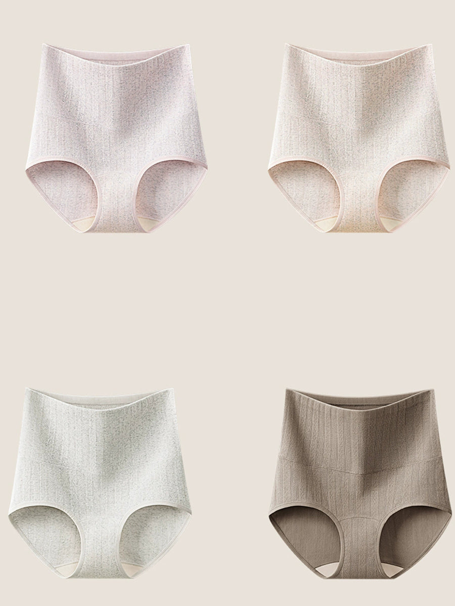 4 piezas de ropa interior de cintura alta de color puro y artístico para mujer