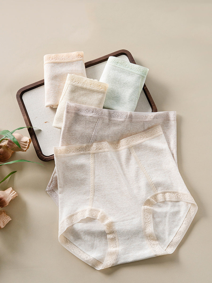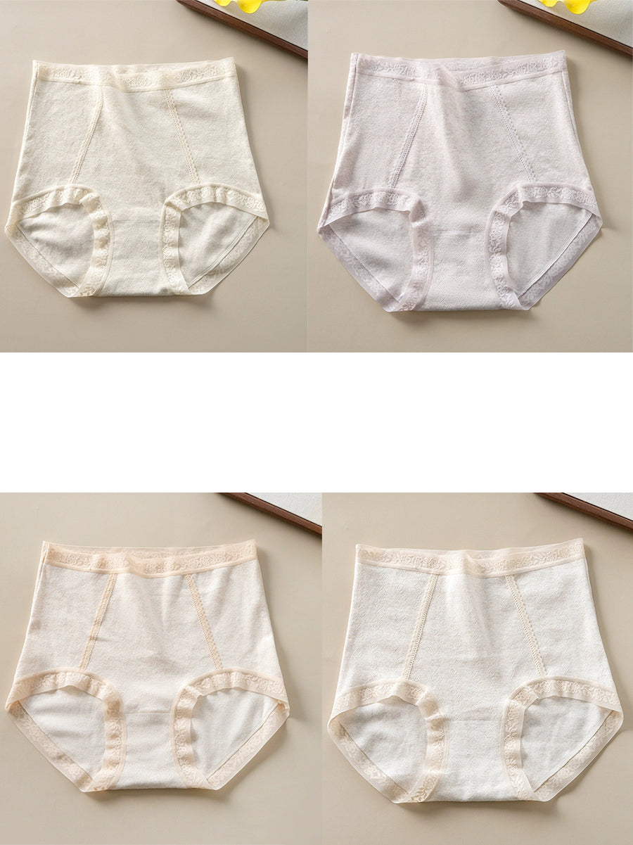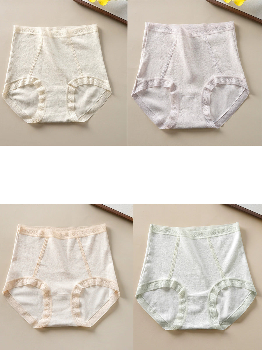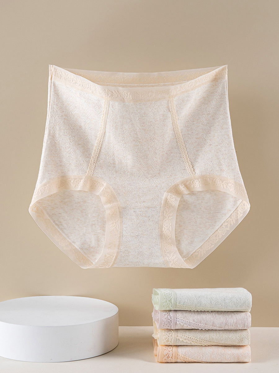 4 piezas de ropa interior de cintura alta de color puro y artístico para mujer