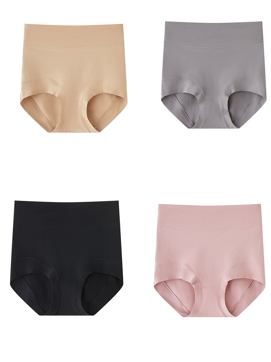 4 piezas de ropa interior de cintura alta de color puro y artístico para mujer