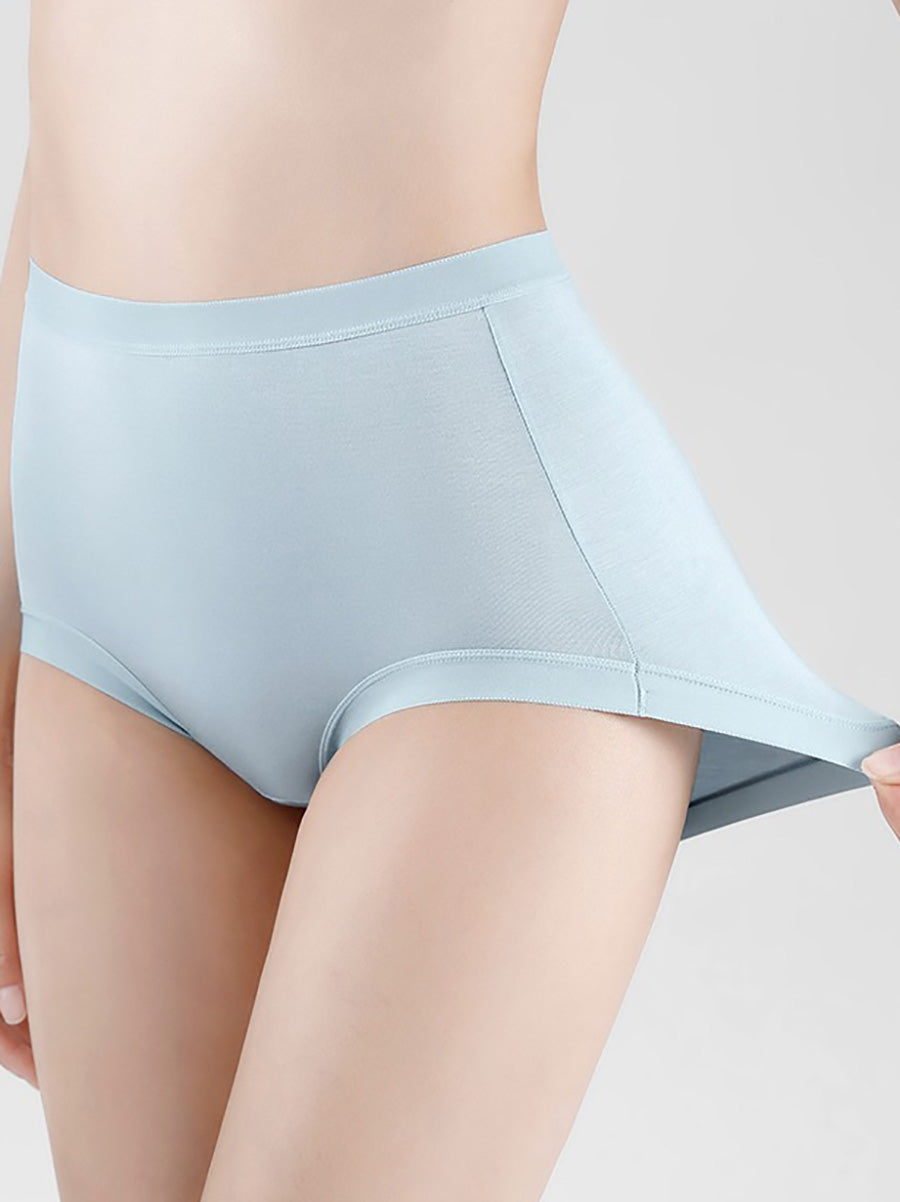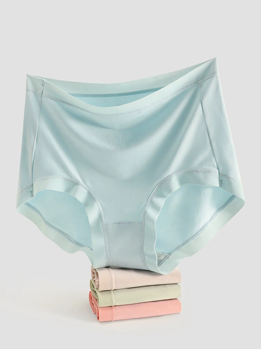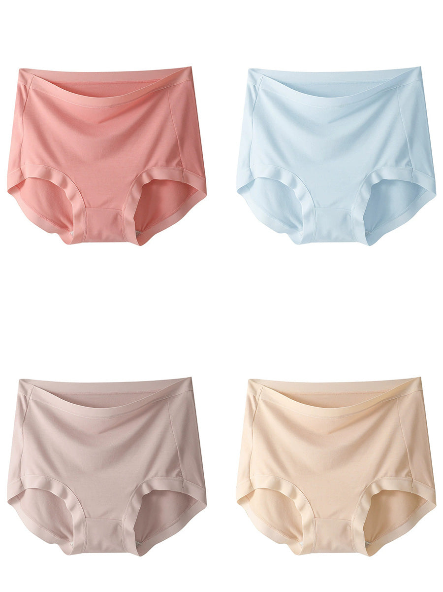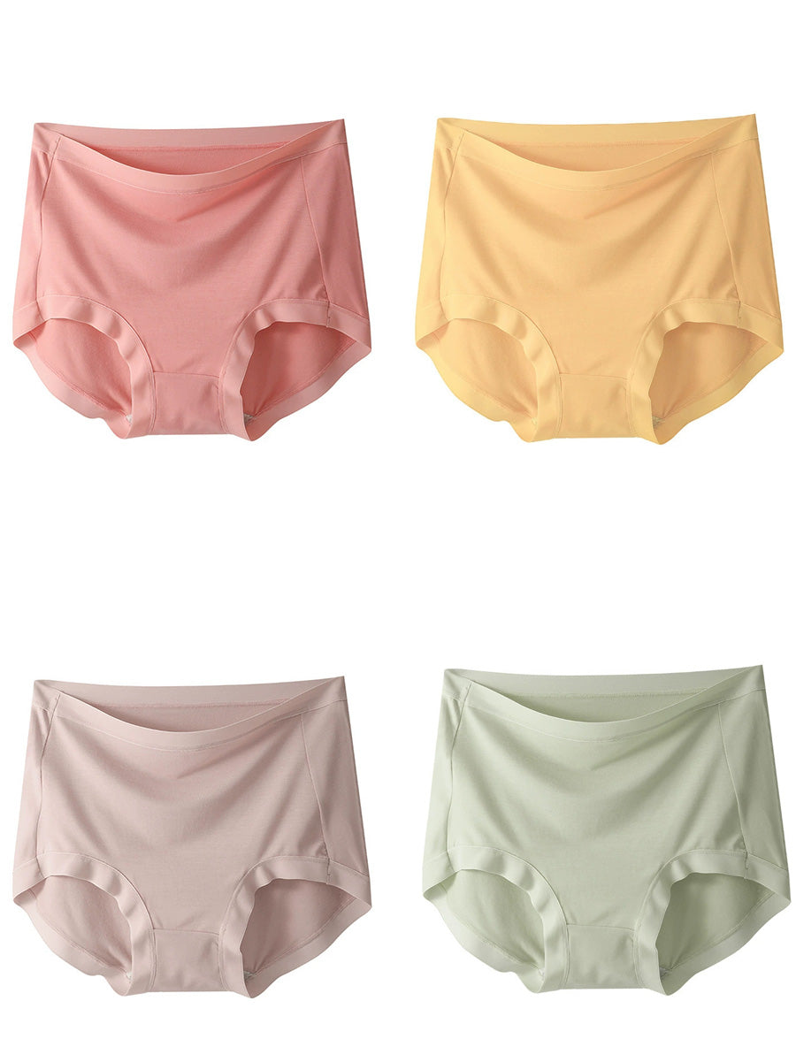4 piezas de ropa interior casual de cintura alta de color puro para mujer