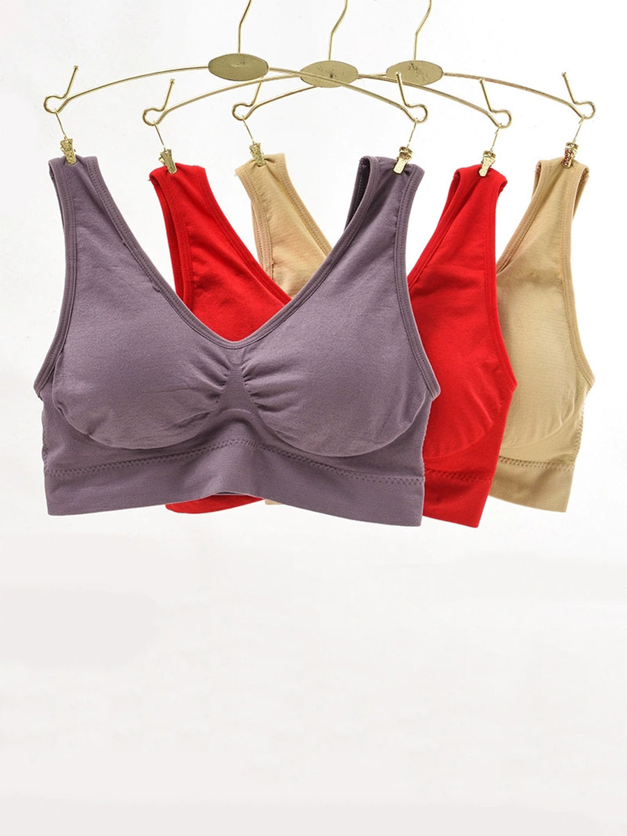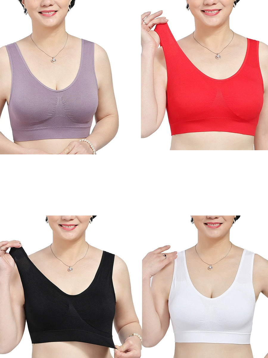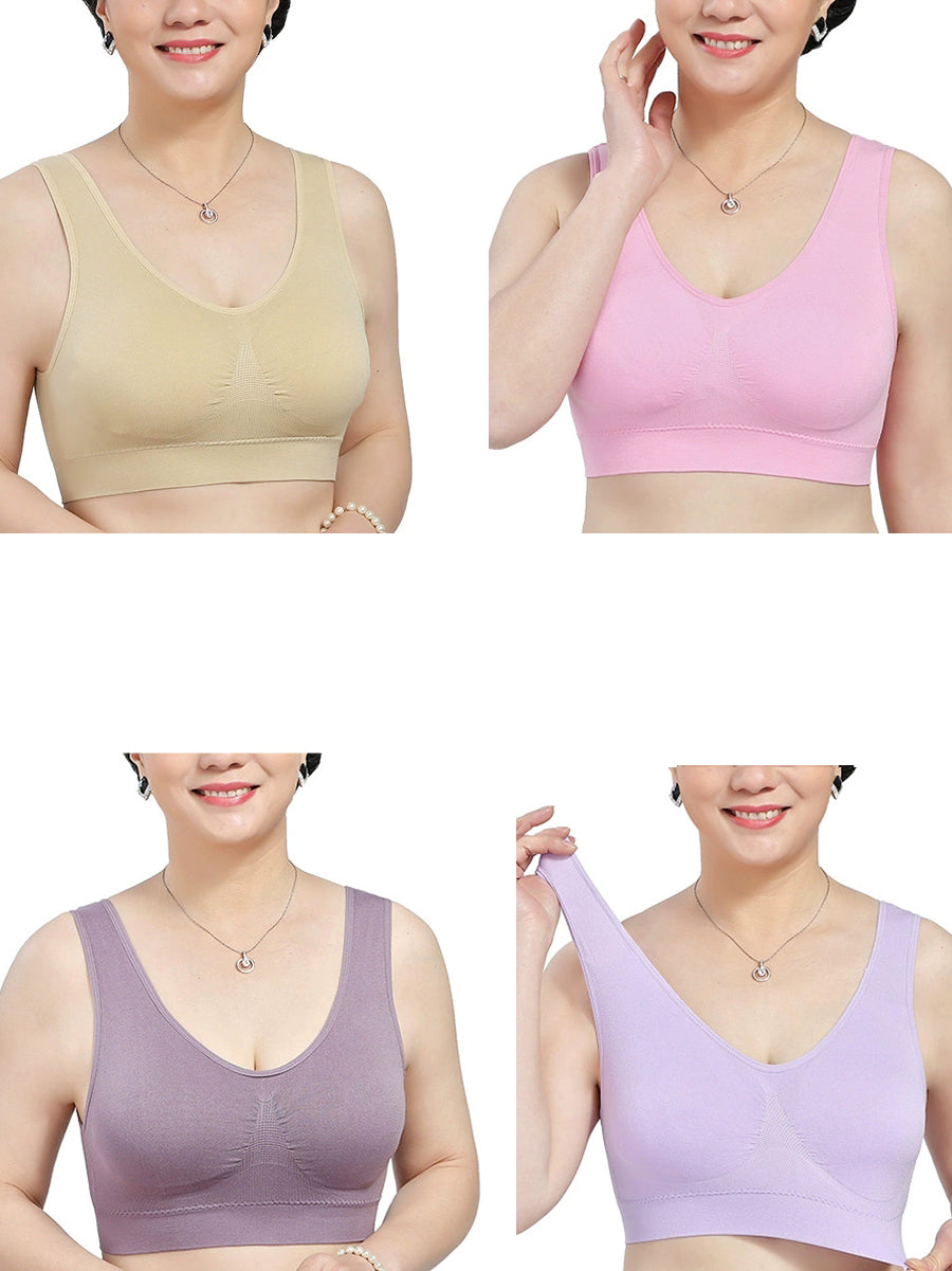 Sujetador sin aros de una pieza, informal, de color puro, para mujer, 4 piezas