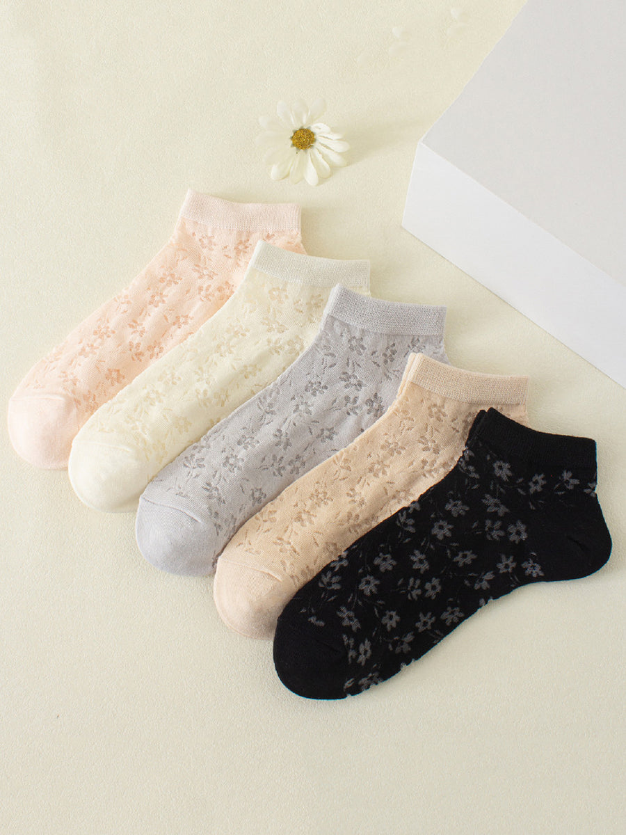5 pares de calcetines cortos de mujer con estampado floral artístico.