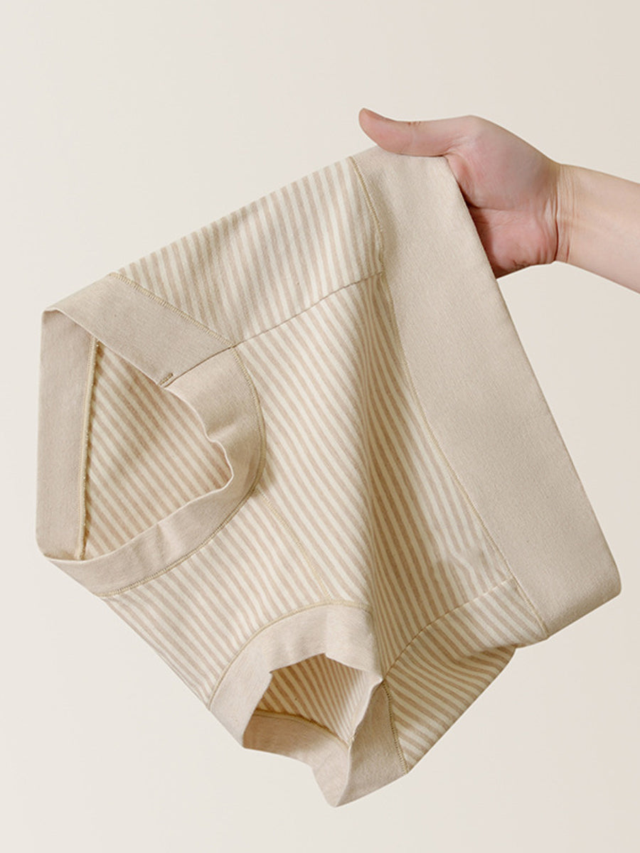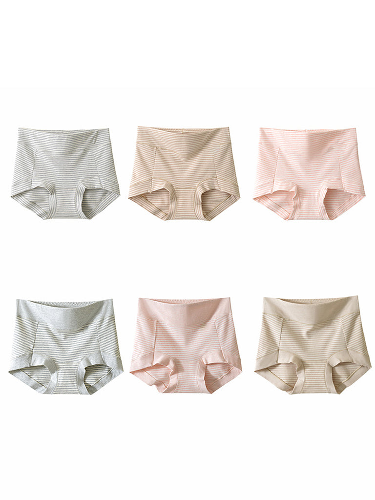 6 piezas de ropa interior de algodón de cintura alta a rayas para mujer