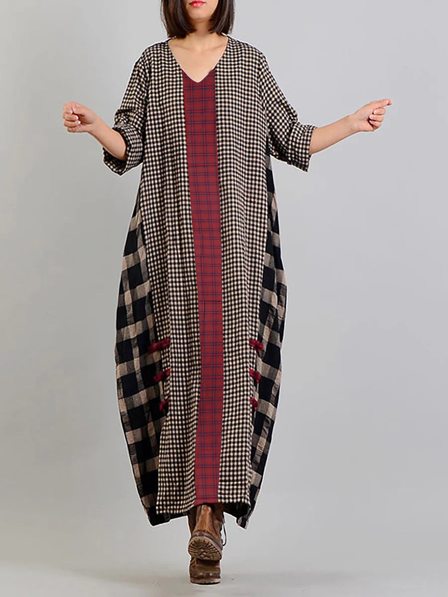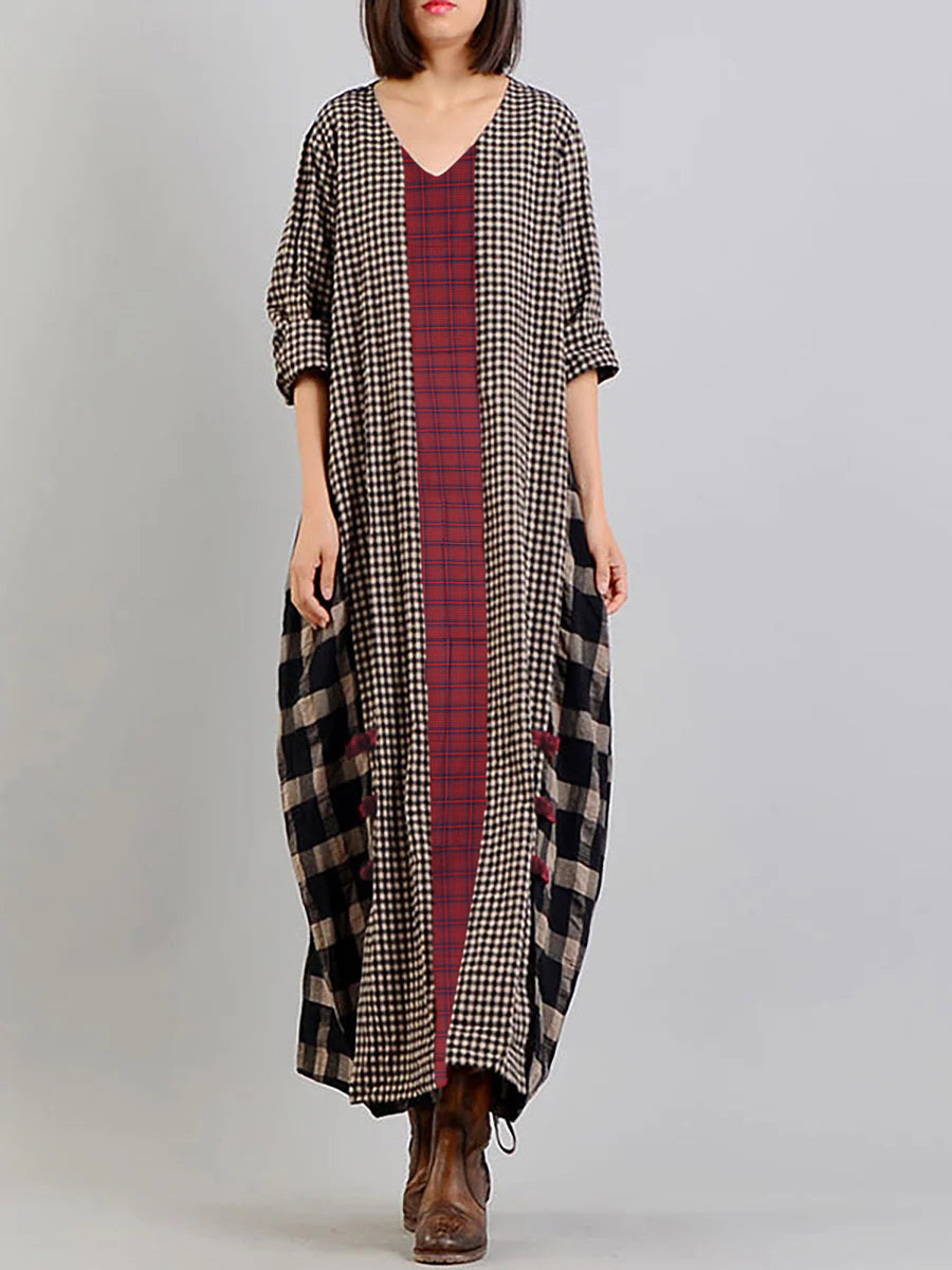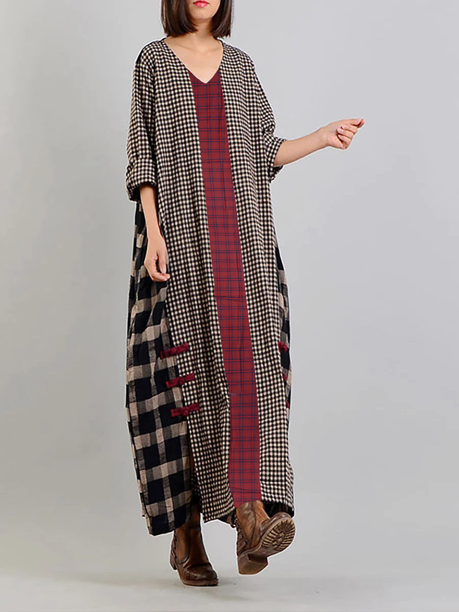 Vestido retro de lino y algodón a cuadros de distintos colores y talla grande