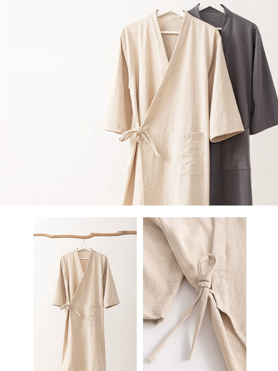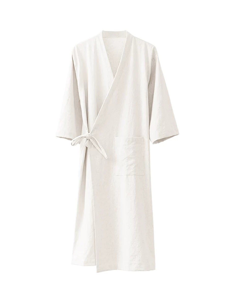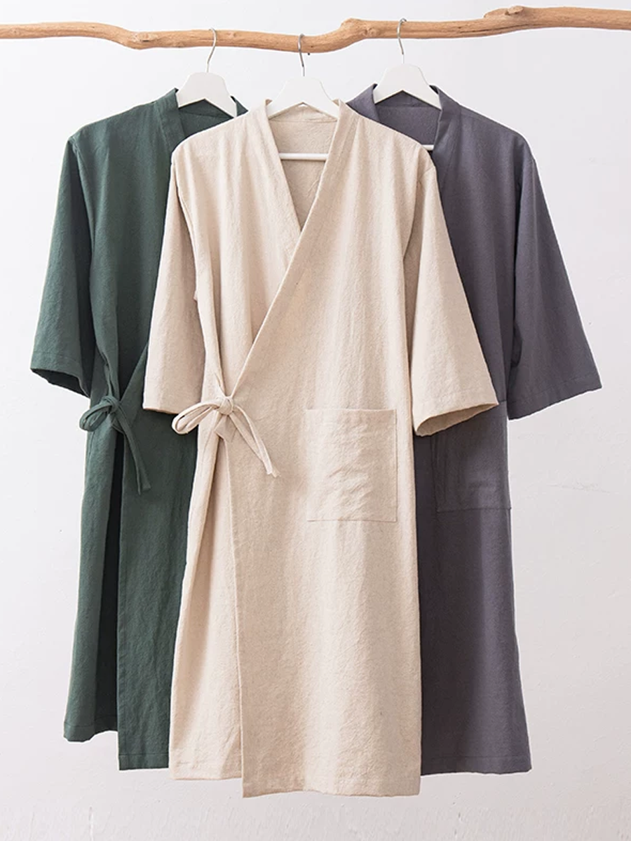 Bata de baño unisex de algodón y lino de color liso