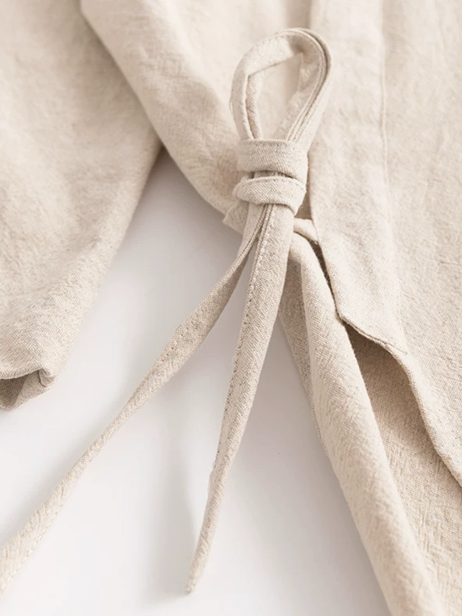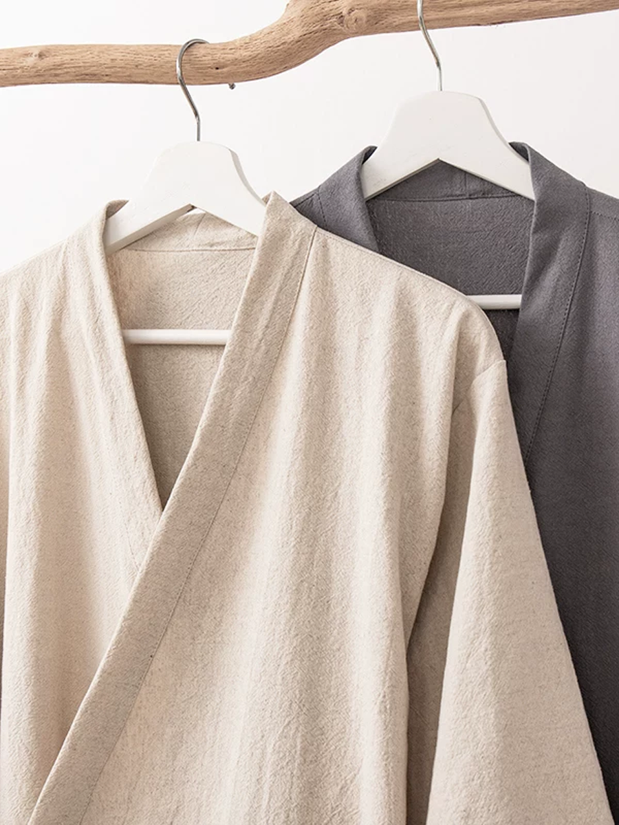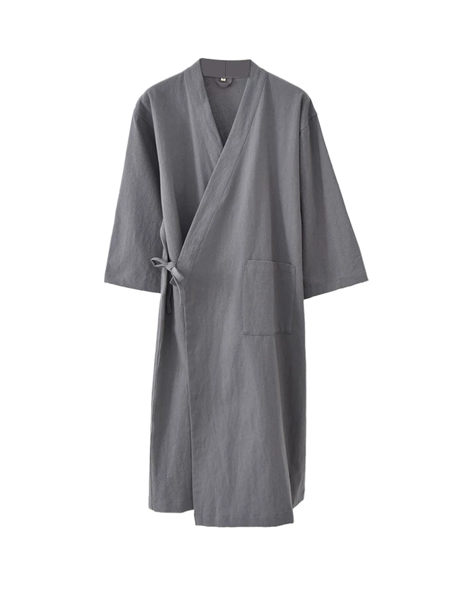 Bata de baño unisex de algodón y lino de color liso