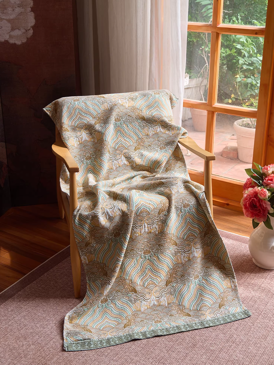 Juego de 3 toallas de algodón y cáñamo con borlas florales estilo retro (copia)