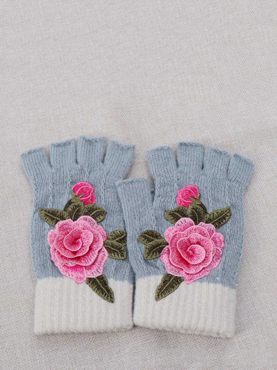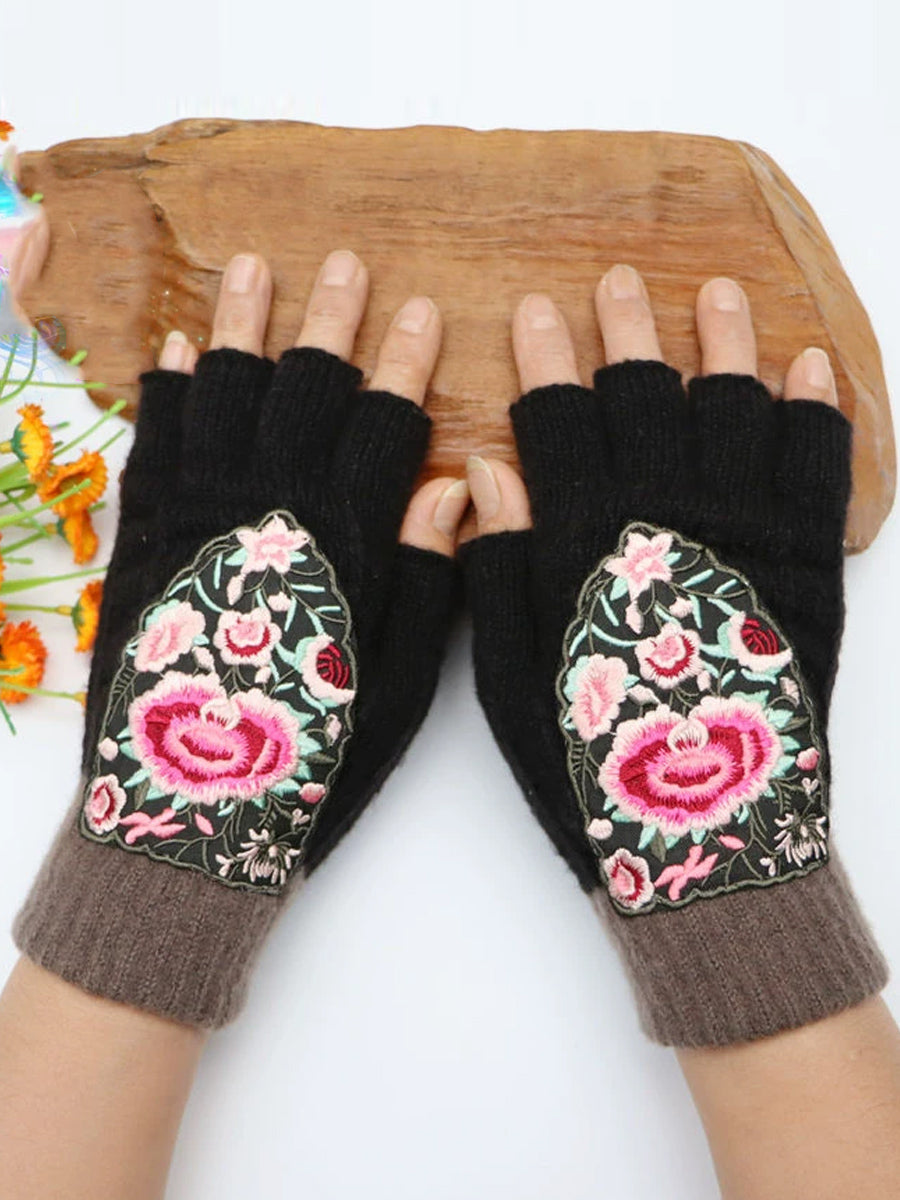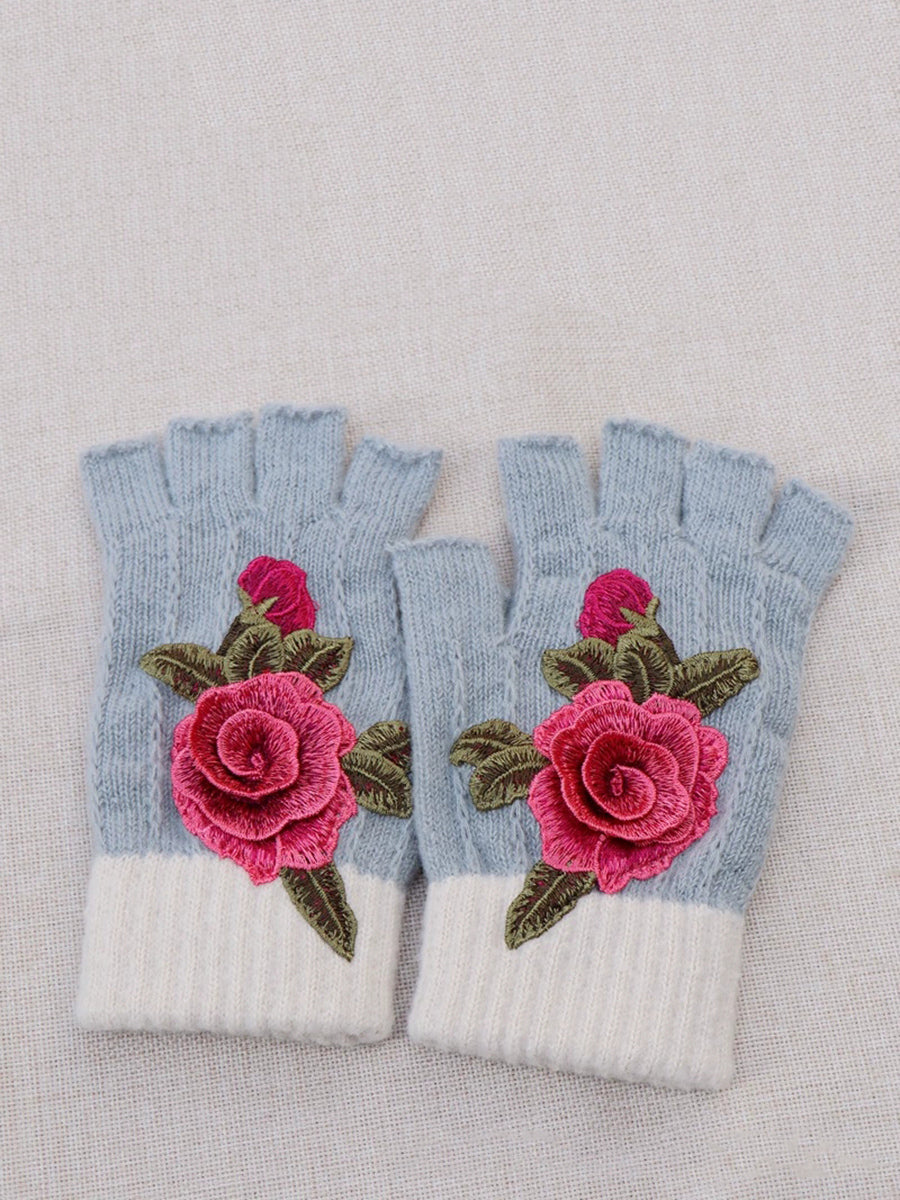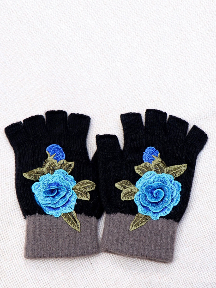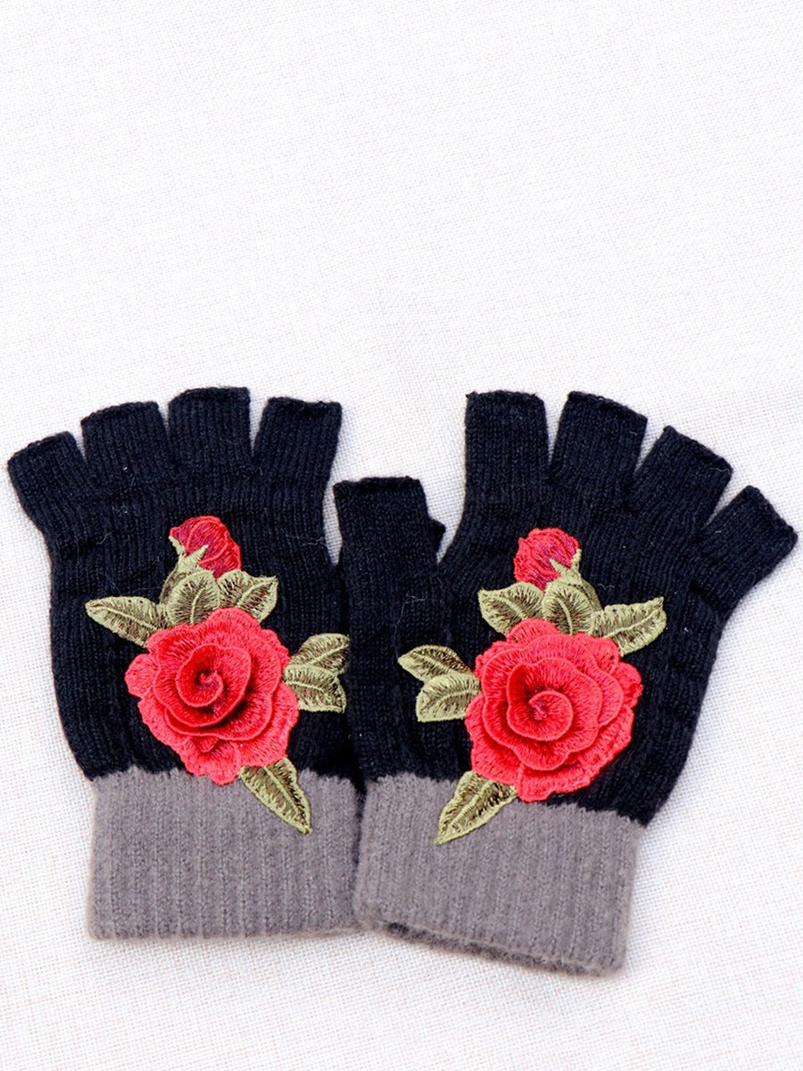 Guantes empalmados con bordado de flores artísticas de invierno