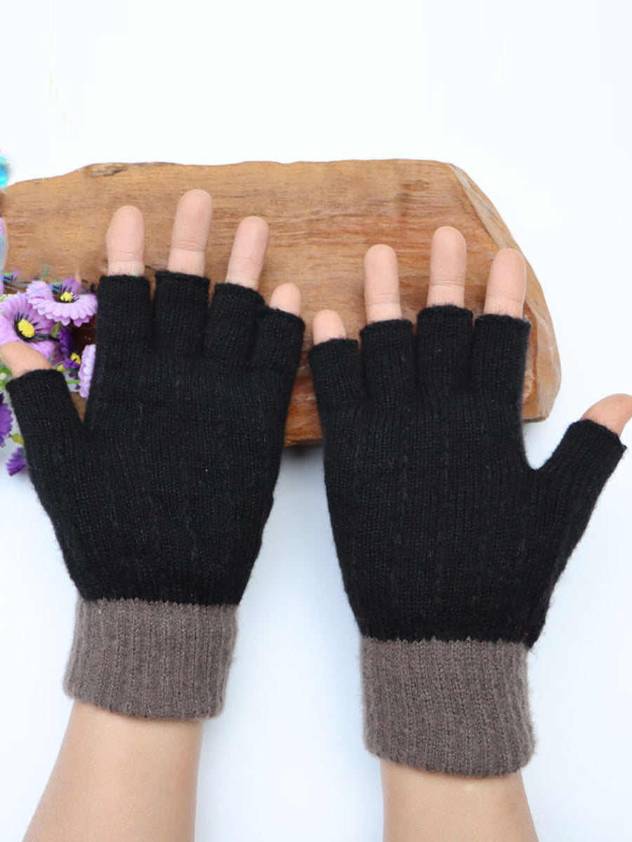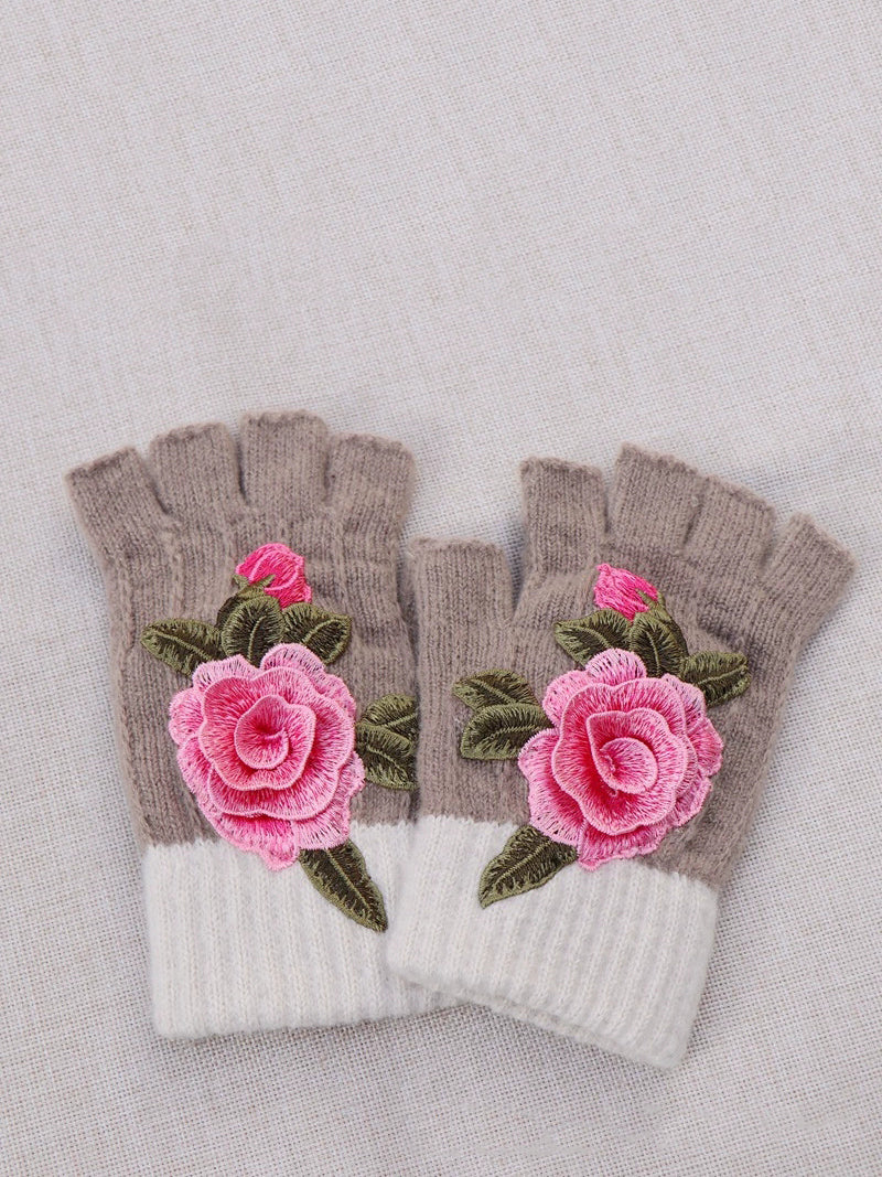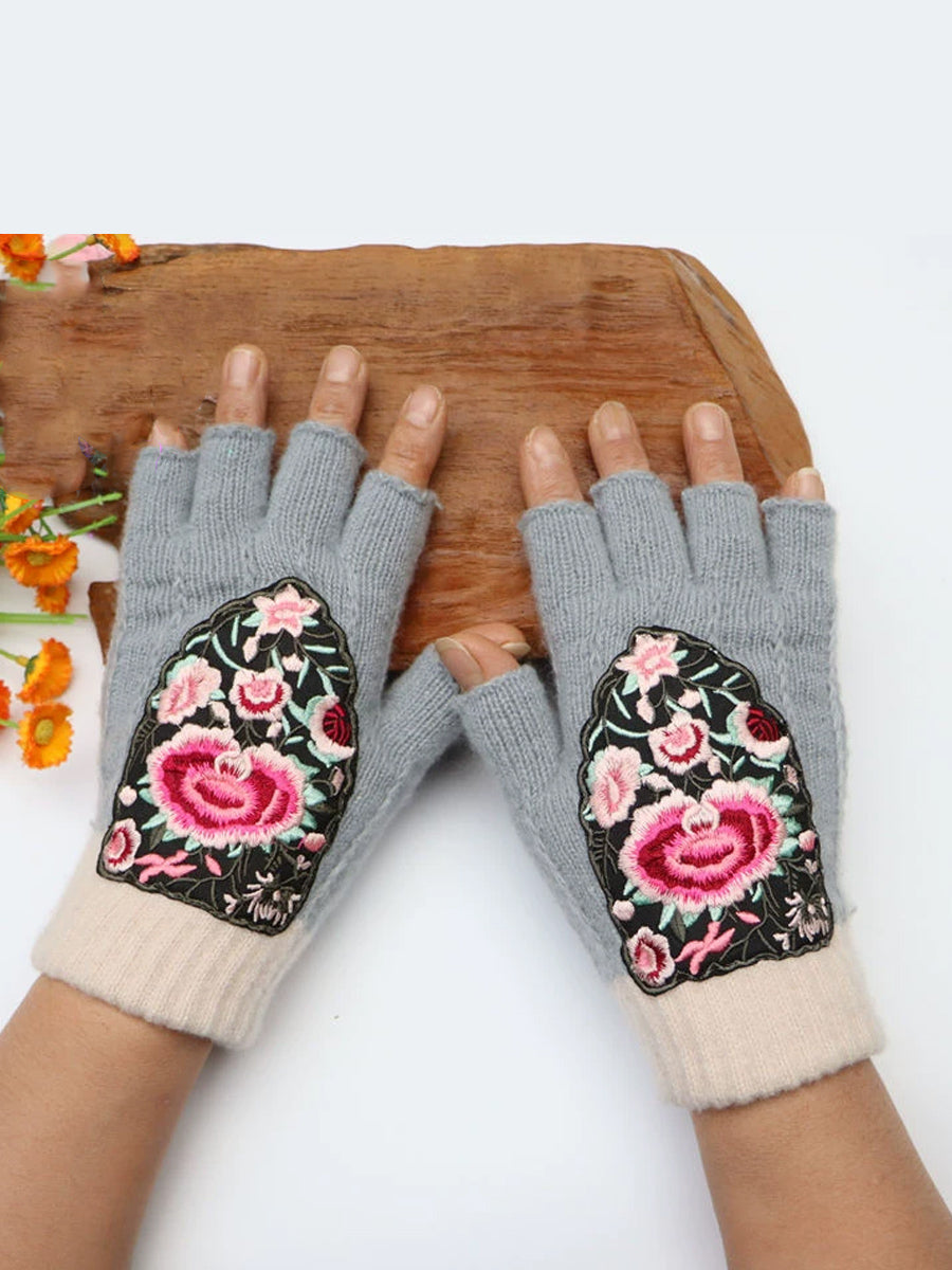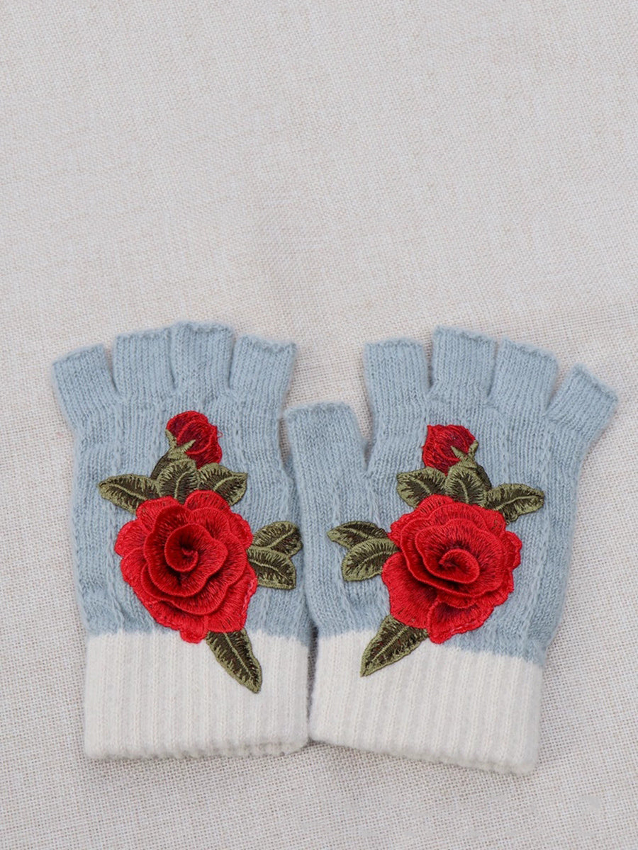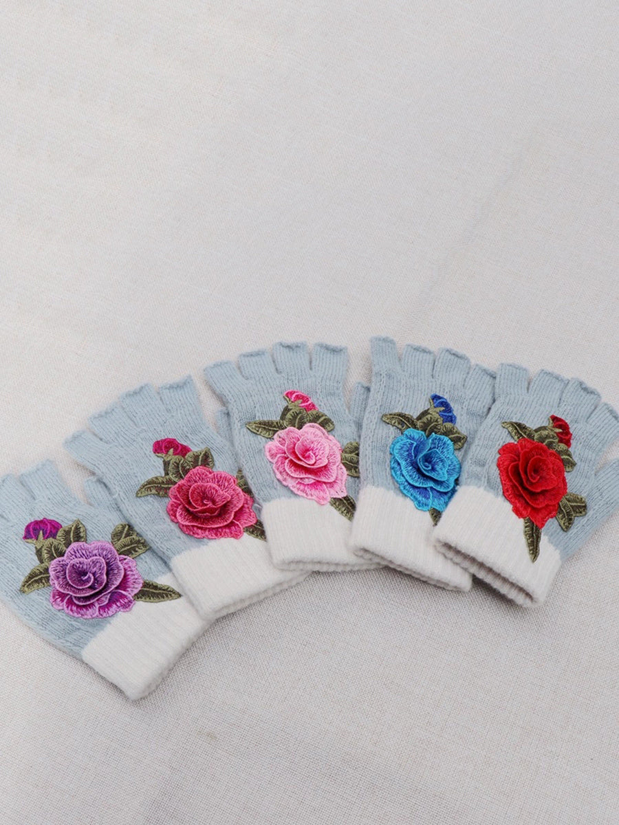 Guantes empalmados con bordado de flores artísticas de invierno