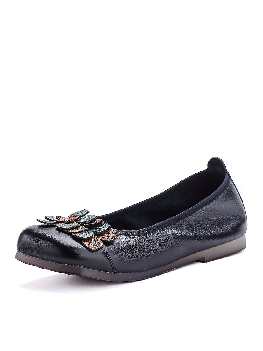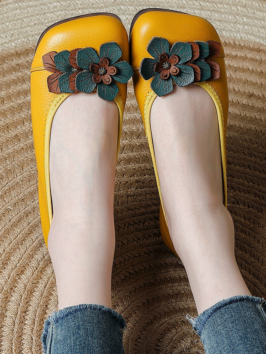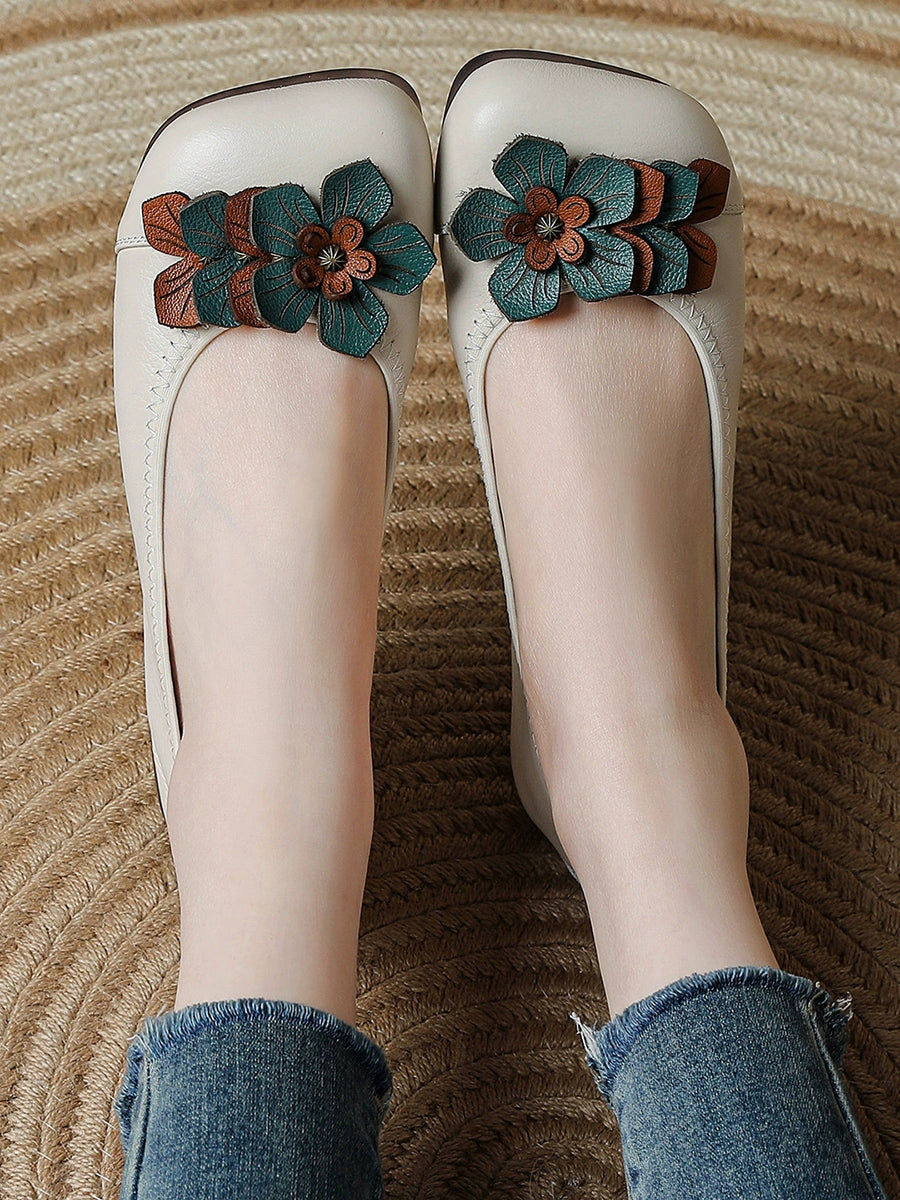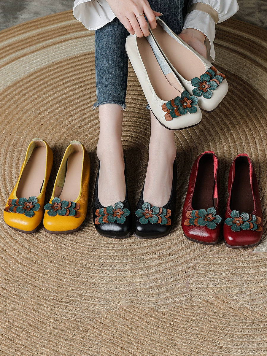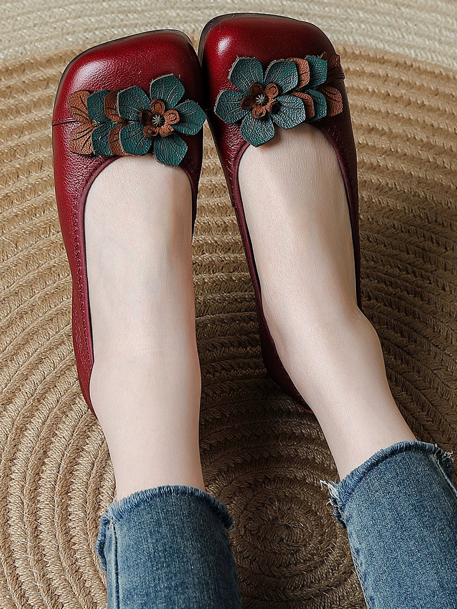 Zapatos de piel auténtica con diseño floral para mujer
