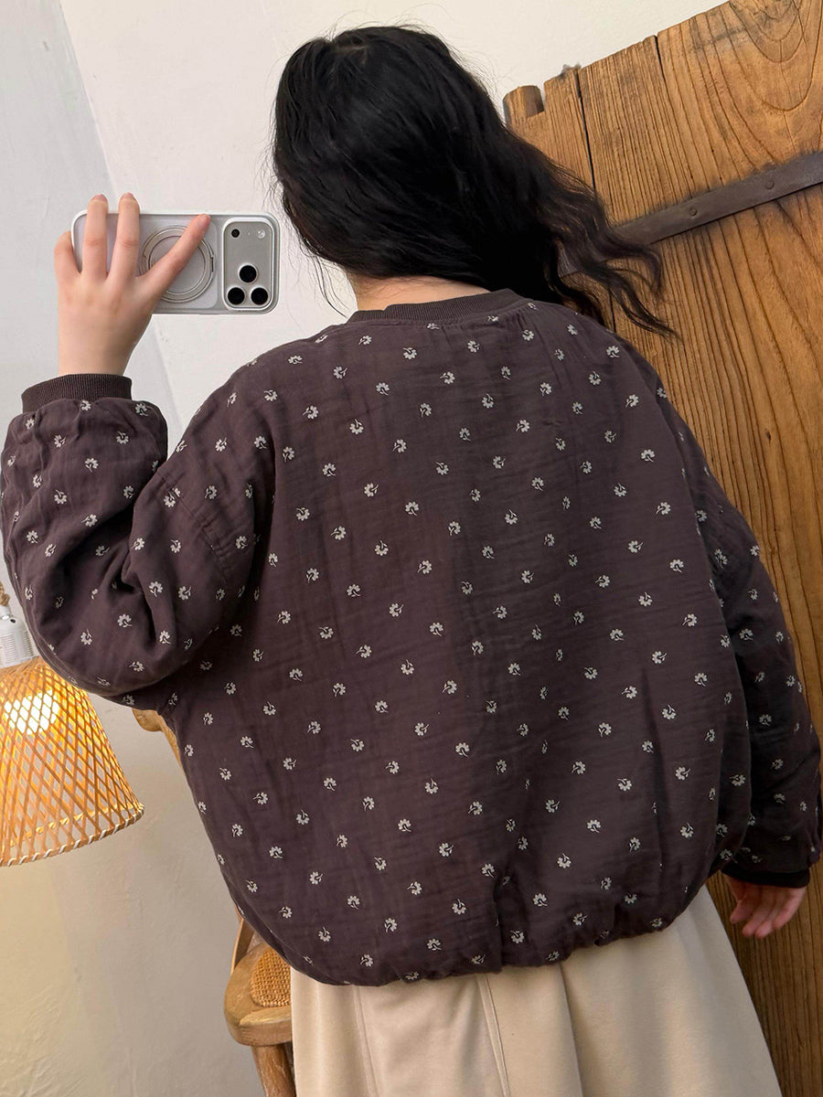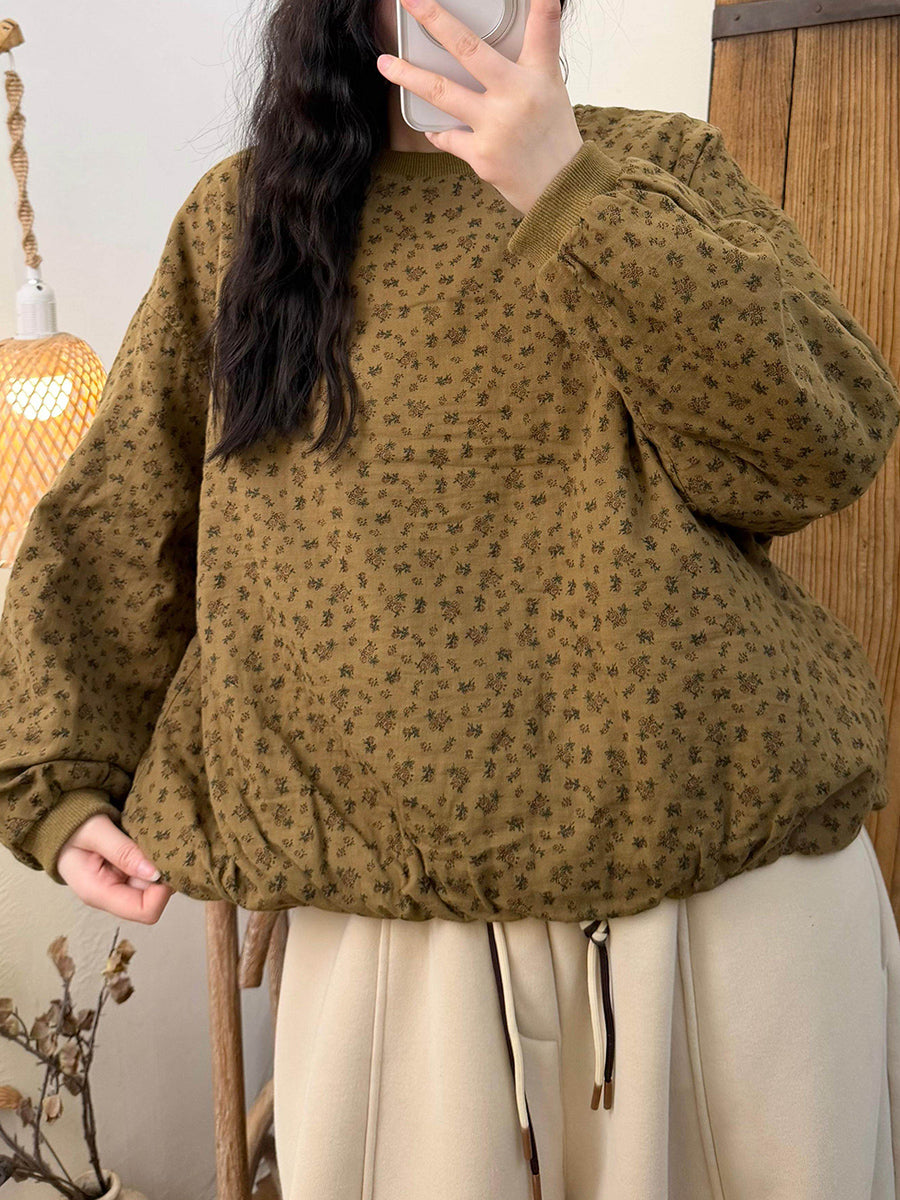 Blusa acolchada con cuello redondo y estampado floral de primavera para mujer