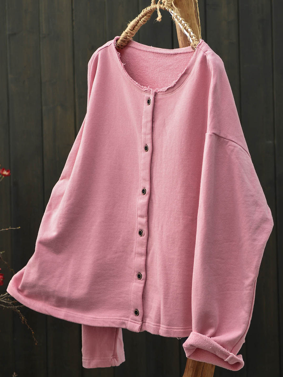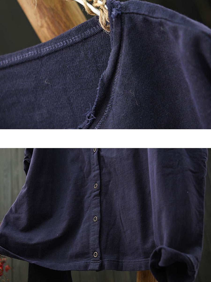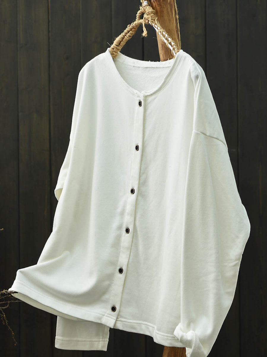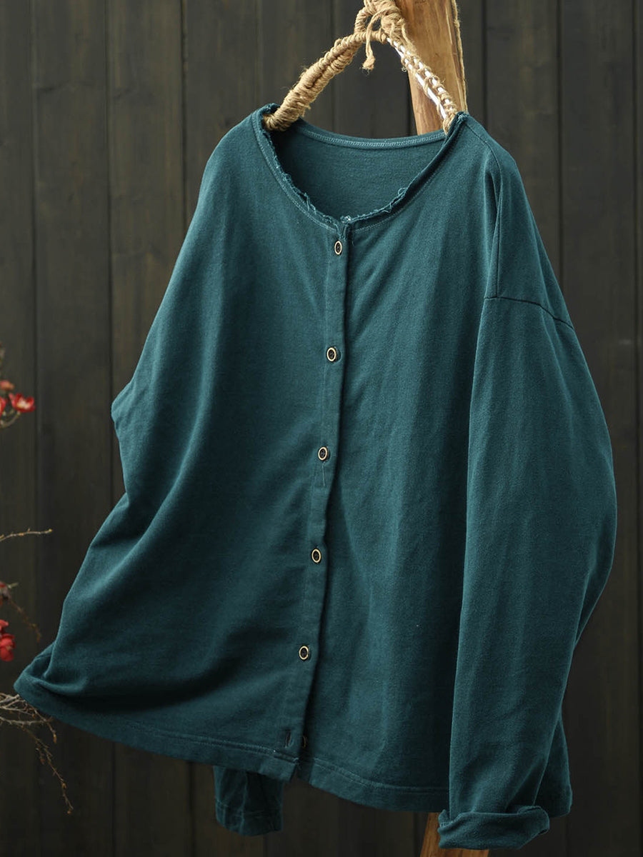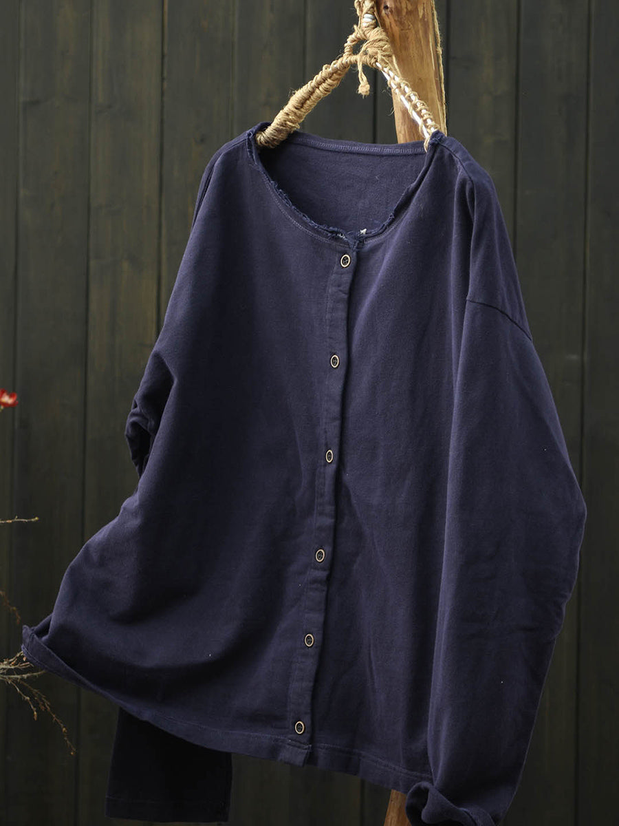 Camisa de algodón con cuello redondo y color puro de primavera para mujer