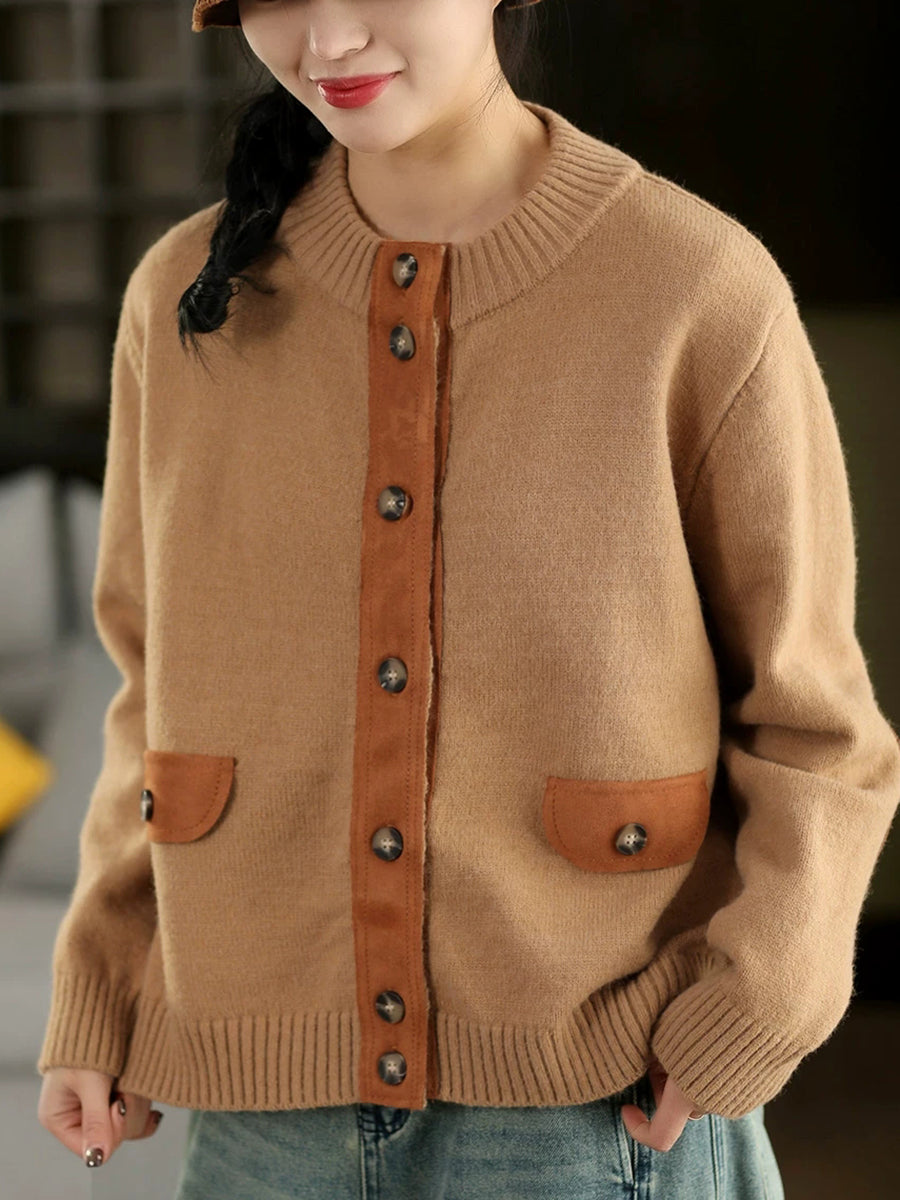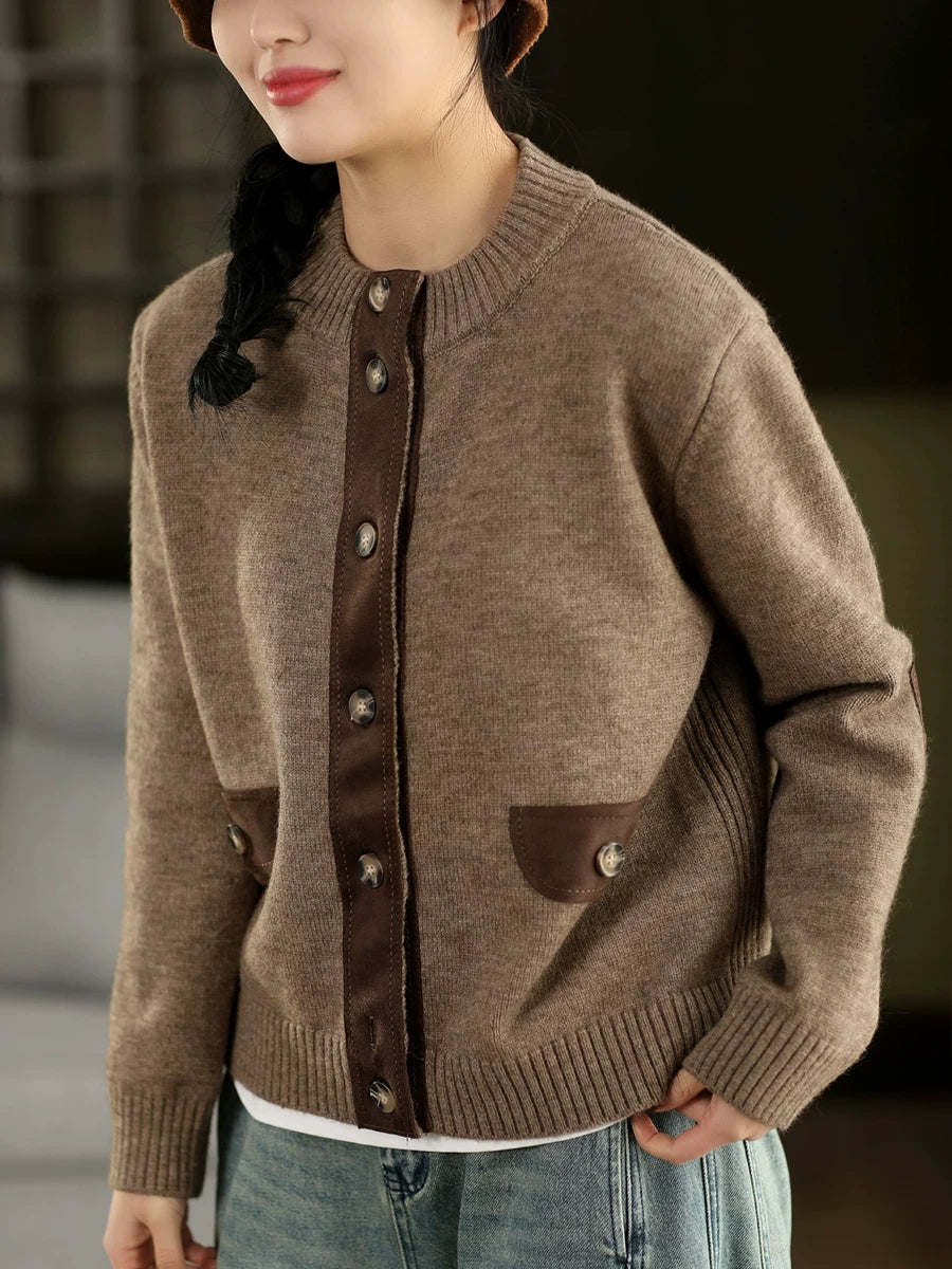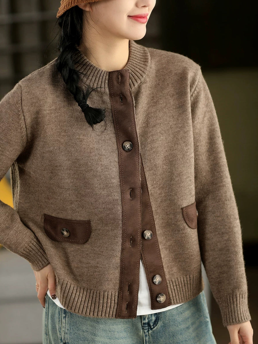 Suéter tipo cárdigan con cuello redondo y empalme de primavera para mujer