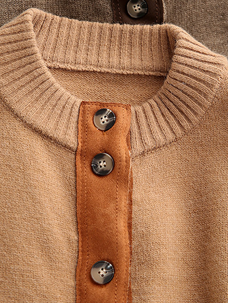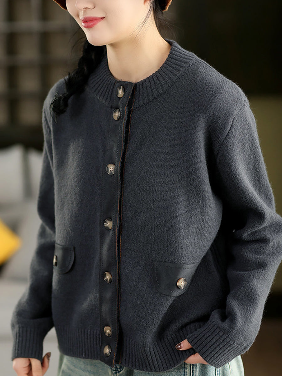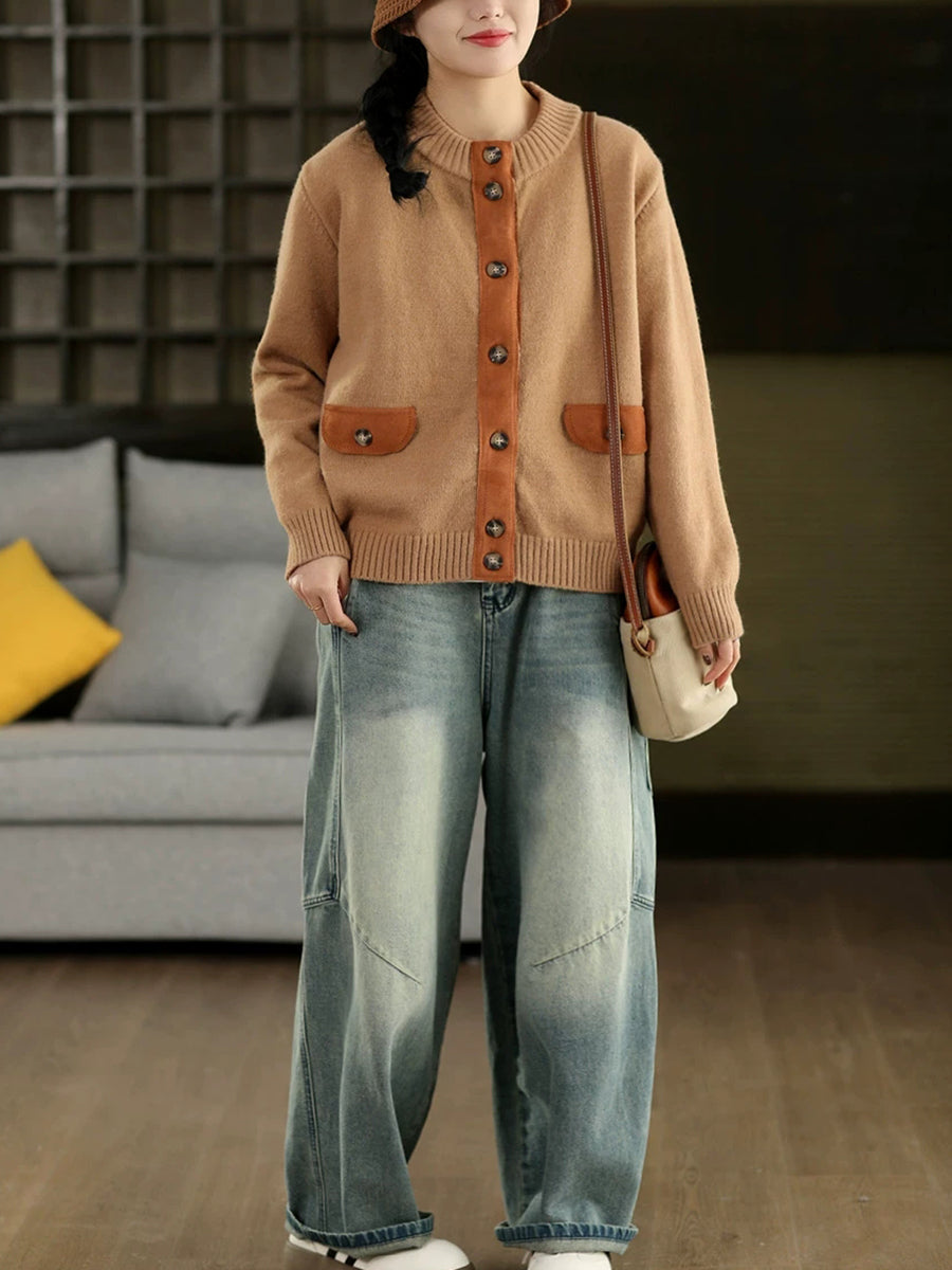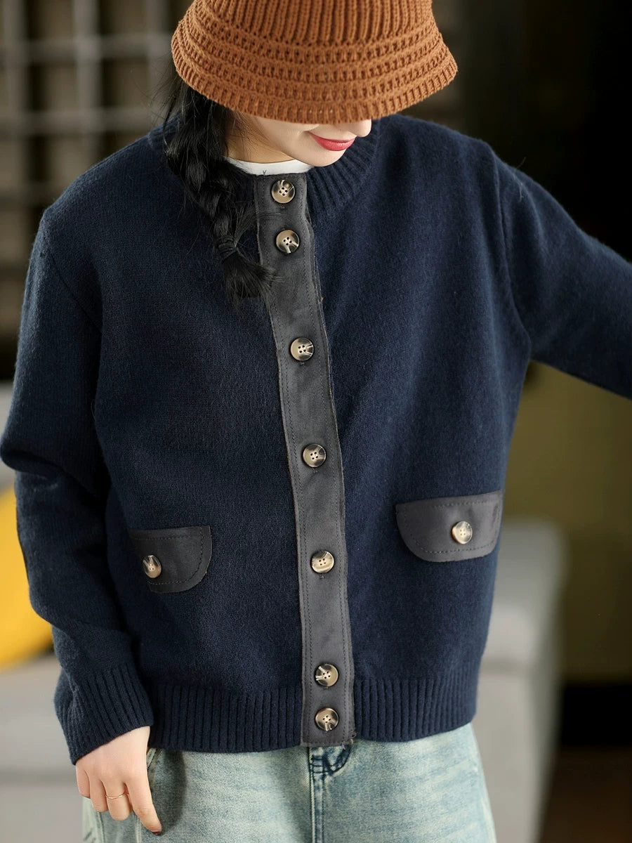 Suéter tipo cárdigan con cuello redondo y empalme de primavera para mujer