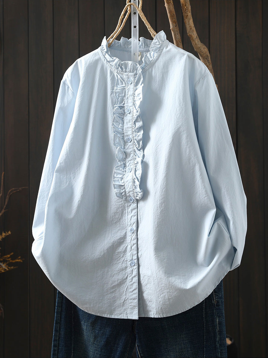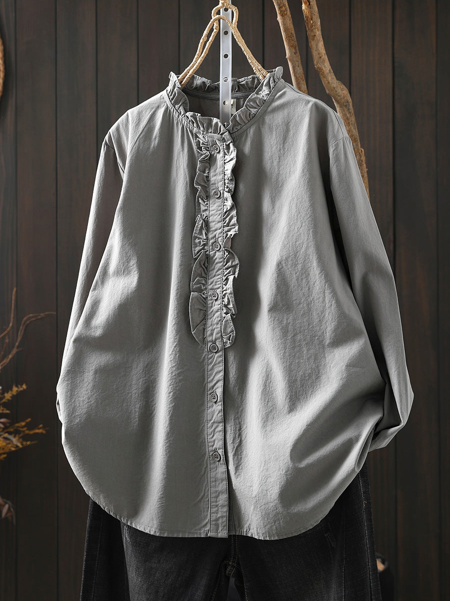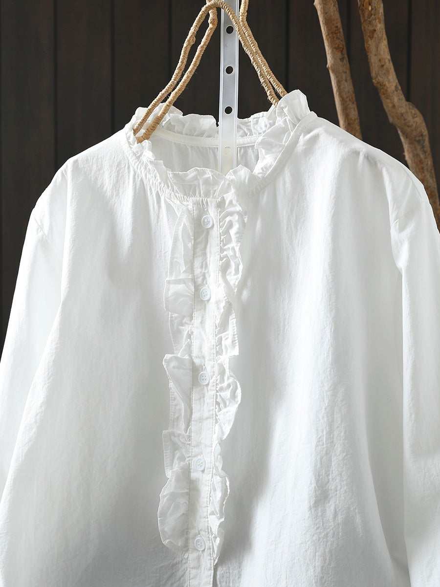 Camisa Artsy Spring de cuello alto para mujer, 100 % algodón