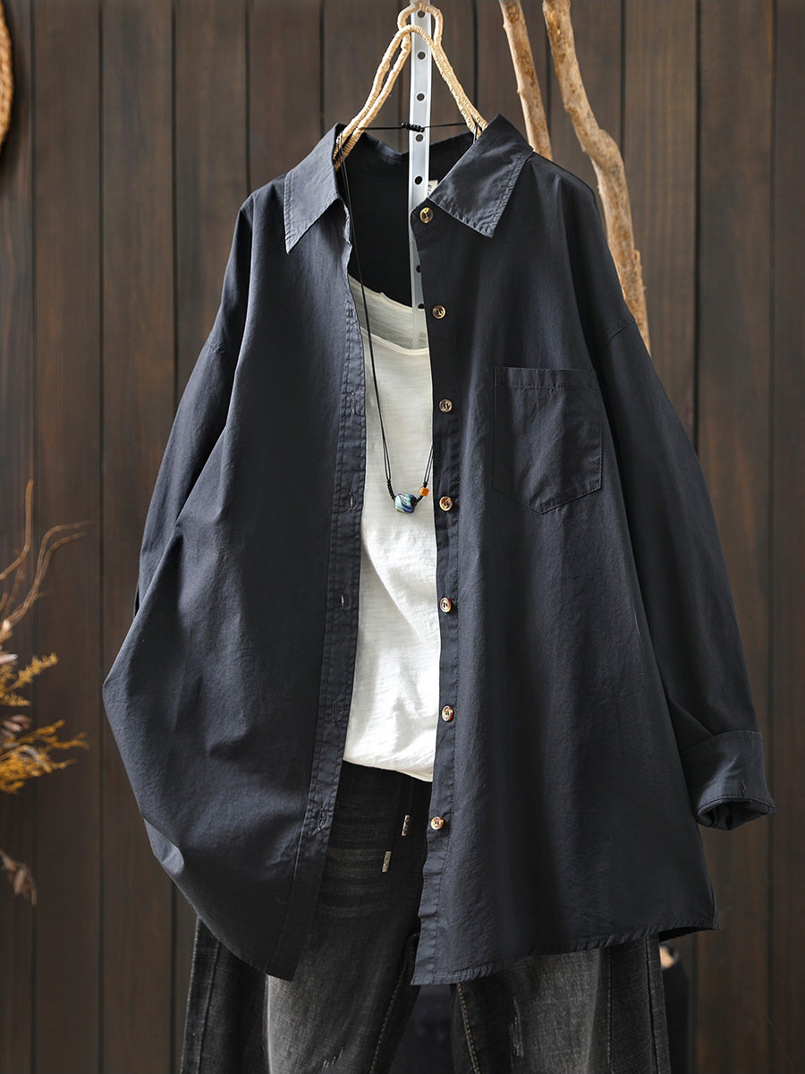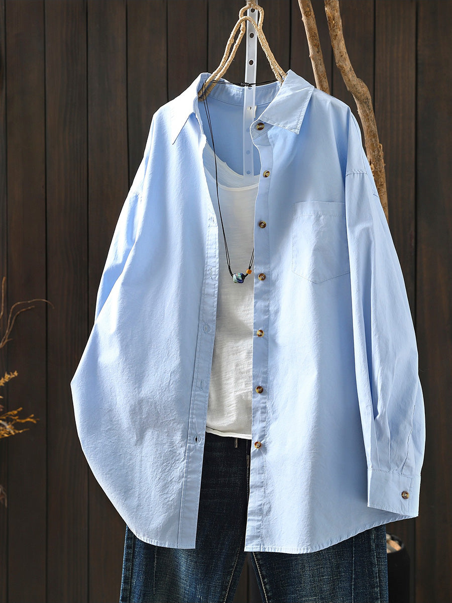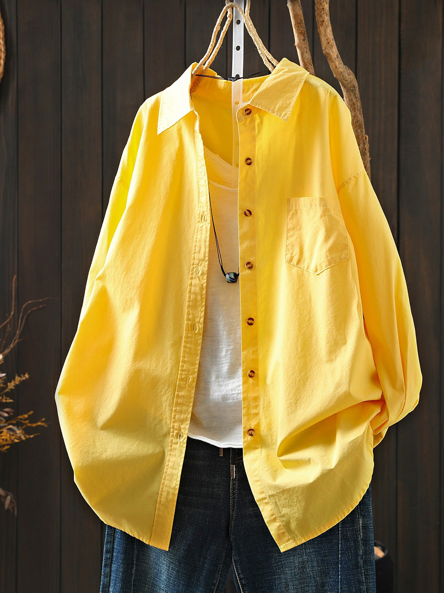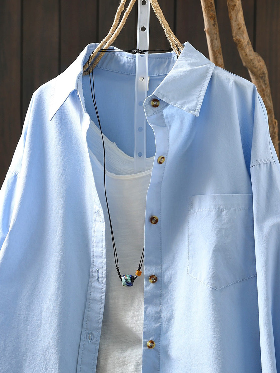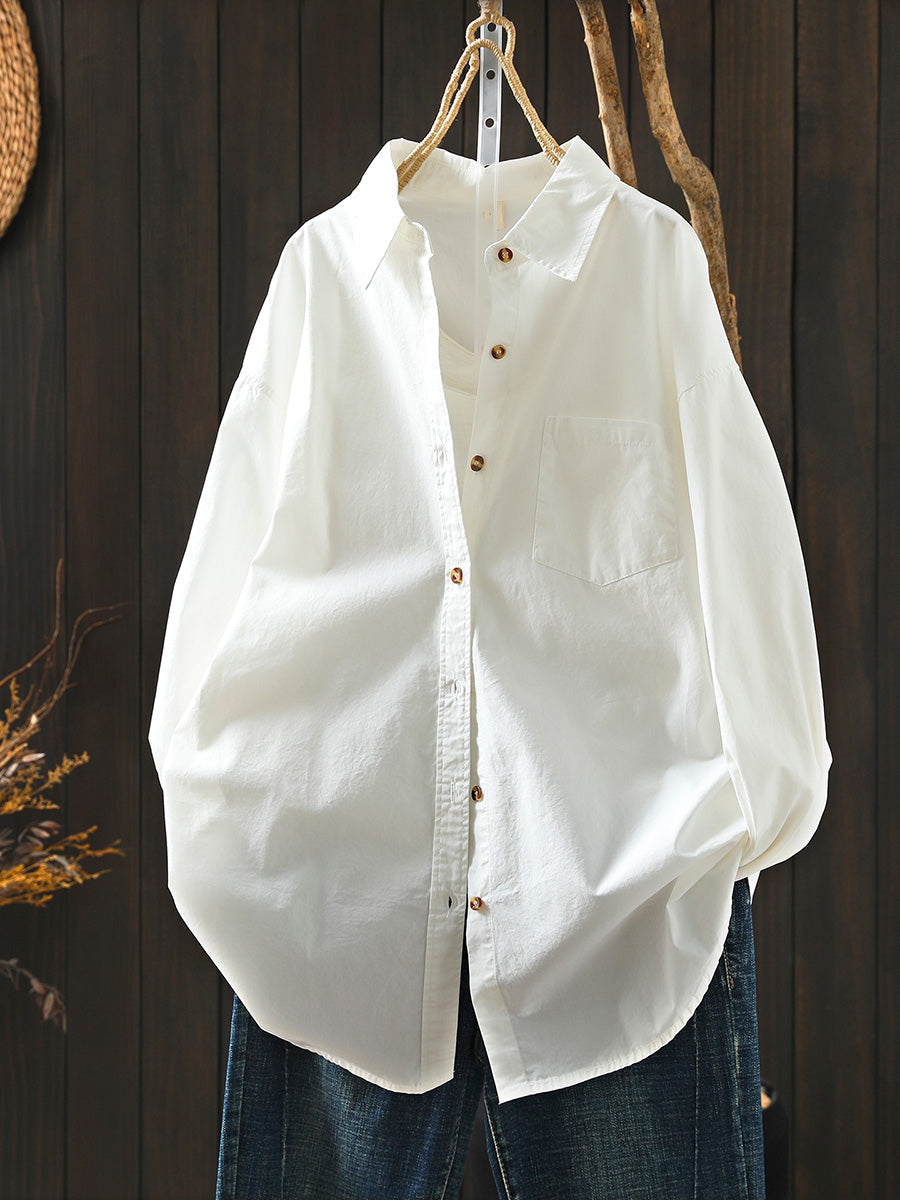 Camisa Artsy Spring para mujer, 100 % algodón, con cuello vuelto