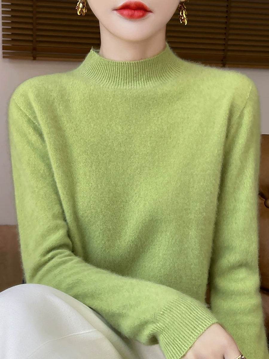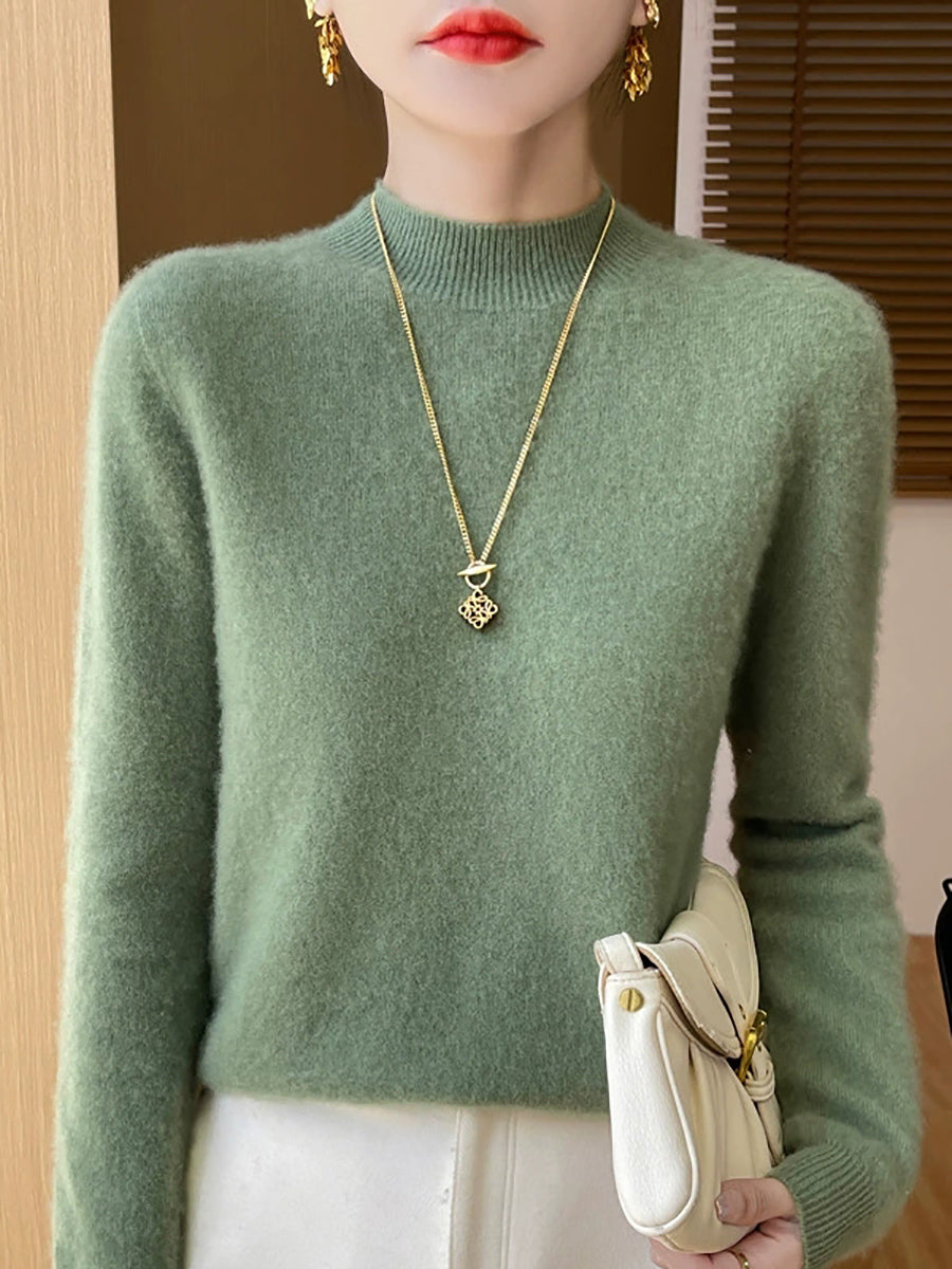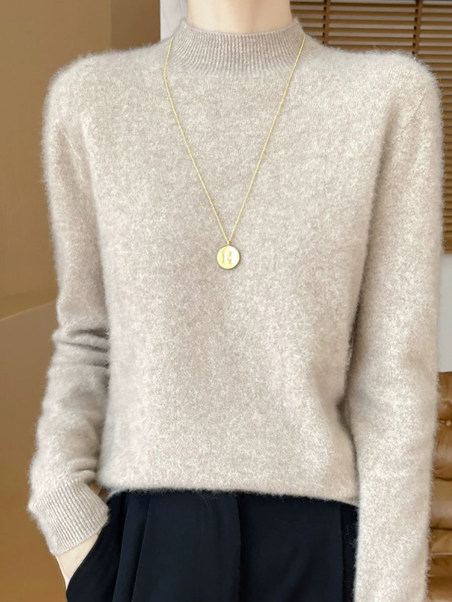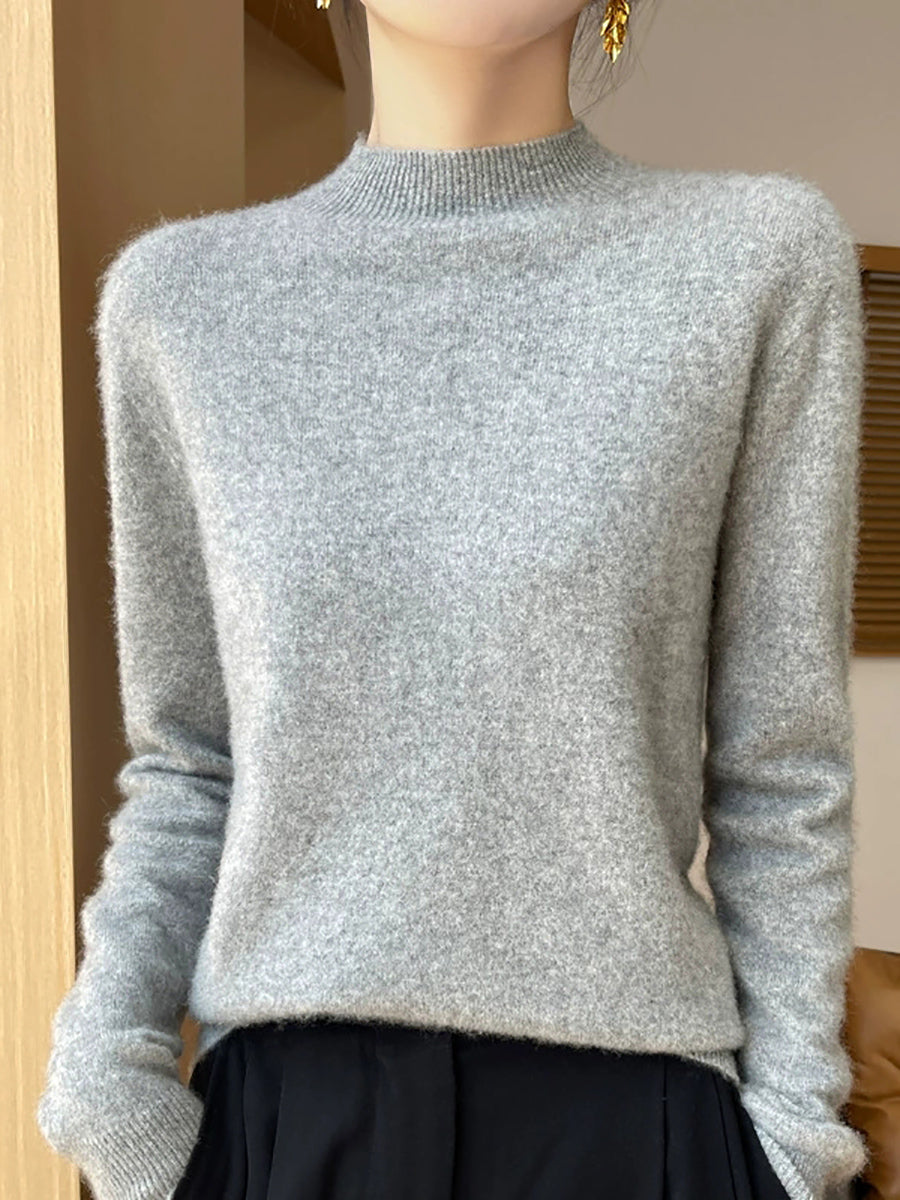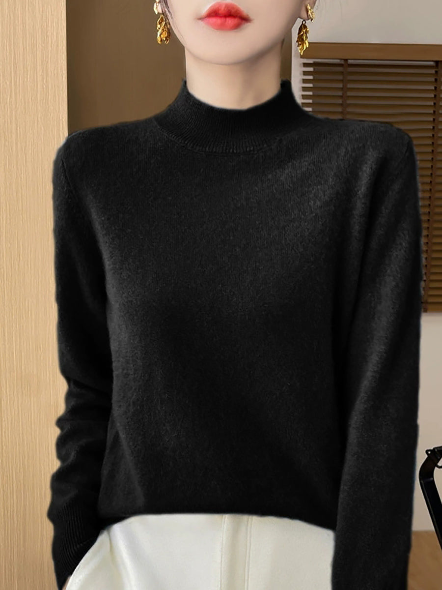 Suéter de cuello alto medio de color puro y artístico de otoño para mujer