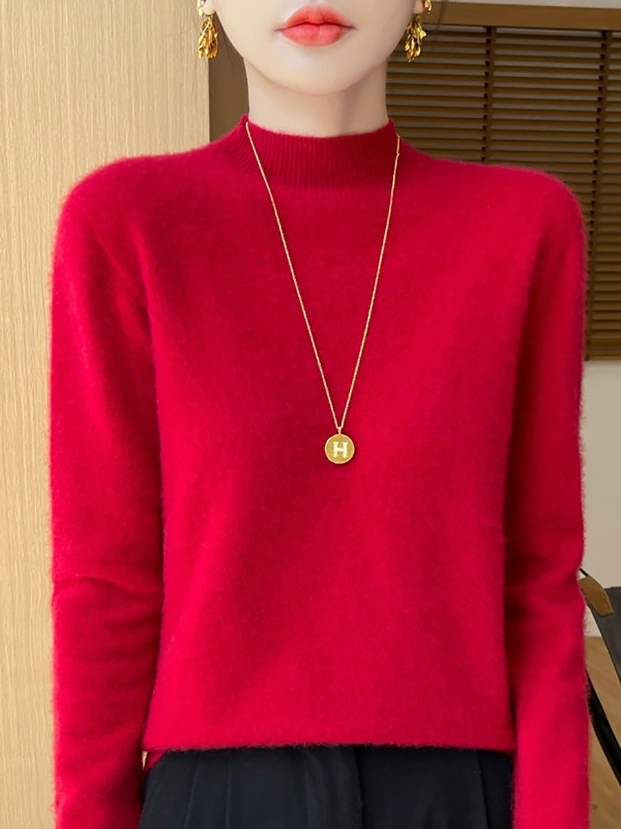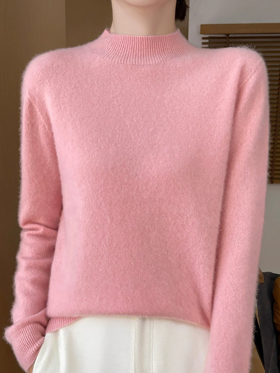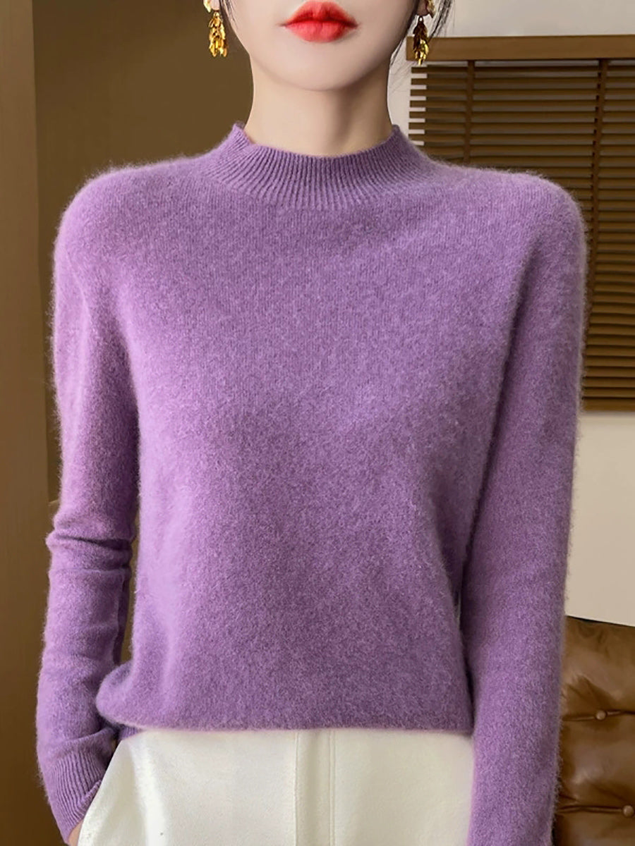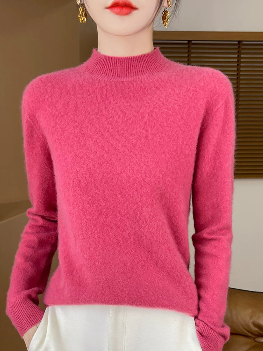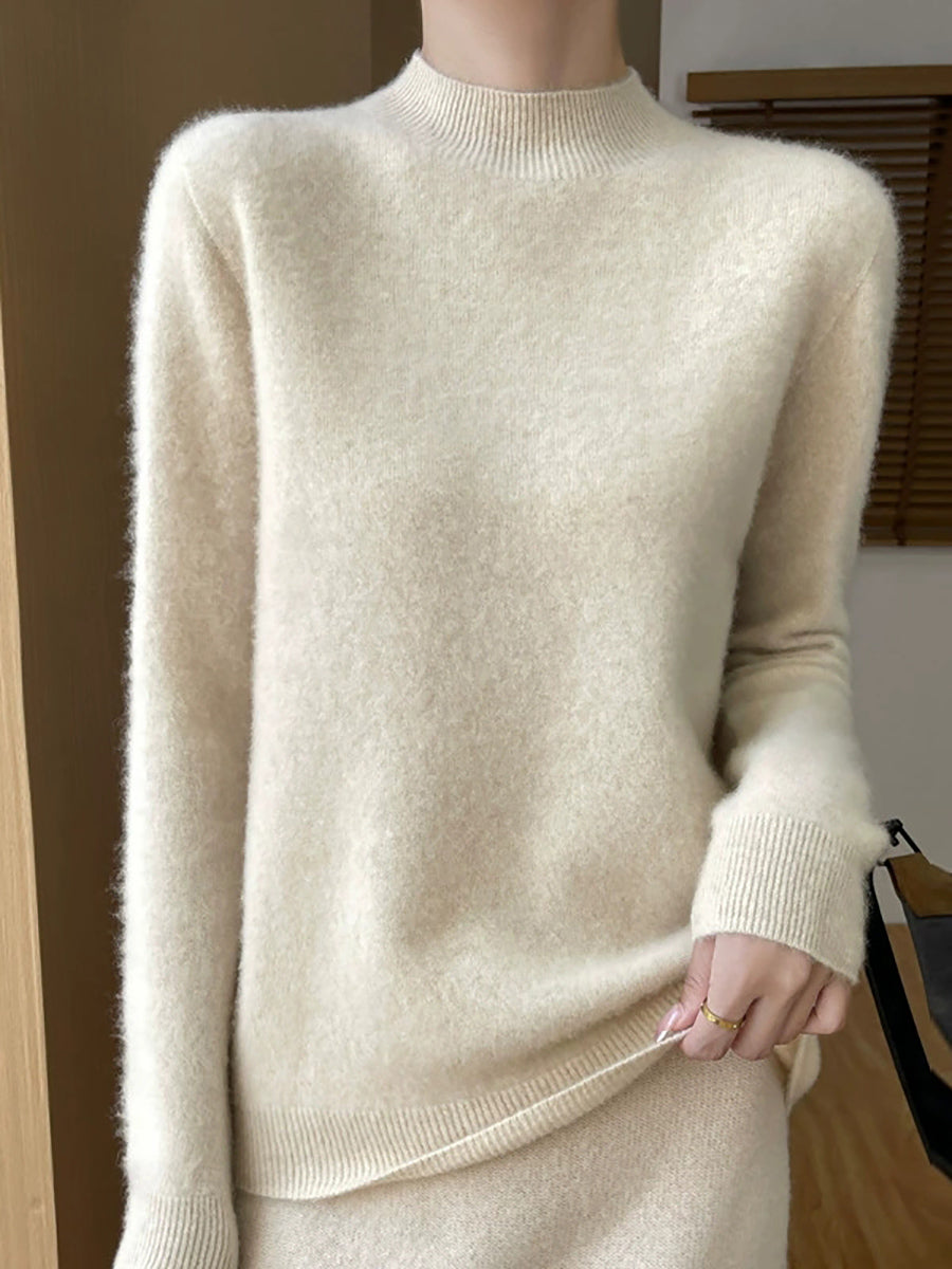 Suéter de cuello alto medio de color puro y artístico de otoño para mujer