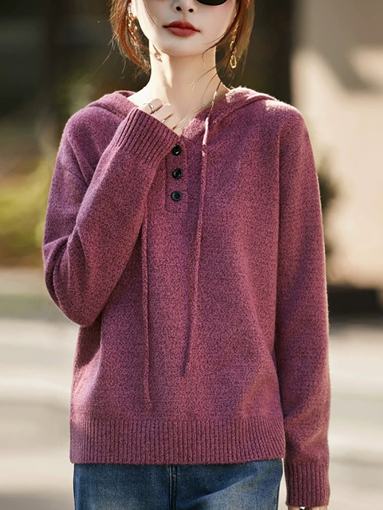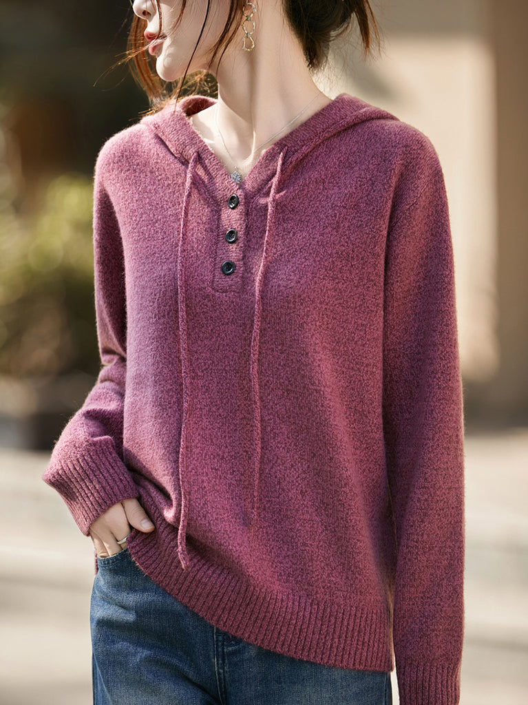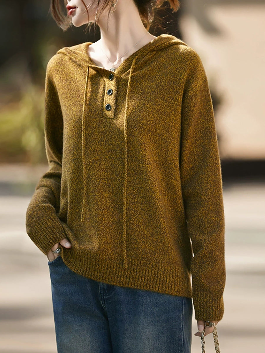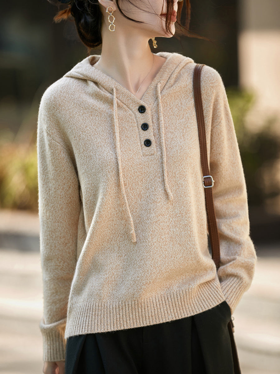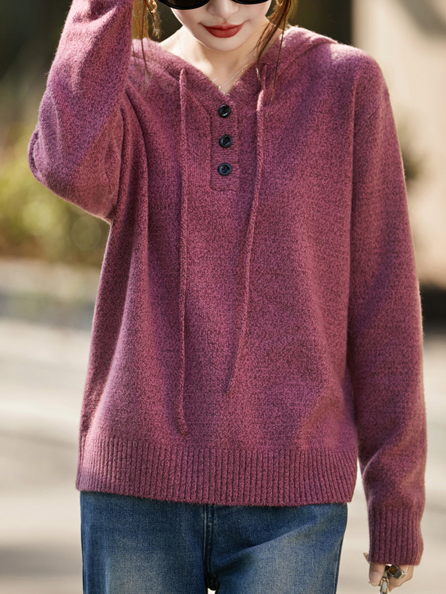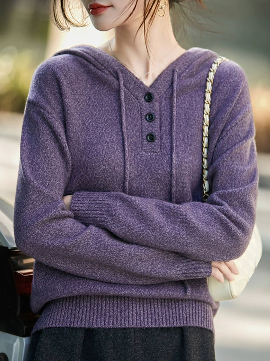 Suéter con capucha de color puro y artístico de otoño para mujer
