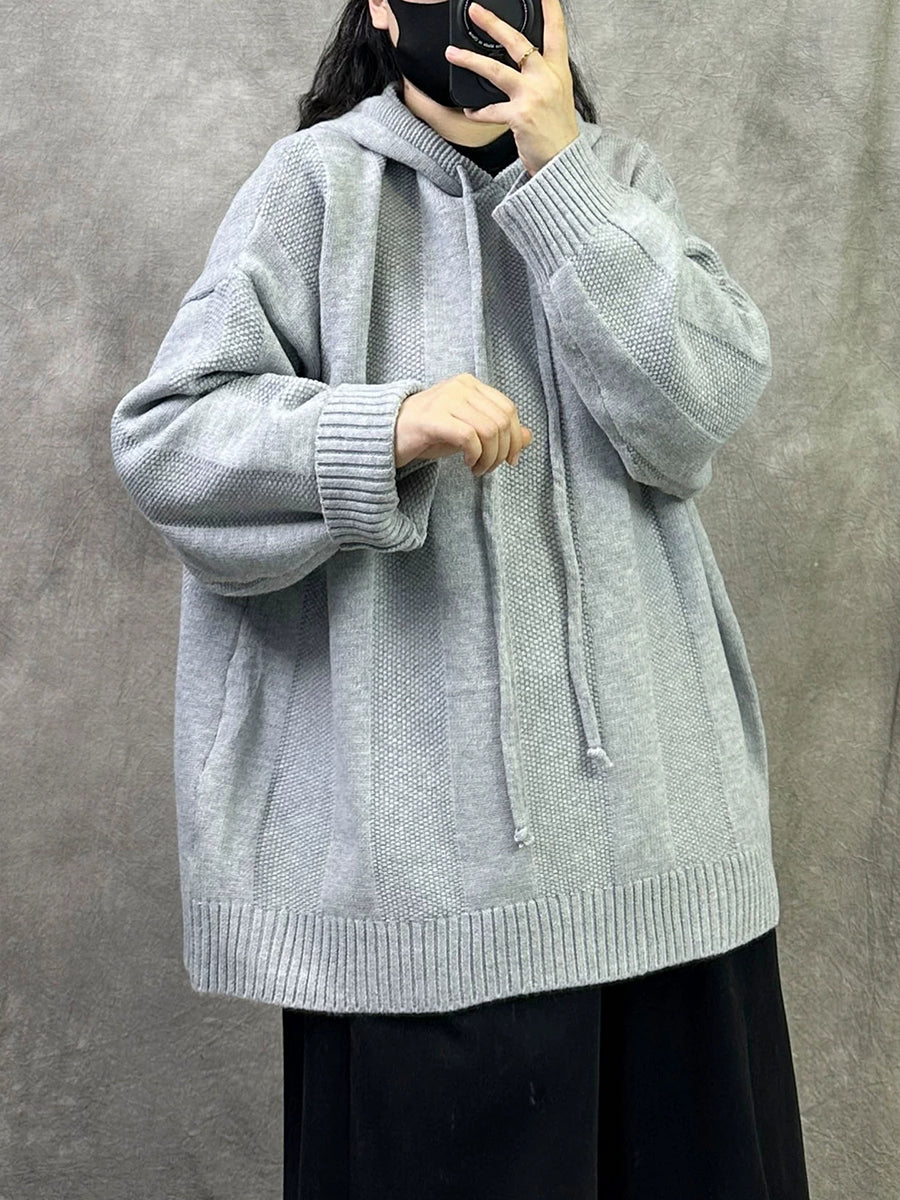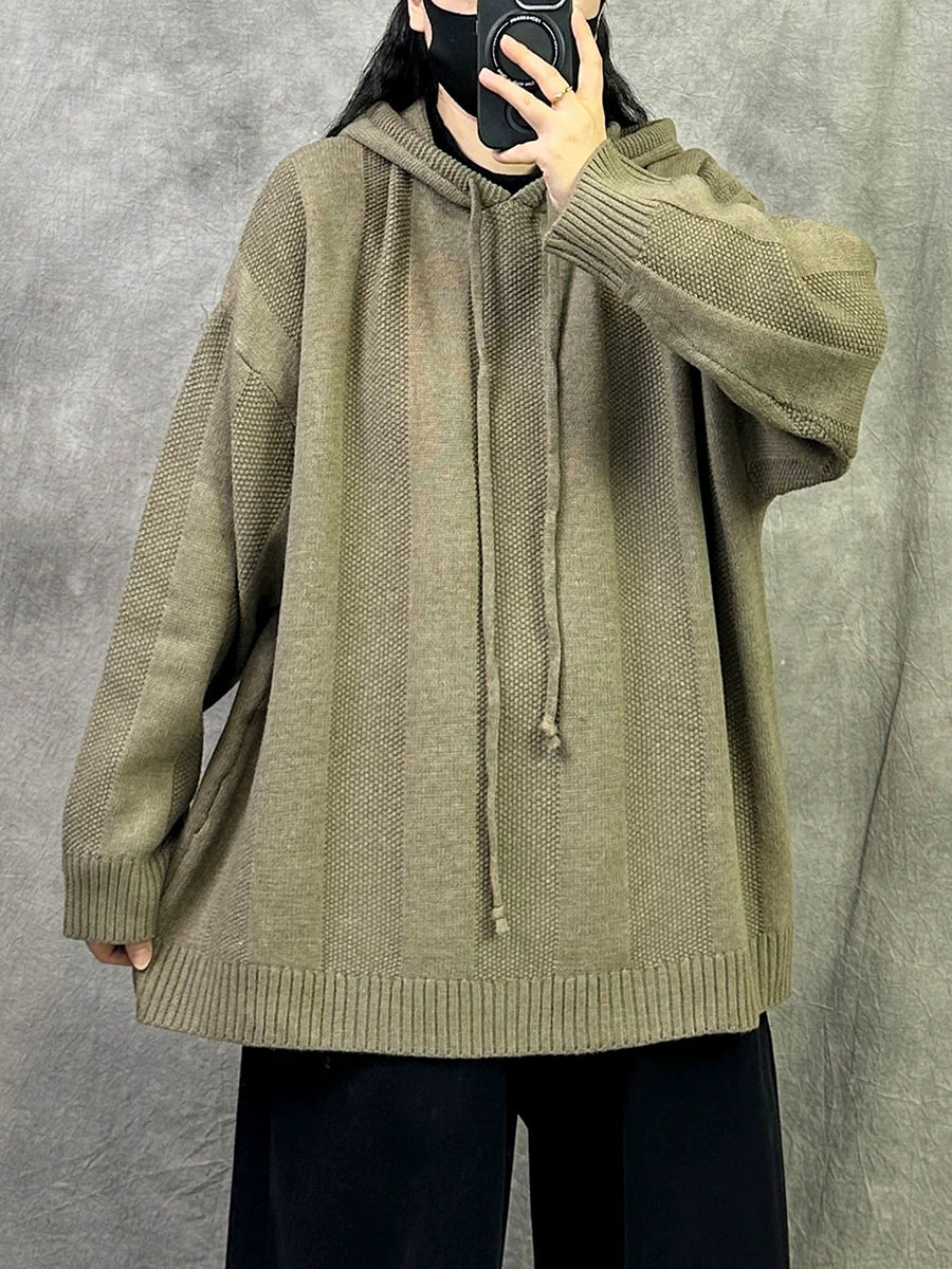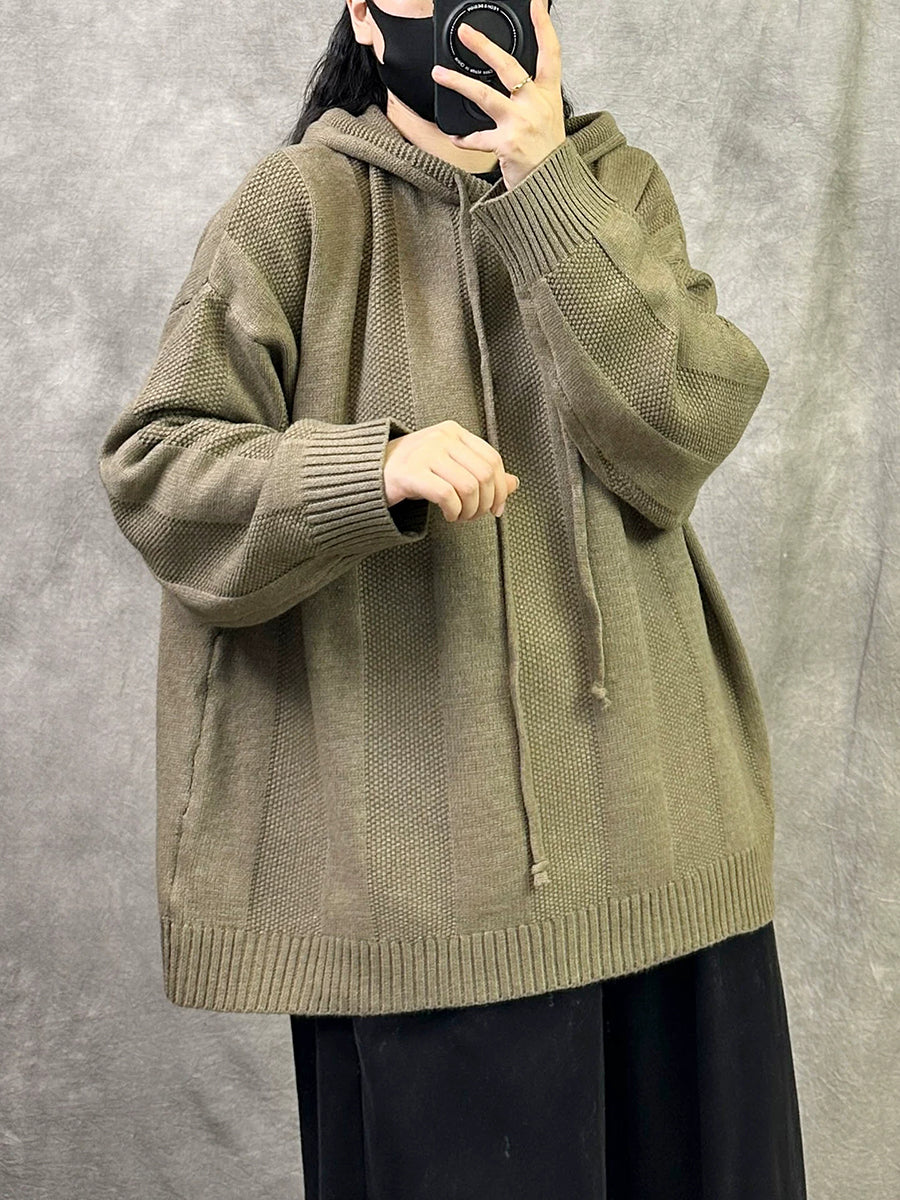 Suéter con capucha de color puro y artístico de otoño para mujer