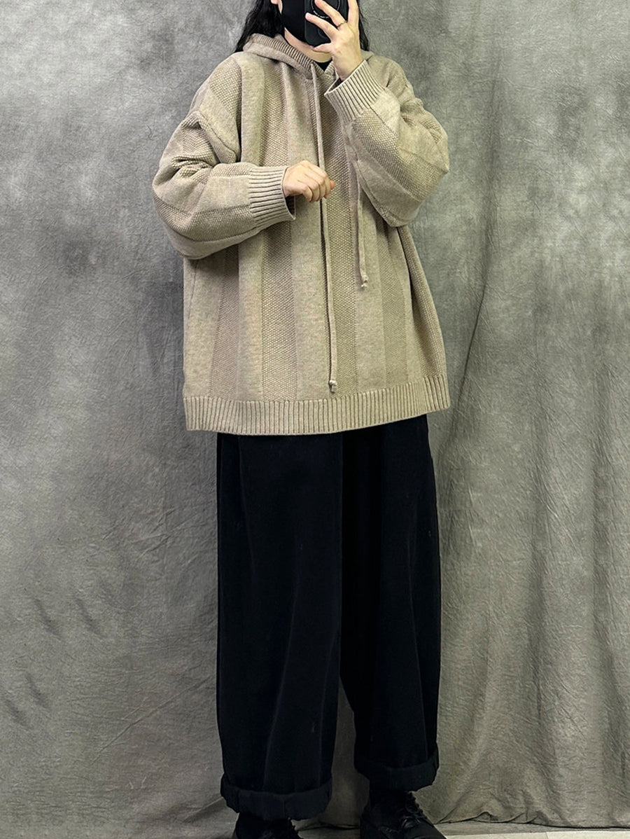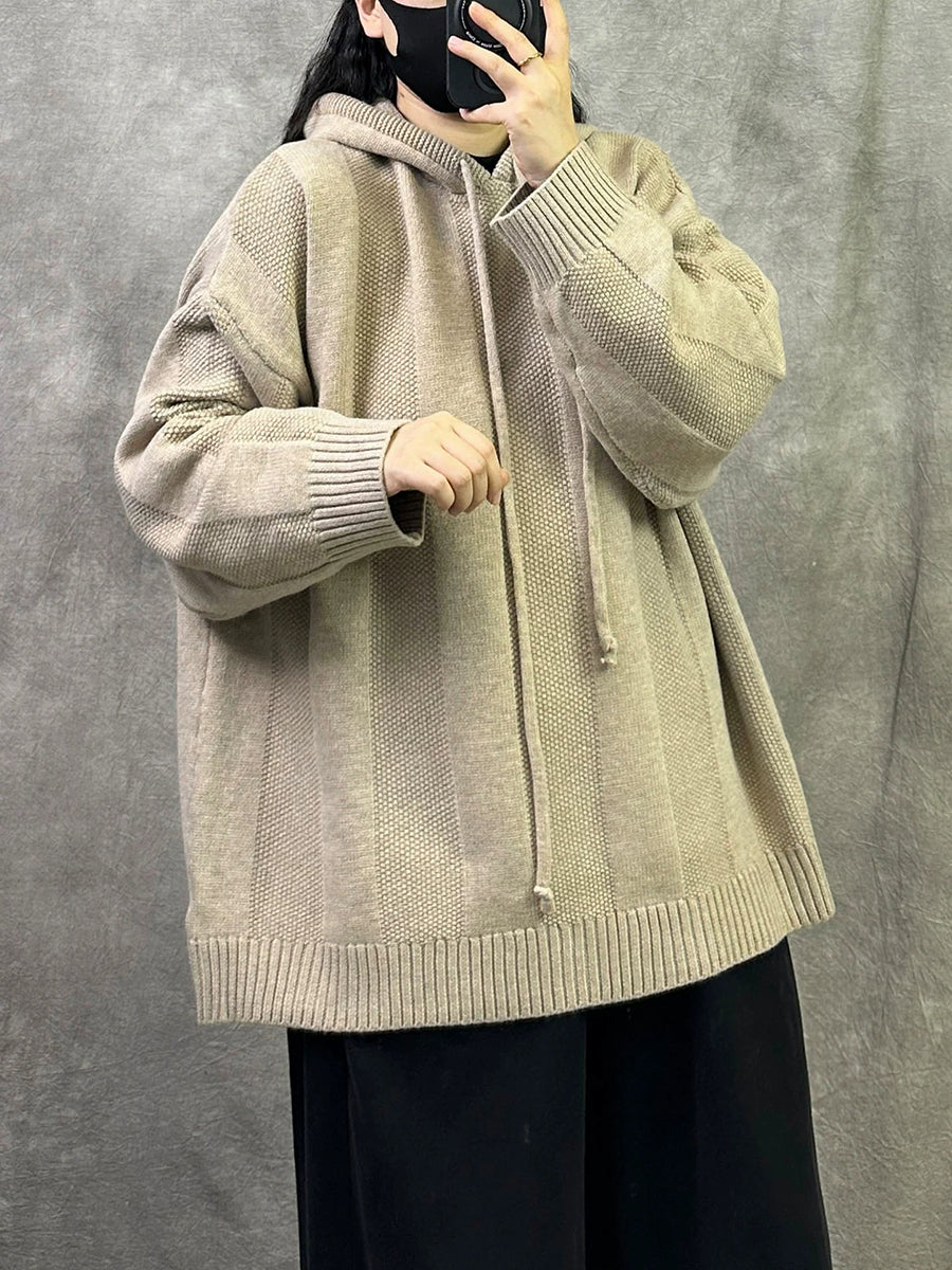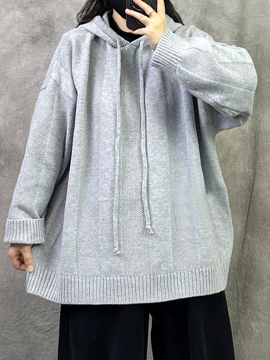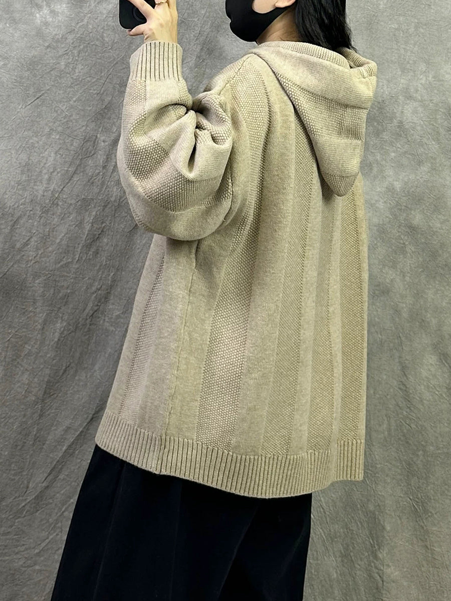 Suéter con capucha de color puro y artístico de otoño para mujer