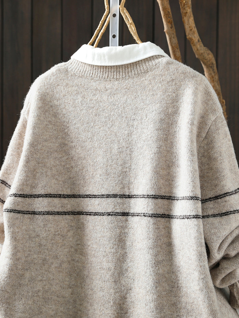 Suéter de punto con cuello redondo y rayas artísticas de otoño para mujer
