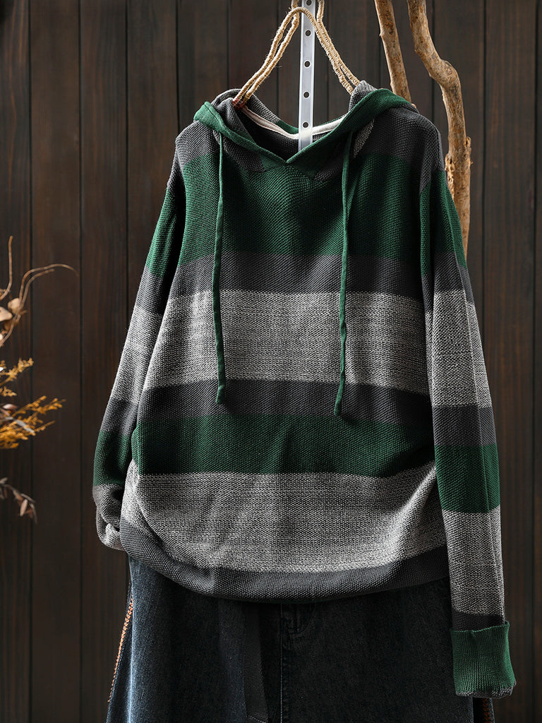 Sudadera con capucha de punto a rayas con bloques de color informal de otoño para mujer
