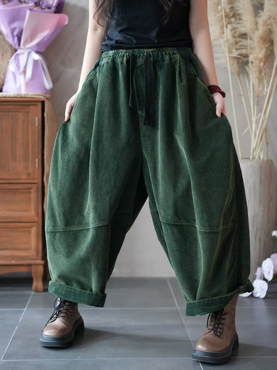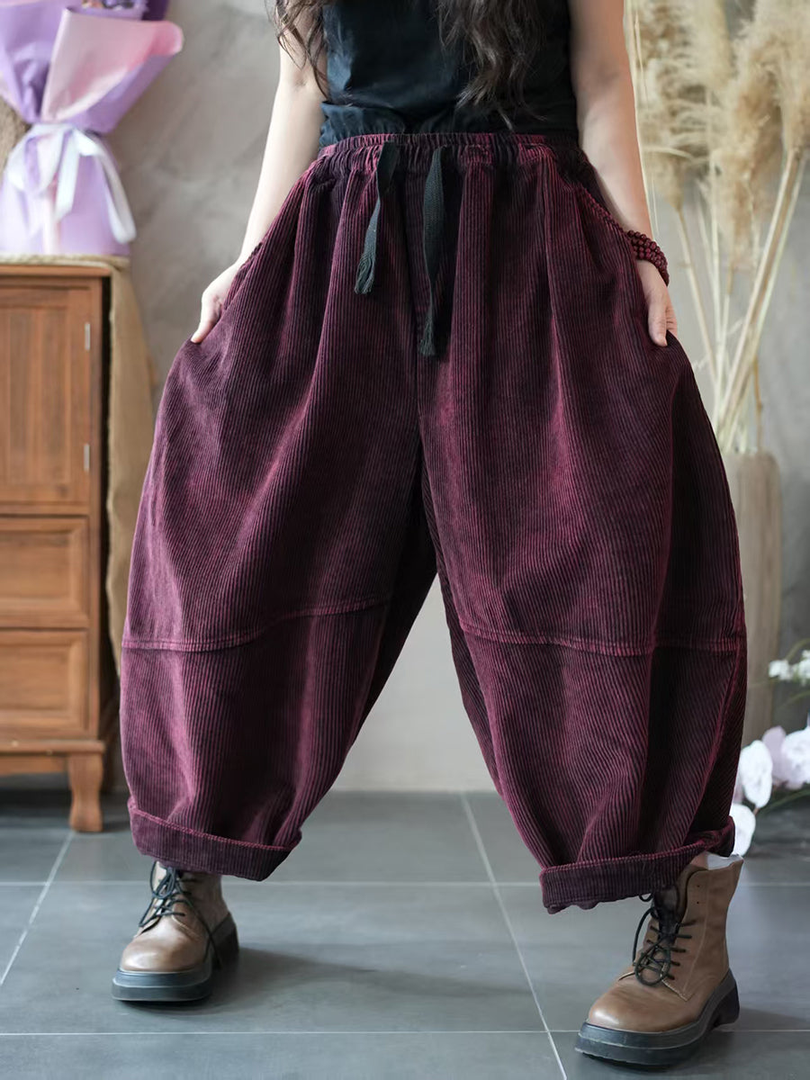 Pantalones harén de pana con empalmes de colores puros de otoño para mujer