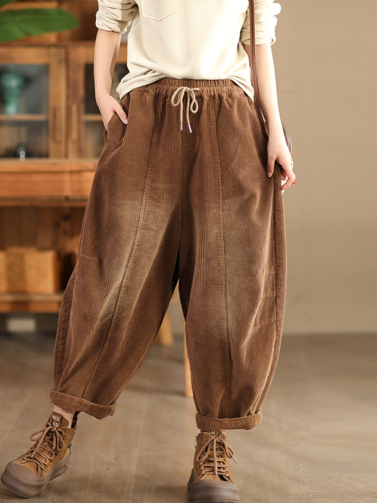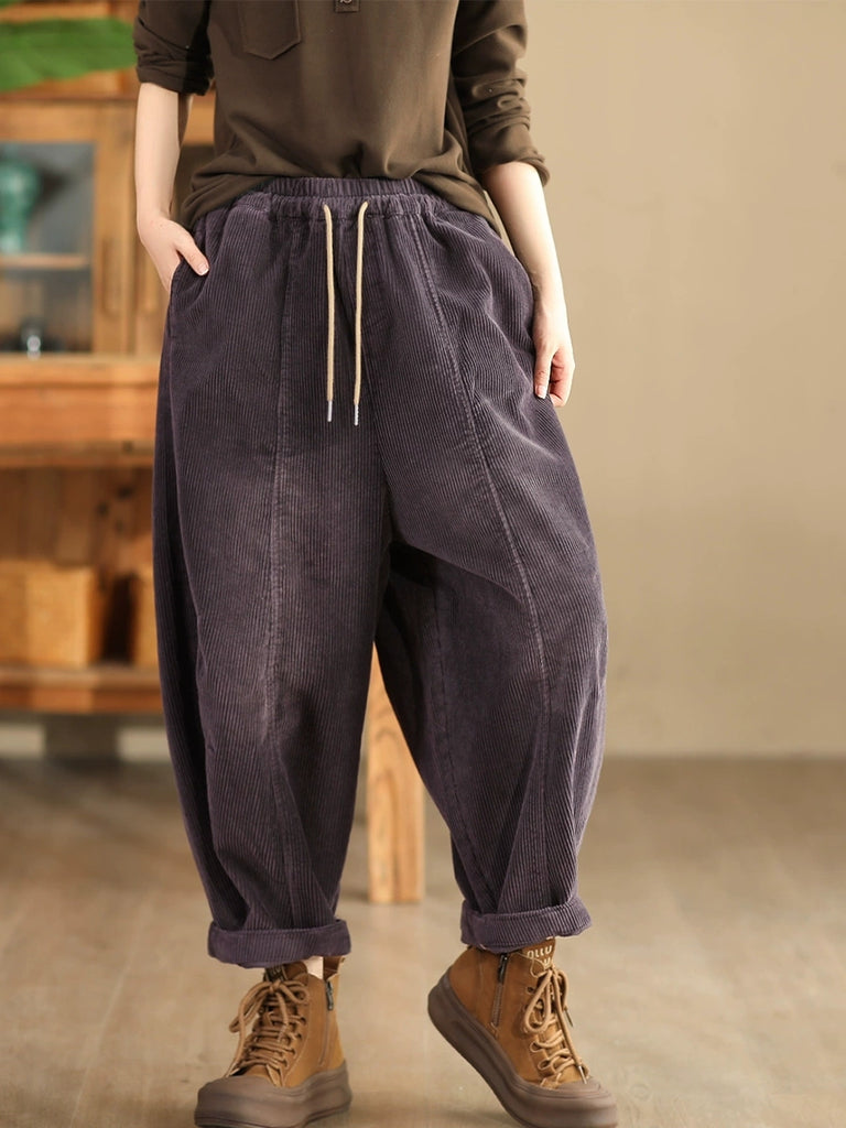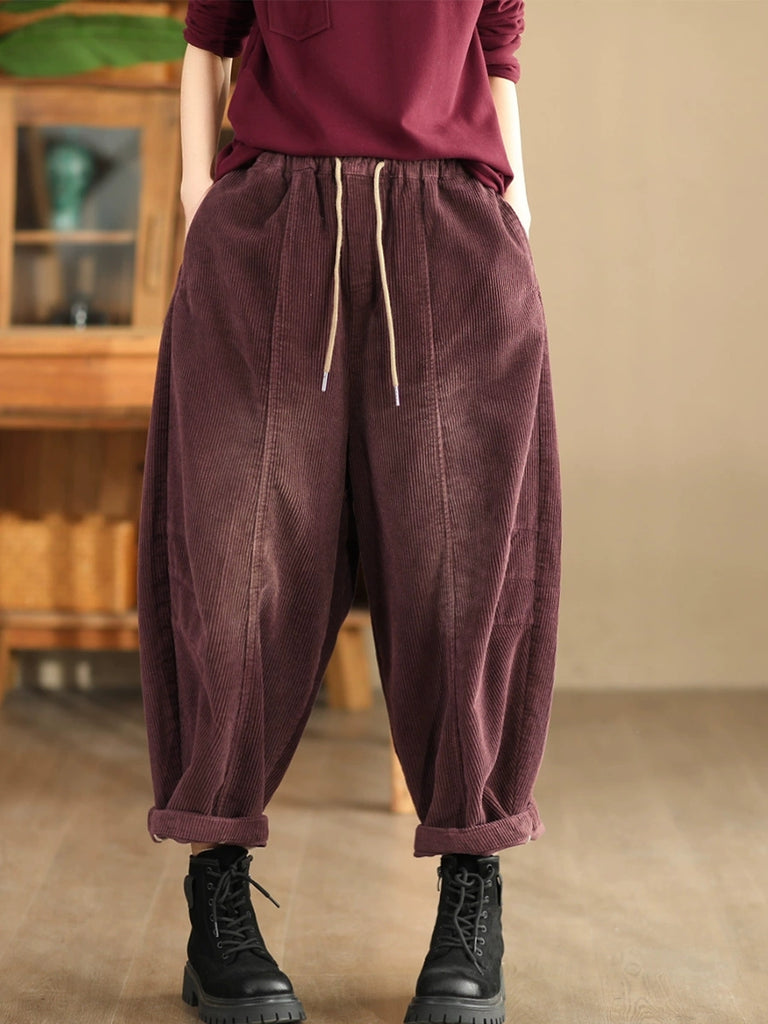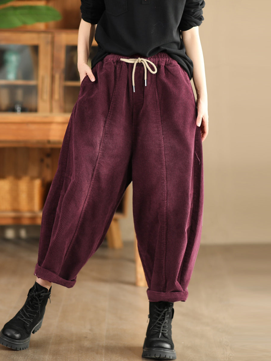 Pantalones harén de pana de color puro retro de otoño para mujer