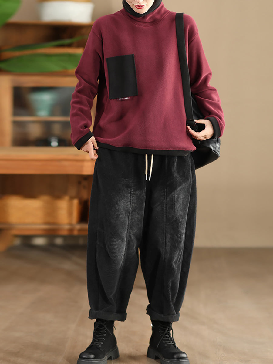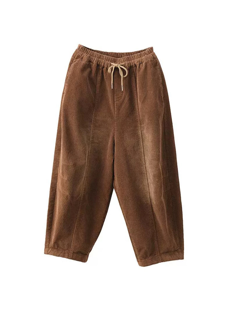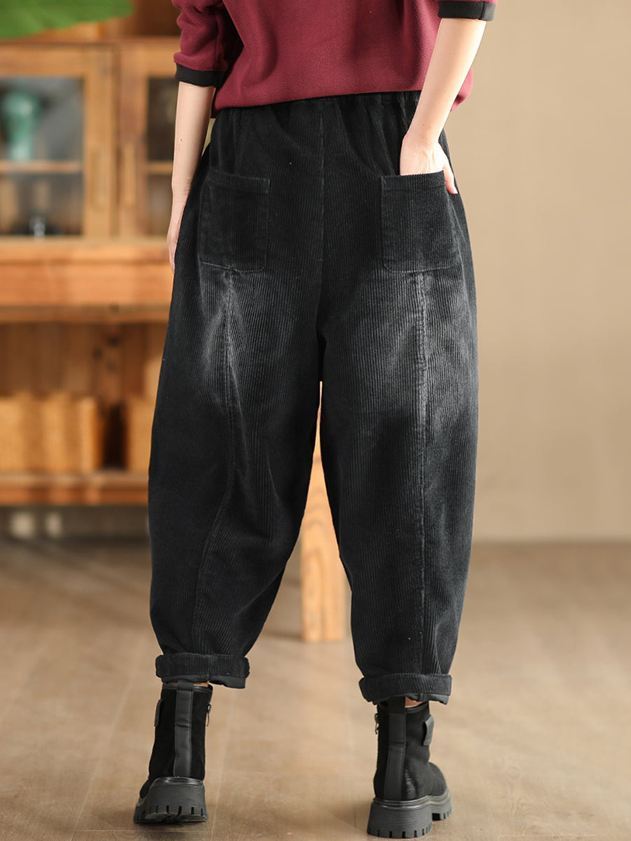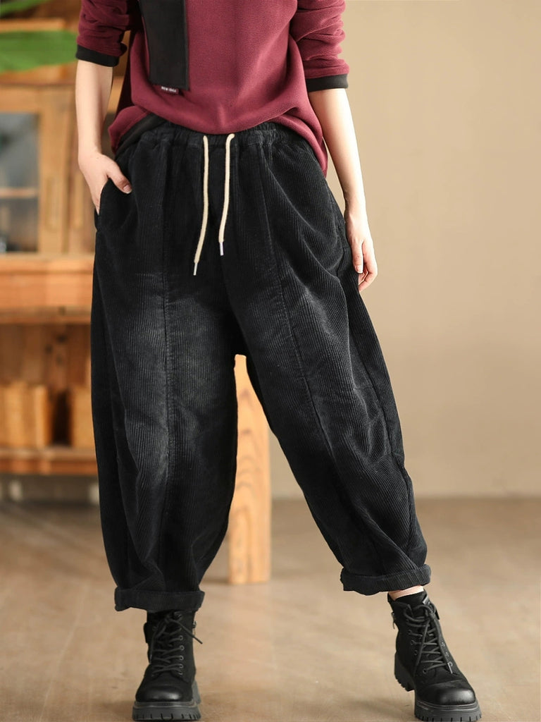 Pantalones harén de pana de color puro retro de otoño para mujer