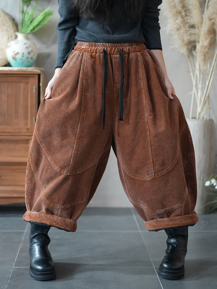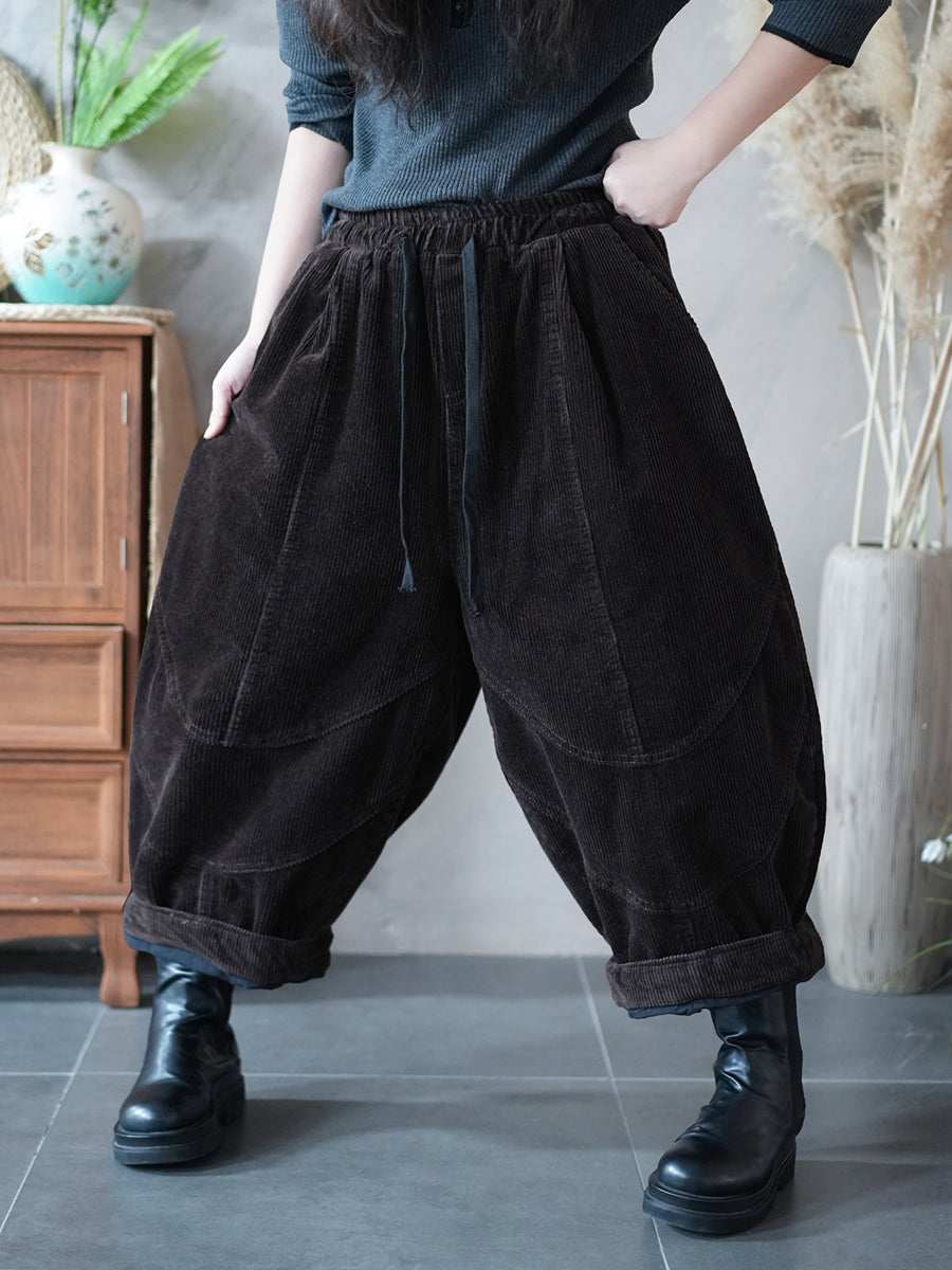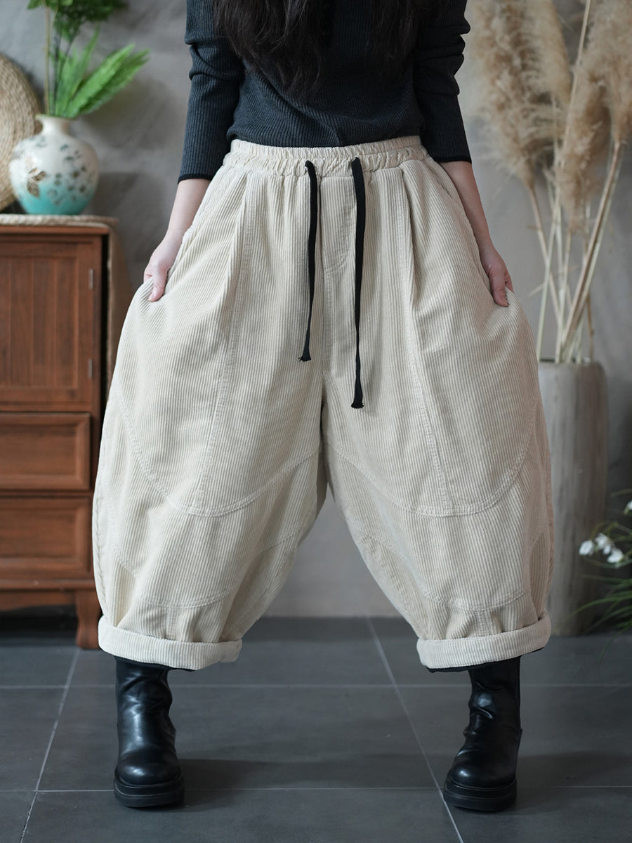 Pantalones harén de pana de color puro retro de otoño para mujer