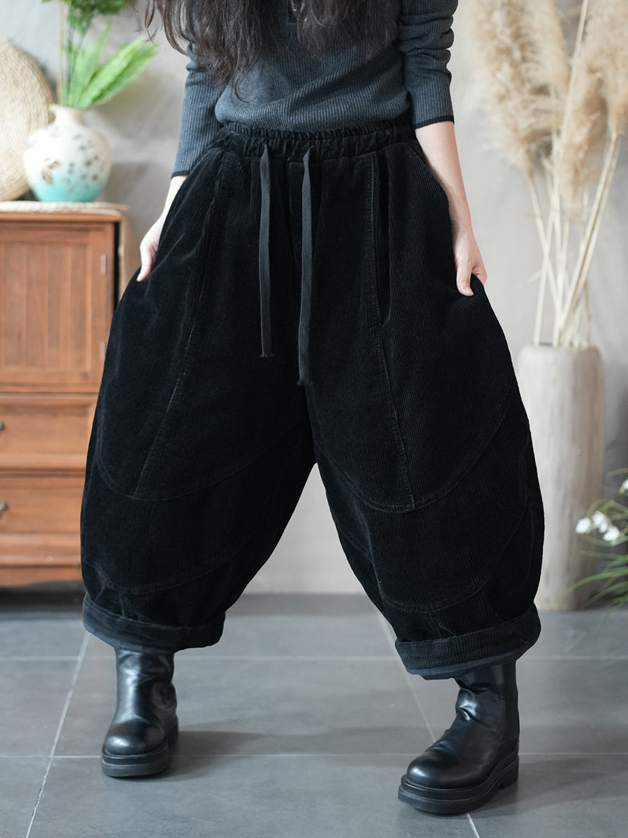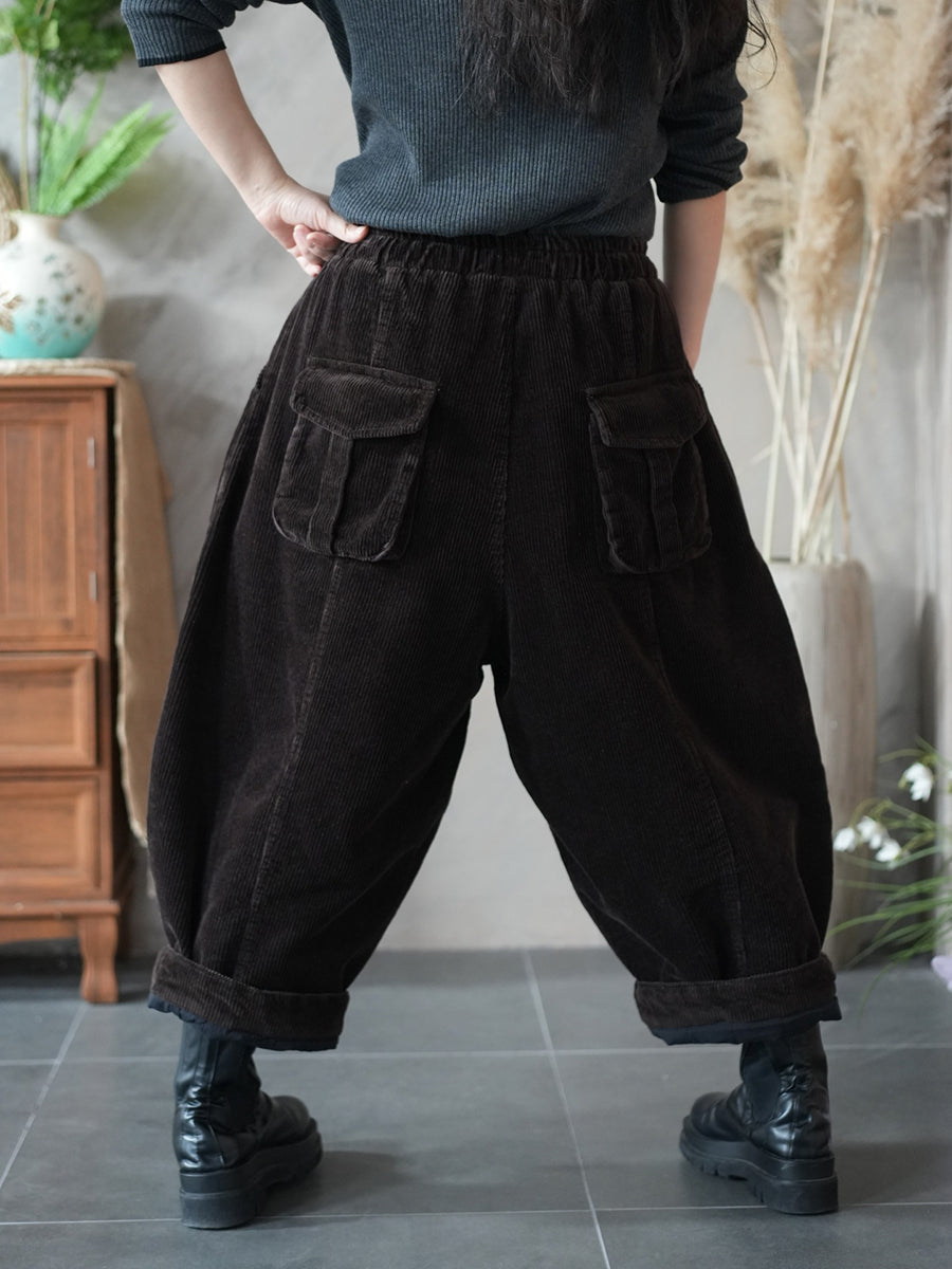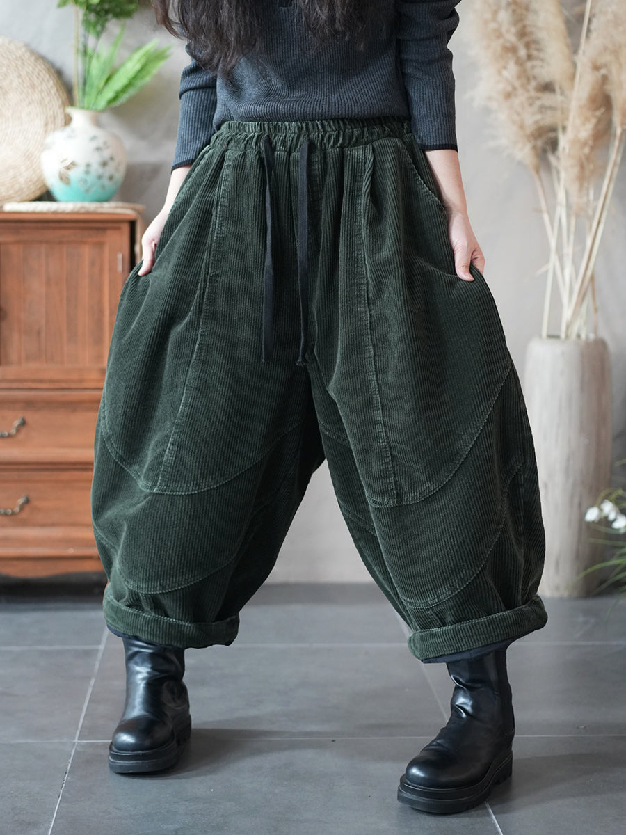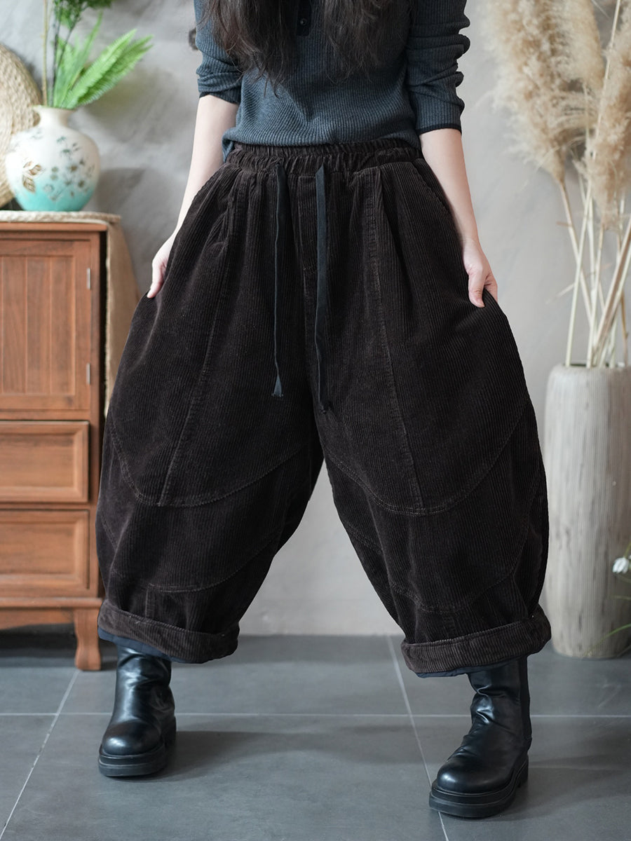 Pantalones harén de pana de color puro retro de otoño para mujer