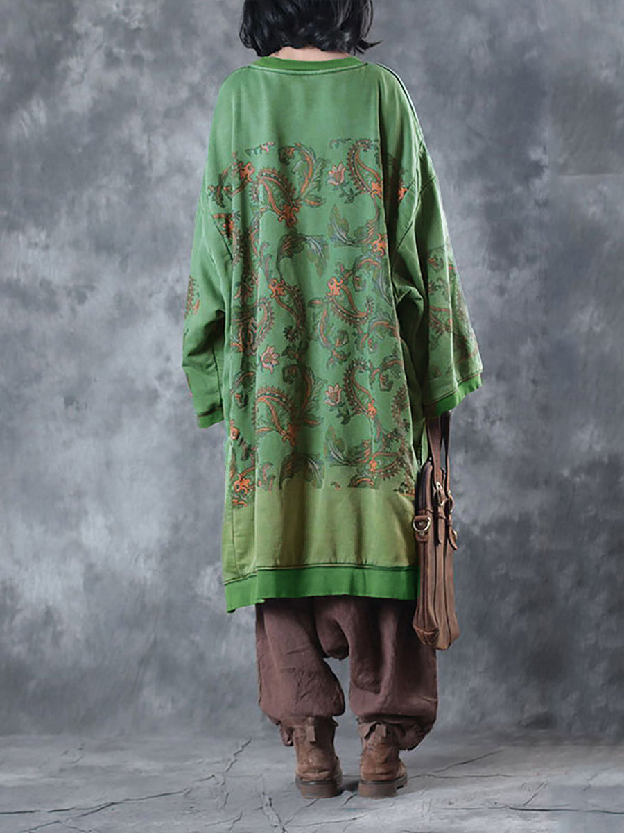 Vestido de lino con botones y flores de otoño estilo vintage para mujer