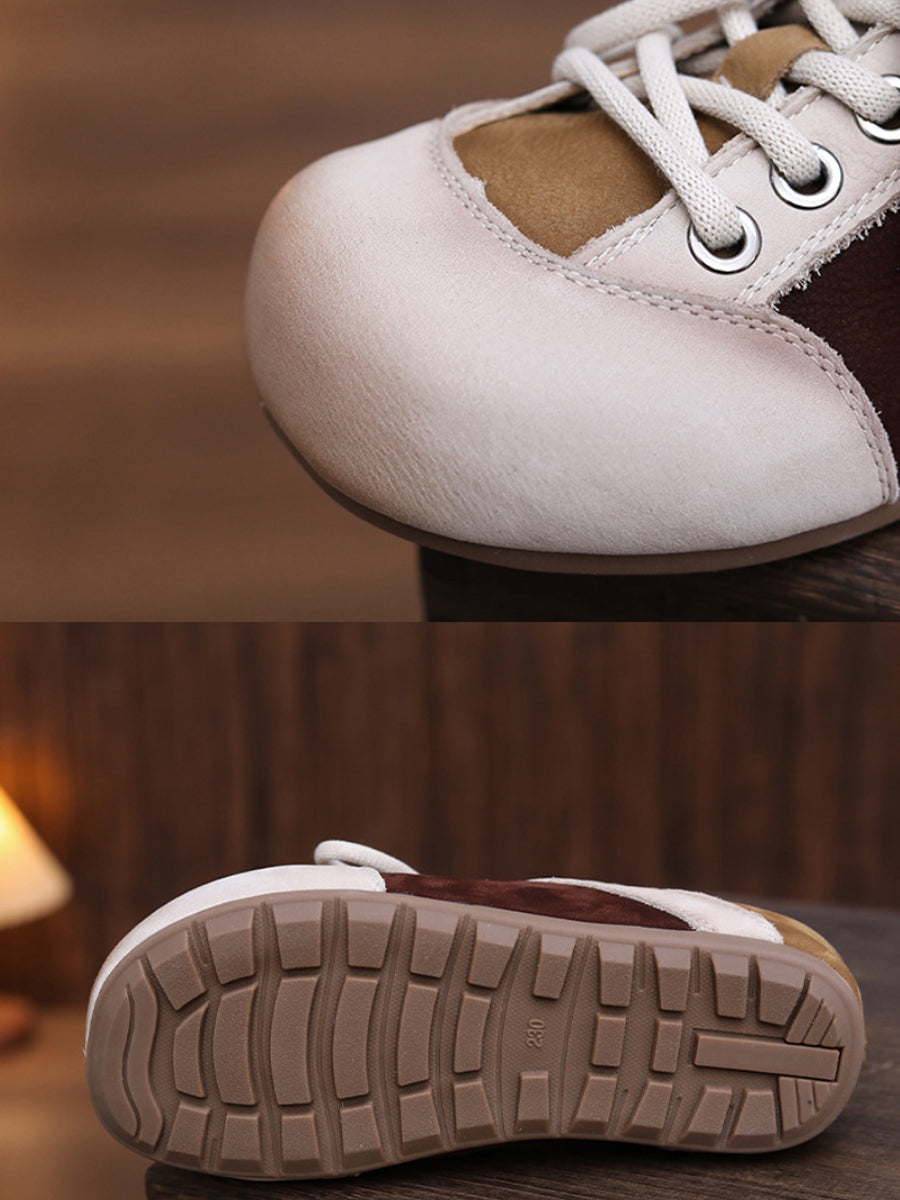 Zapatos planos casuales de piel auténtica con bloques de color para mujer