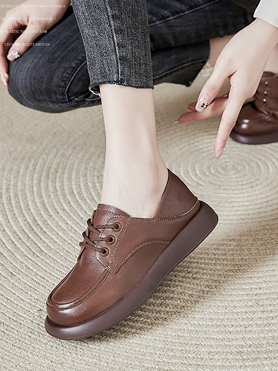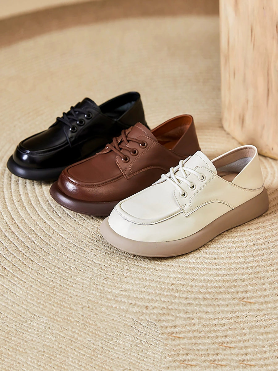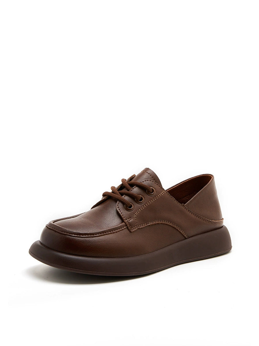 Zapatos mocasines de tacón bajo de piel auténtica informales para mujer
