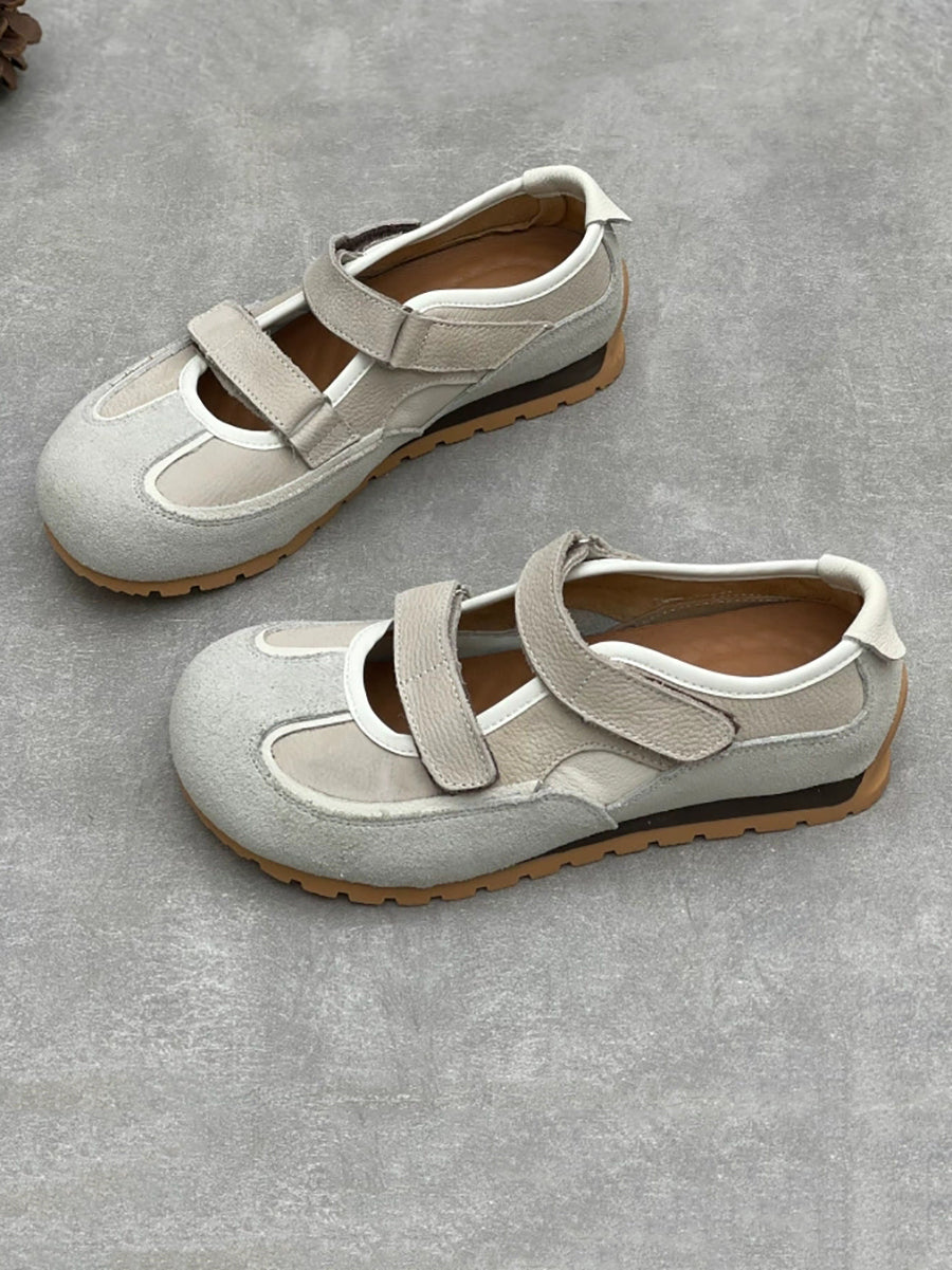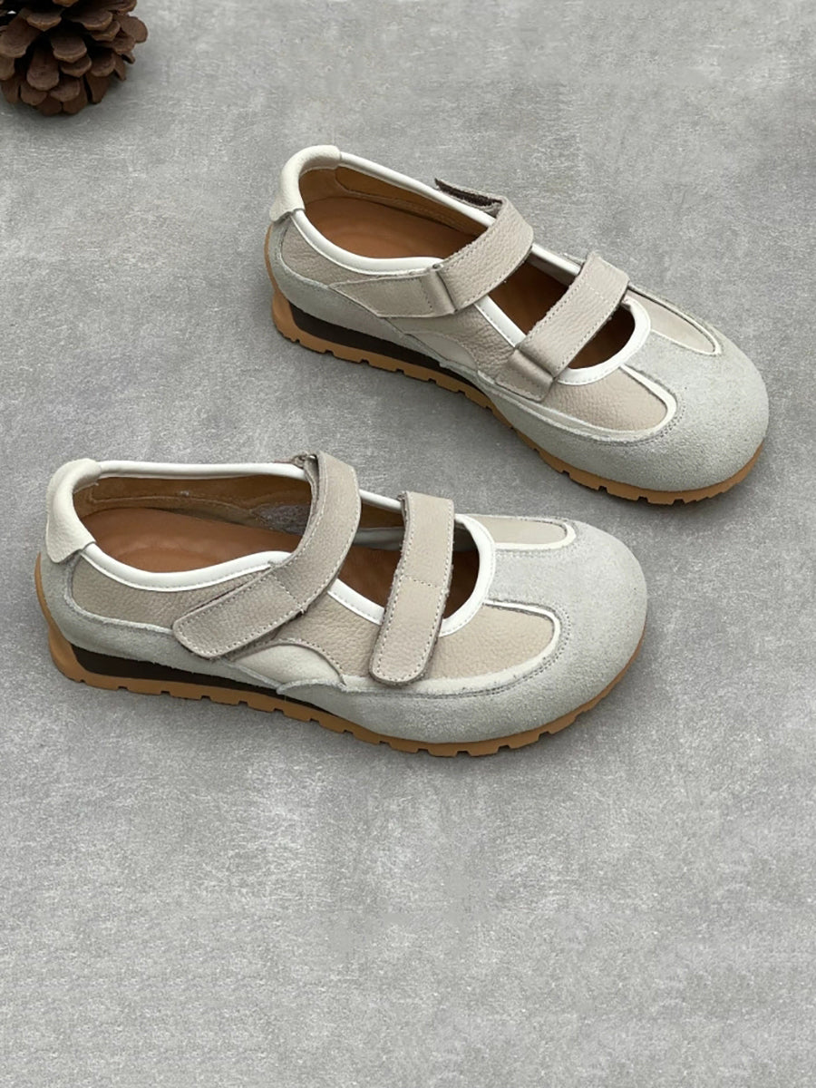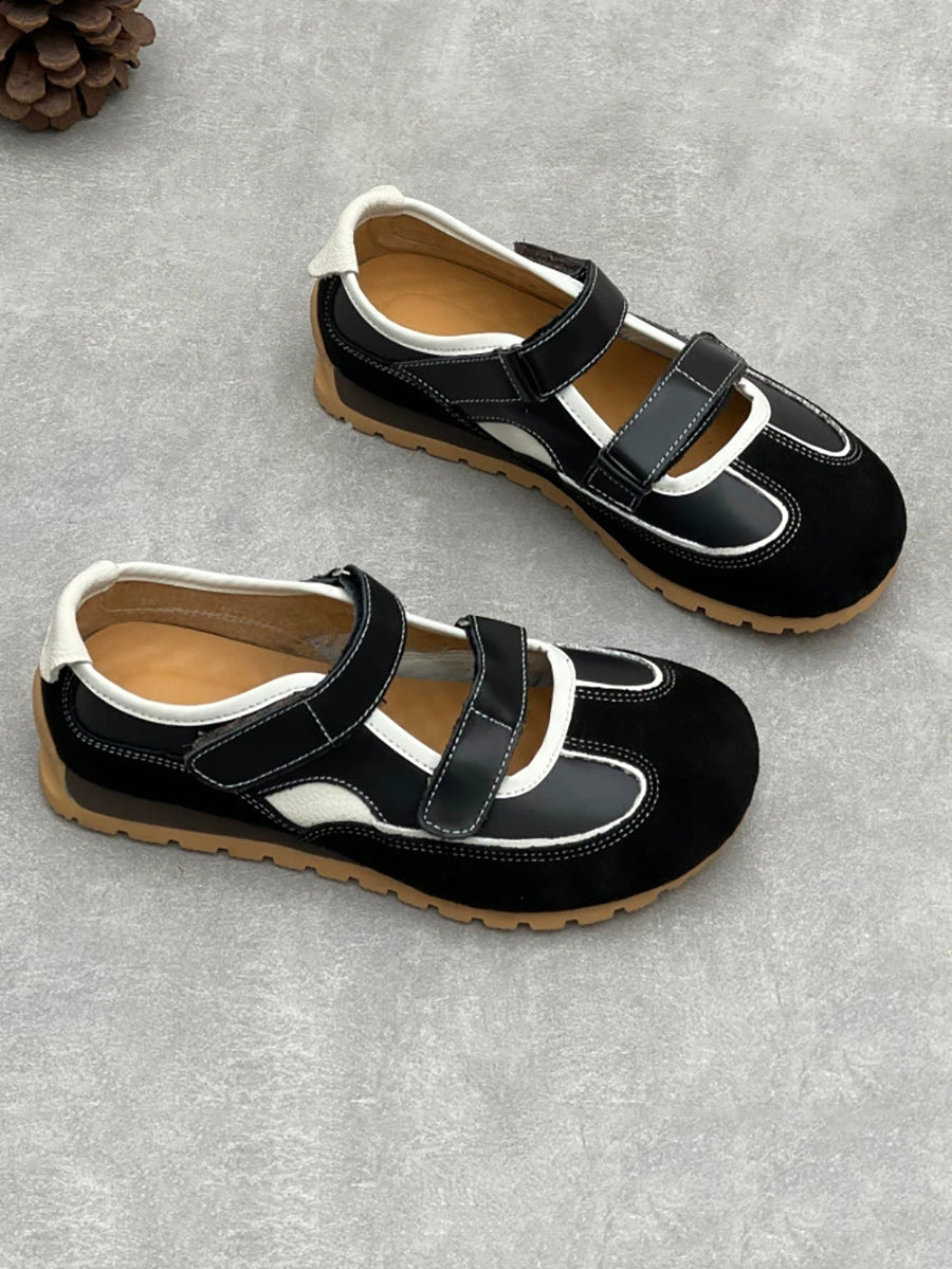 Zapatos casuales de tacón bajo con empalme de cuero genuino para mujer